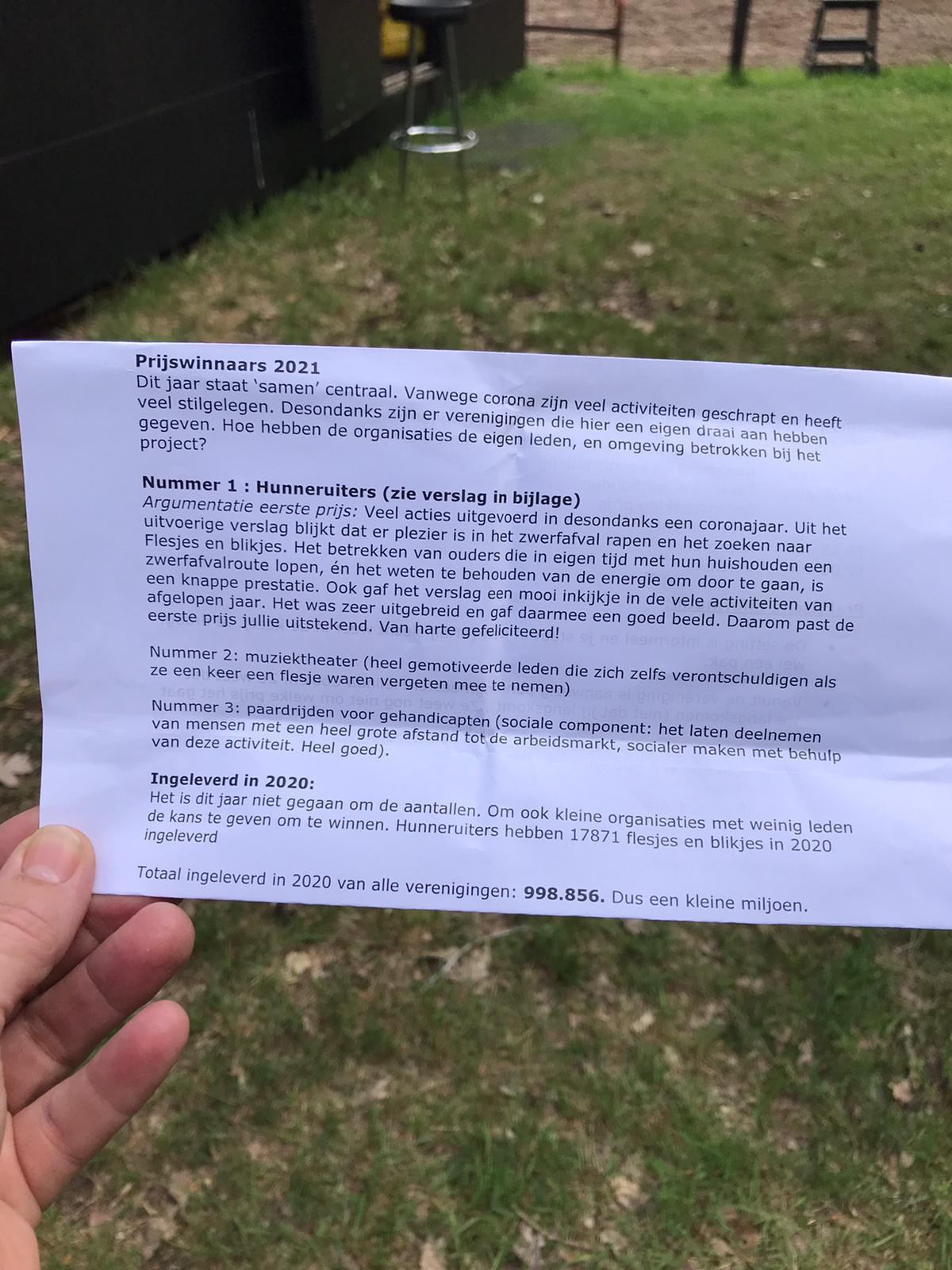 UDDEL – De Hunneruiters hebben de 1e prijs gewonnen met de actie; ‘Heel Apeldoorn rein’.