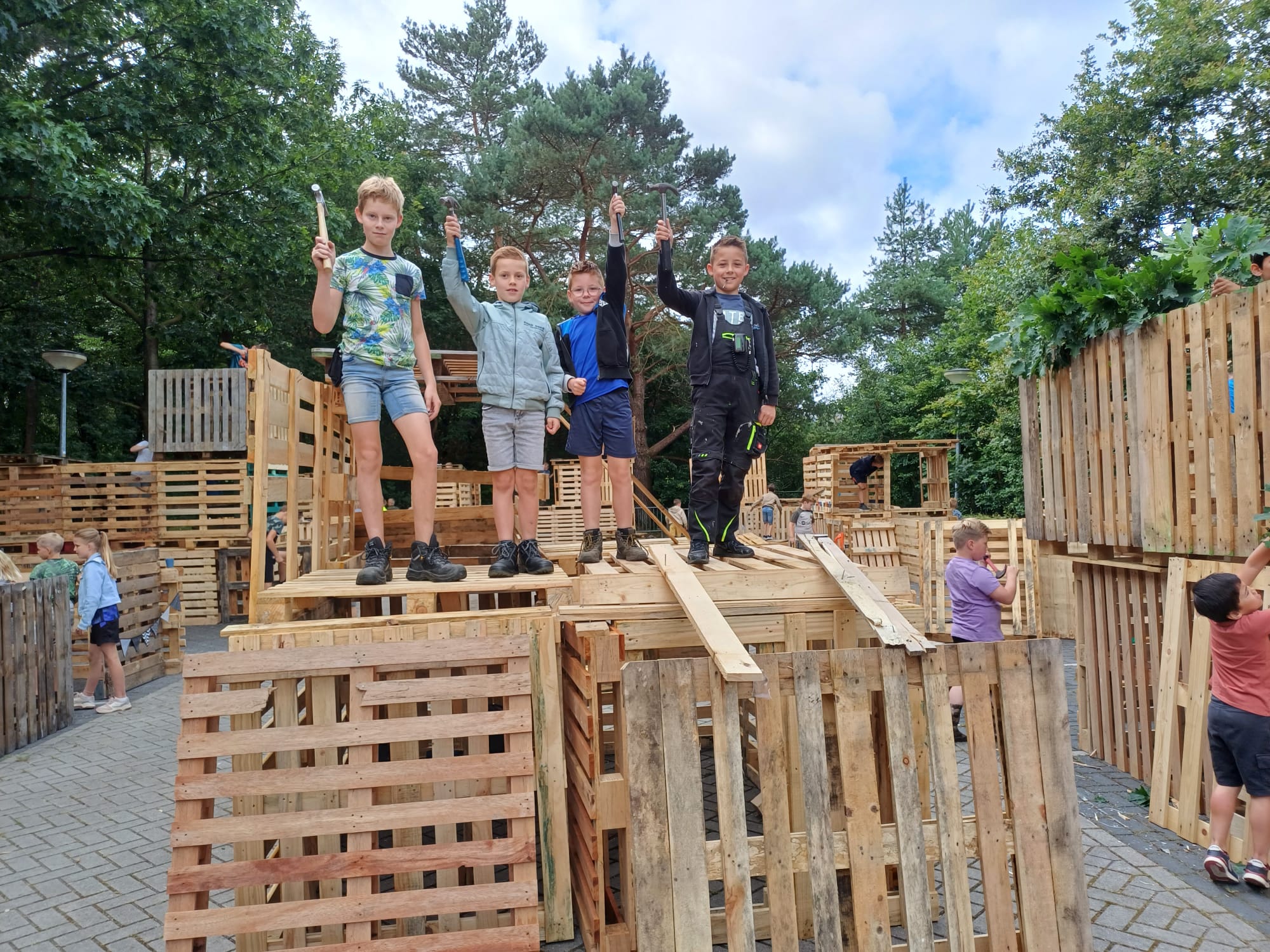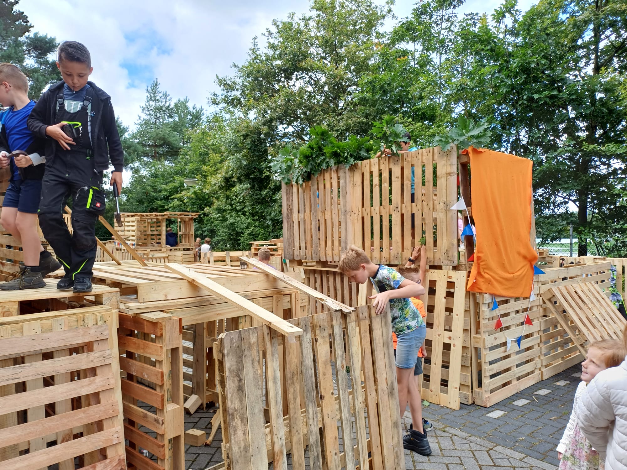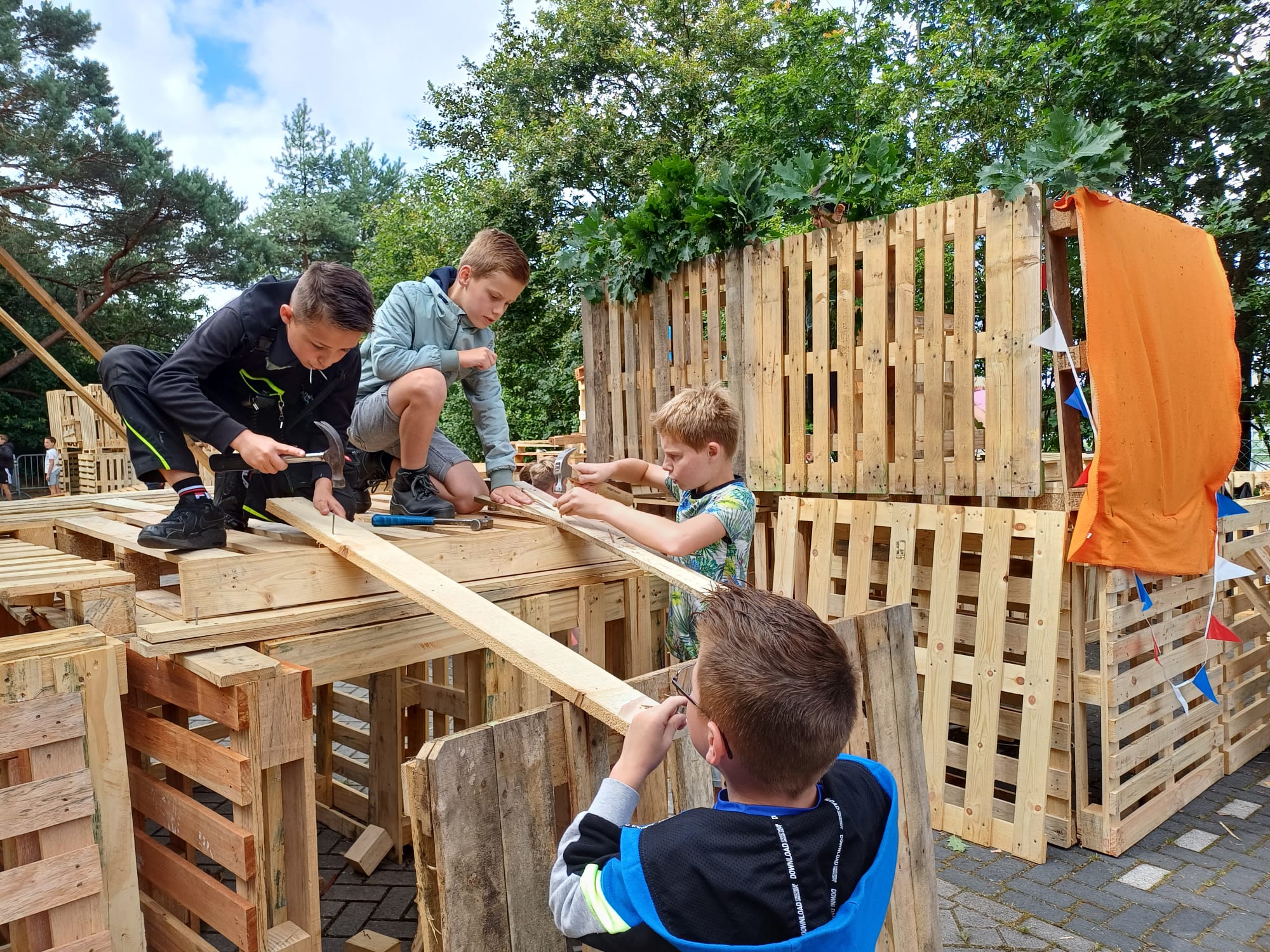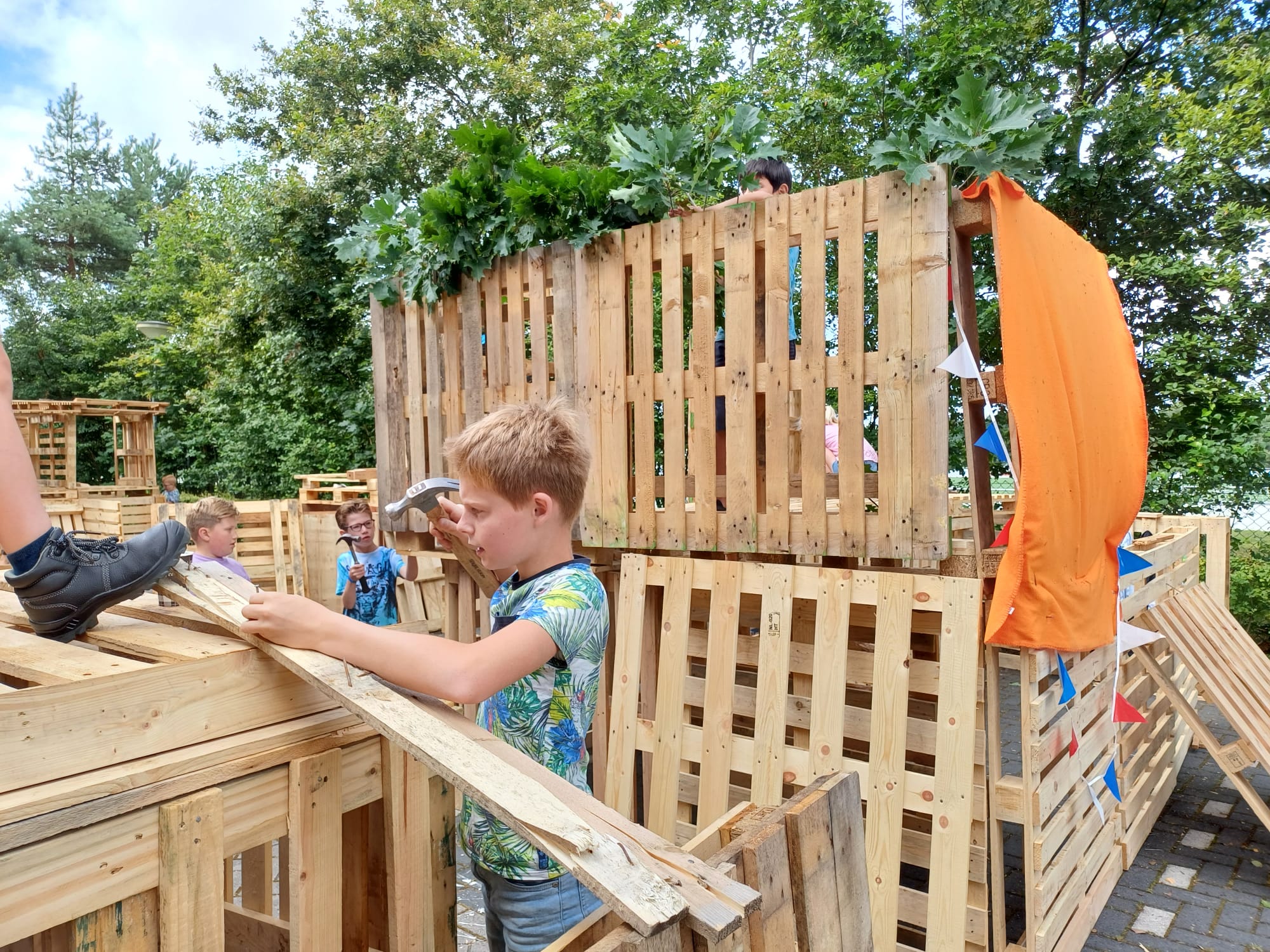 ELSPEET – Het hutten bouwen op maandag 15 en dinsdag 16 juli is ook dit jaar weer een groot succes geworden onder de kinderen. Dankzij een heleboel vrijwilligers hebben veel (ruim 135!) kinderen twee fantastische dagen achter de rug. Samenwerken, plezier maken en je creativiteit de vrije loop laten gaan door te timmeren, te bouwen en iets moois in elkaar te zetten. Er was een gezellige sfeer op het terrein en het prachtige weer was genieten.