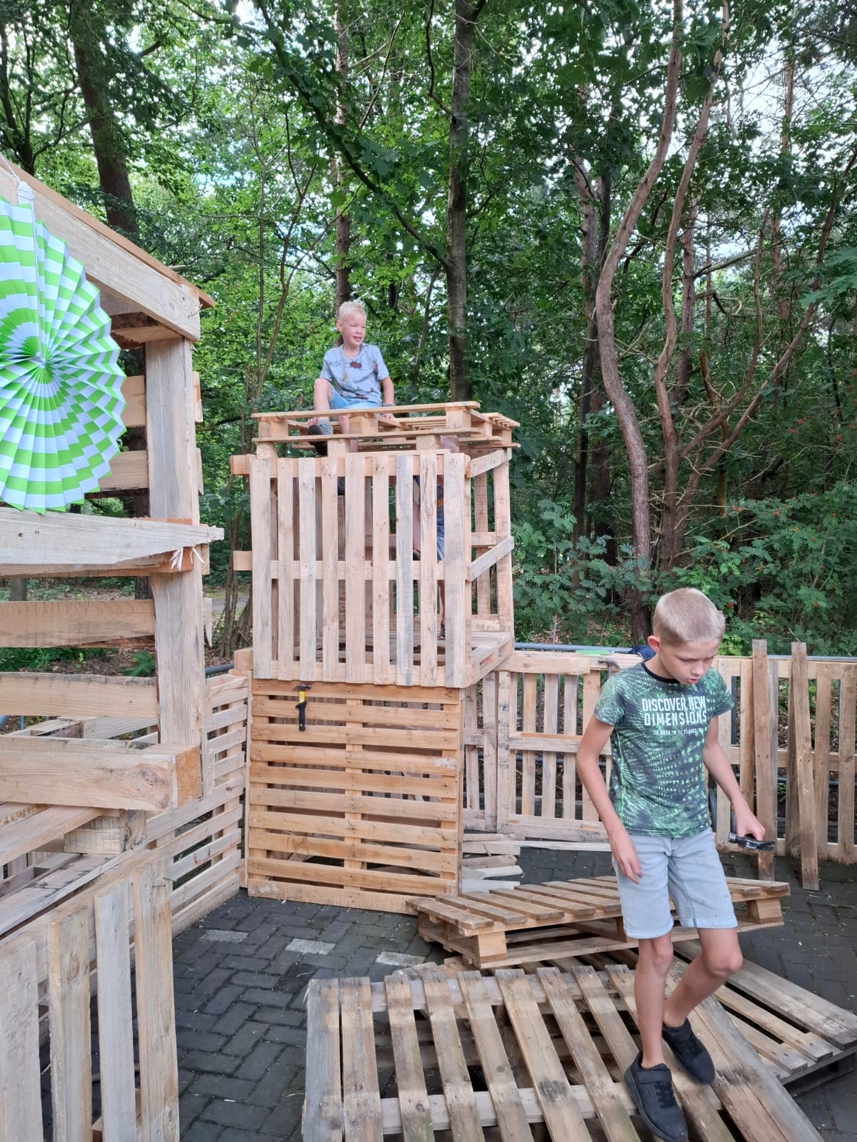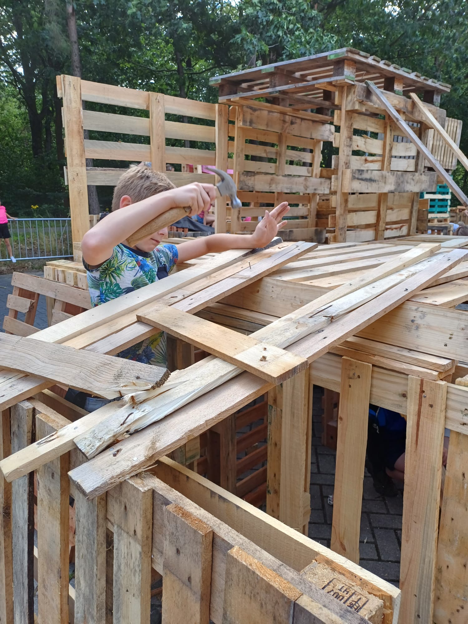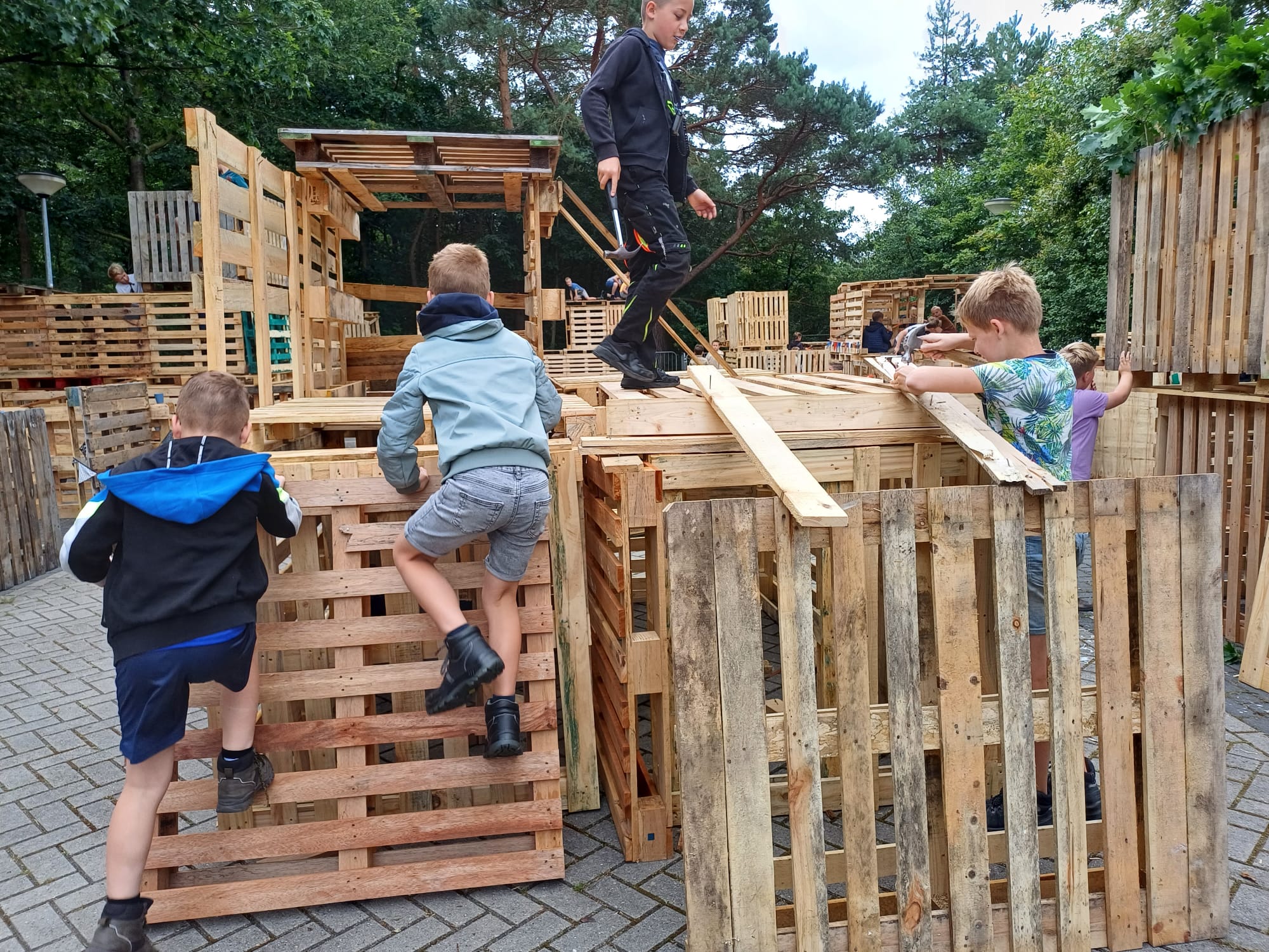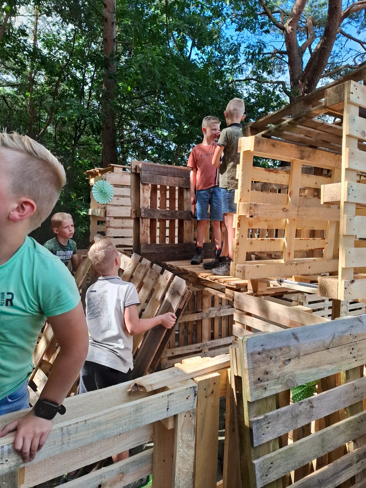 ELSPEET – Het hutten bouwen op maandag 15 en dinsdag 16 juli is ook dit jaar weer een groot succes geworden onder de kinderen. Dankzij een heleboel vrijwilligers hebben veel (ruim 135!) kinderen twee fantastische dagen achter de rug. Samenwerken, plezier maken en je creativiteit de vrije loop laten gaan door te timmeren, te bouwen en iets moois in elkaar te zetten. Er was een gezellige sfeer op het terrein en het prachtige weer was genieten.