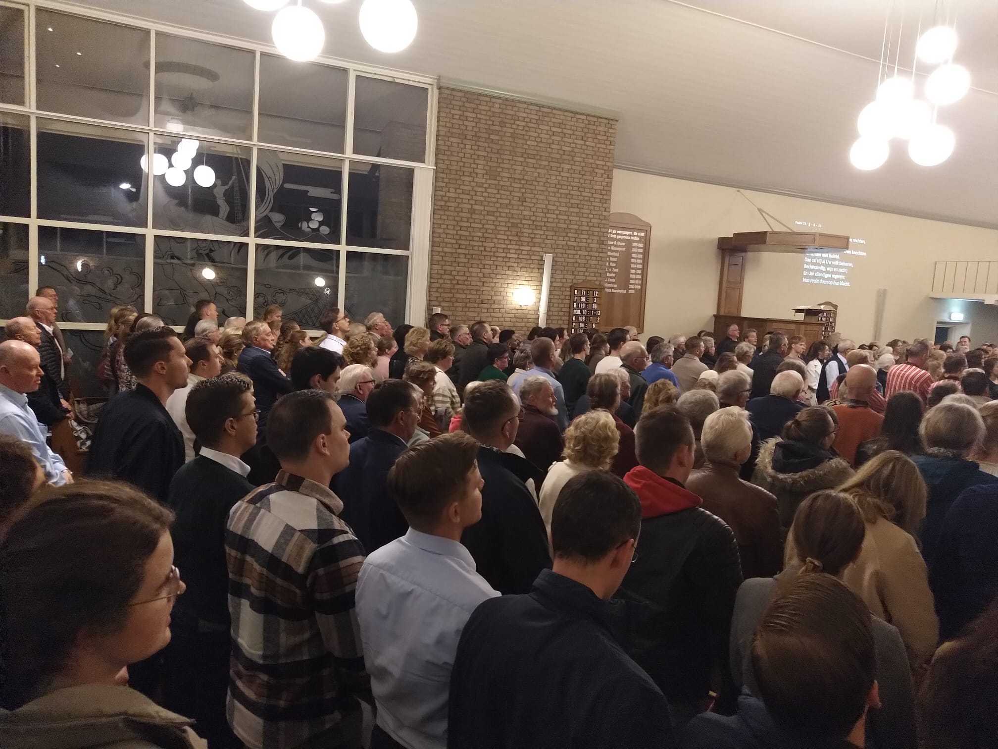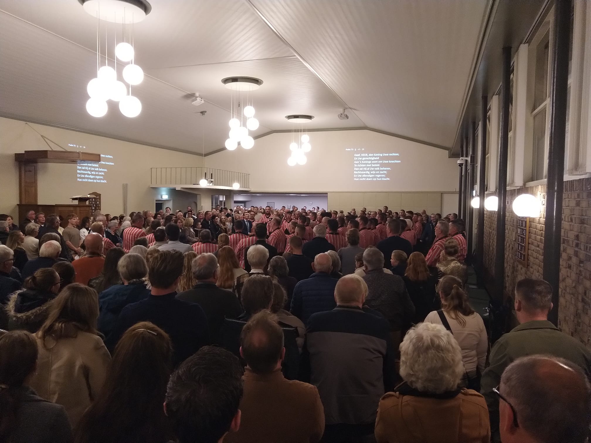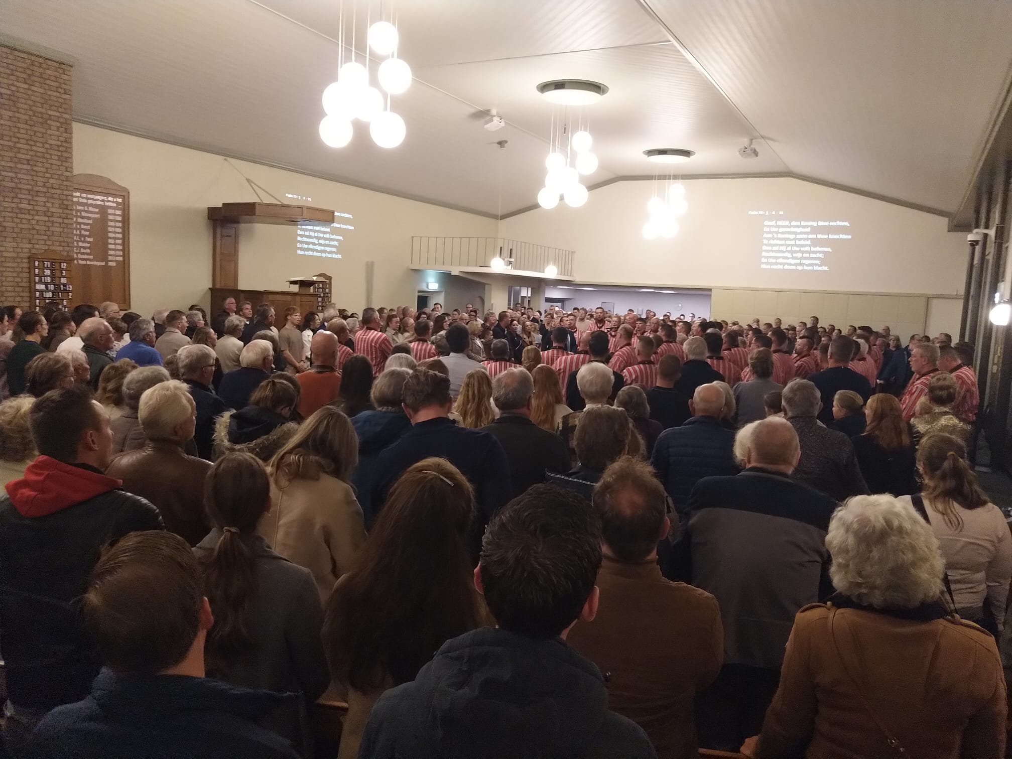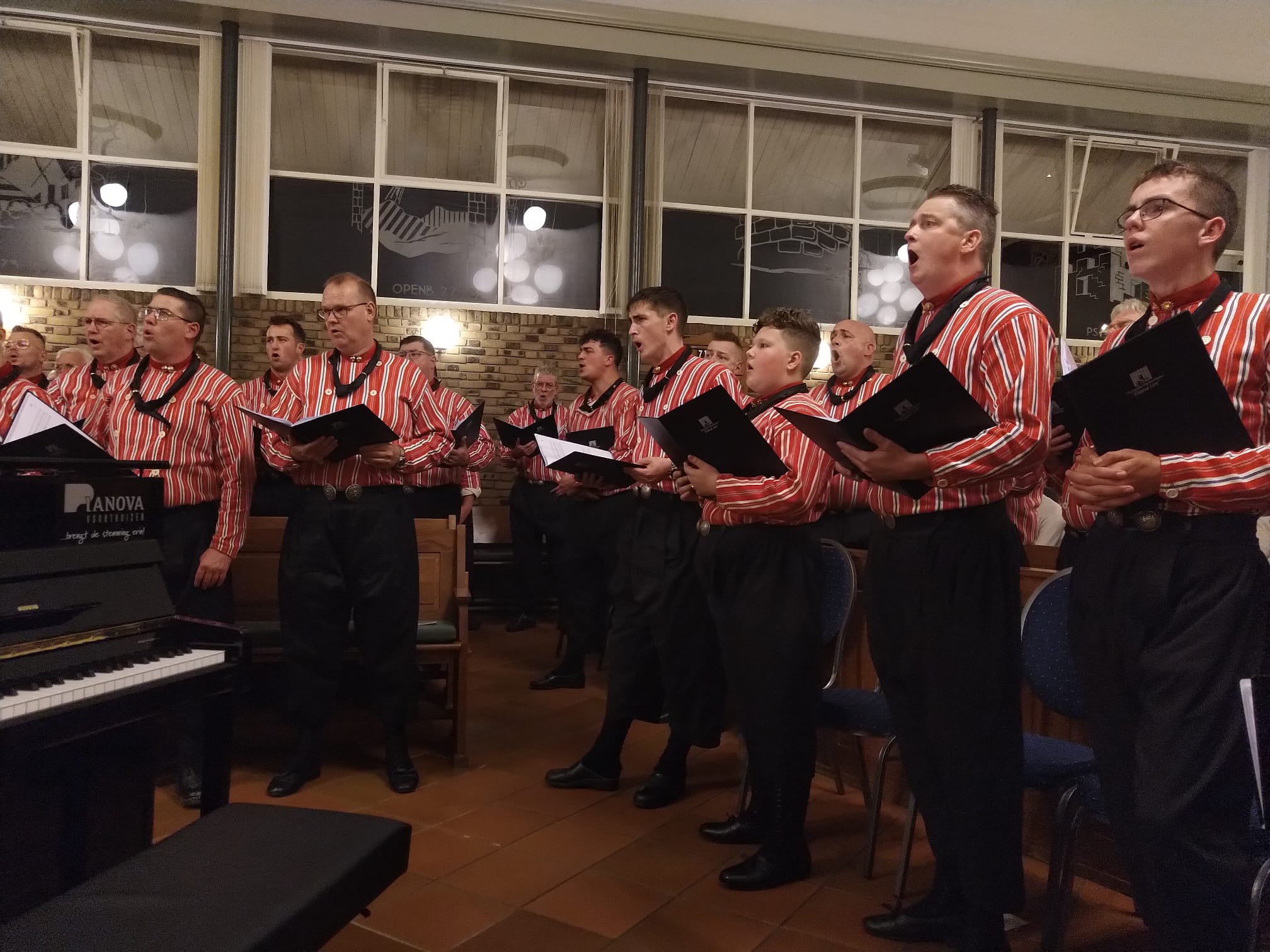 Mannenkoor “Eiland Urk” o.l.v. Gerrit Schinkel met begeleiding op het orgel en piano Hugo van der Meij. Om 18.45 uur stond er al een hele rij mensen voor de deur. Om 19.30 uur zat de kerk dan ook afgeladen vol. Meer dan 600 mensen waren die avond afgekomen om “Eiland Urk” te horen en te zien zingen.