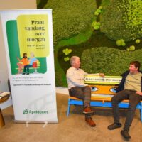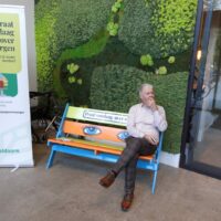 Op één van de foto’s gaat ondergetekende op het bankje “Praat vandaag over morgen” in gesprek met de 15-jarige Marc Bronkhorst (Marc van André van Aart van Gaart van Marten).