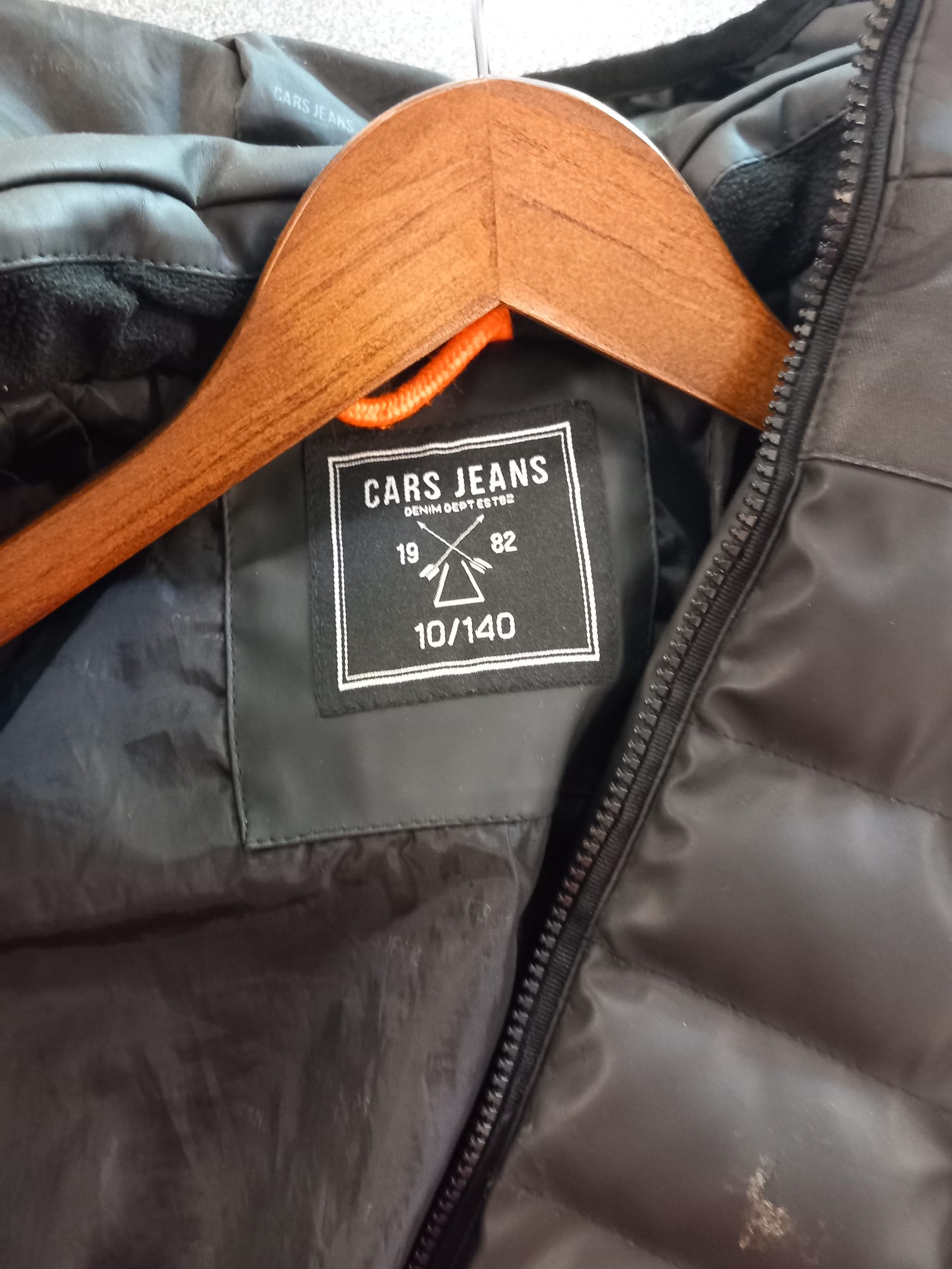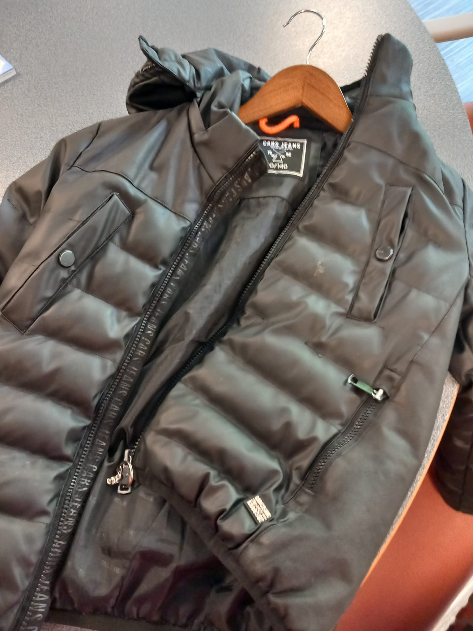 Beide jassen zijn zwart, een damesjas maat 42 van Marcona en een kinderjas maat 140 van Cars Jeans.