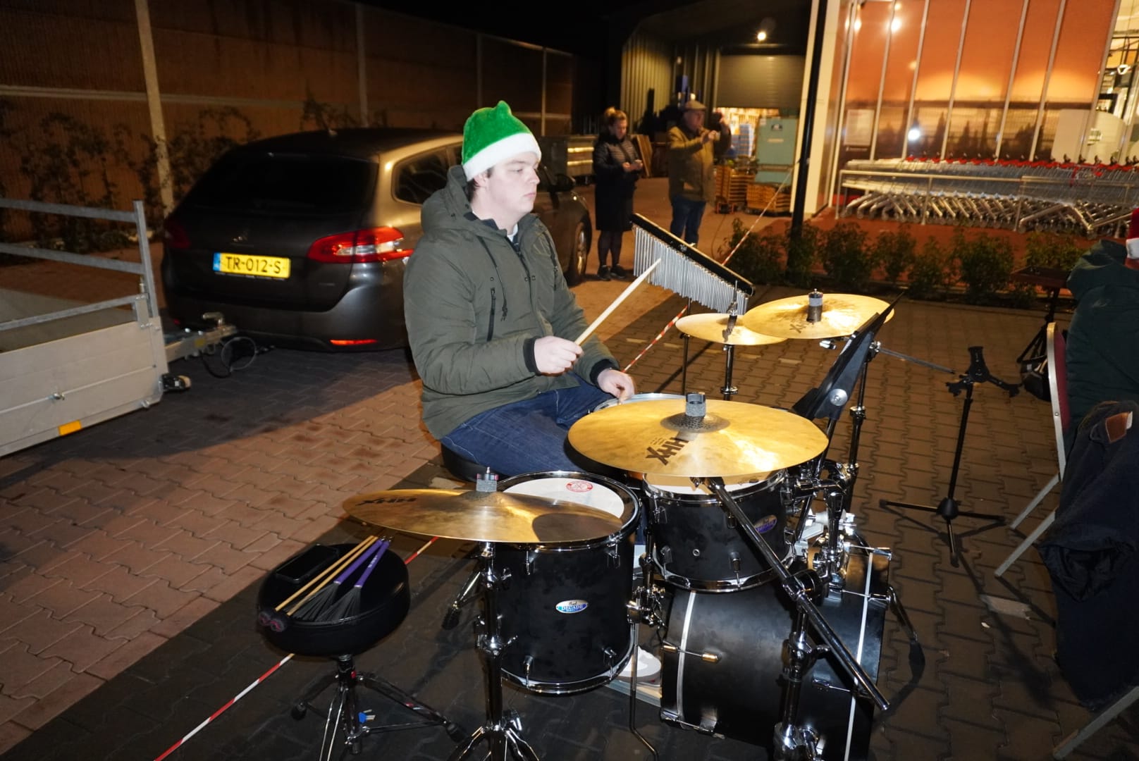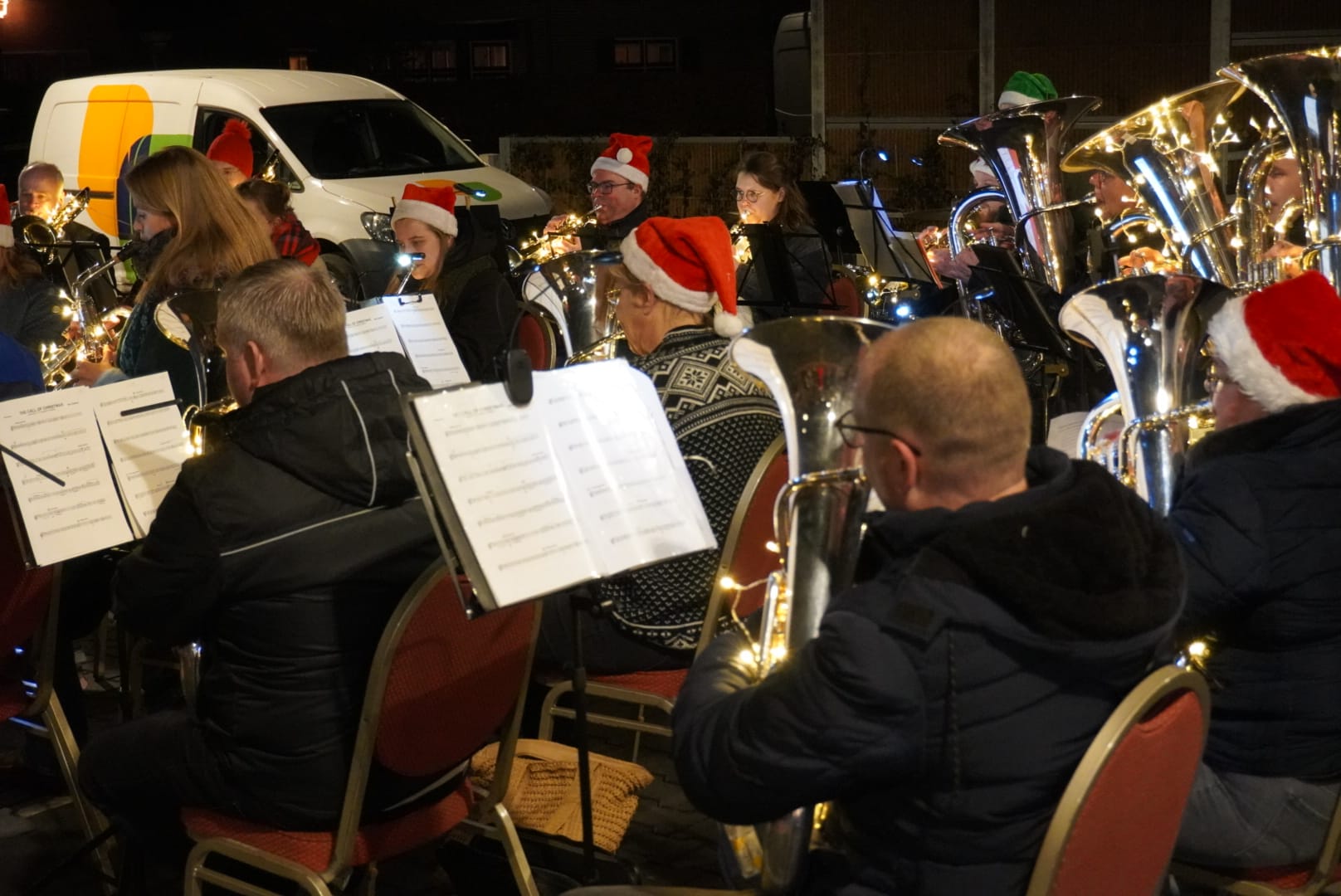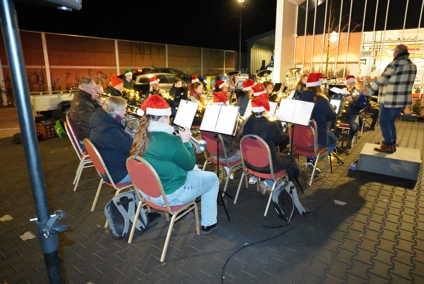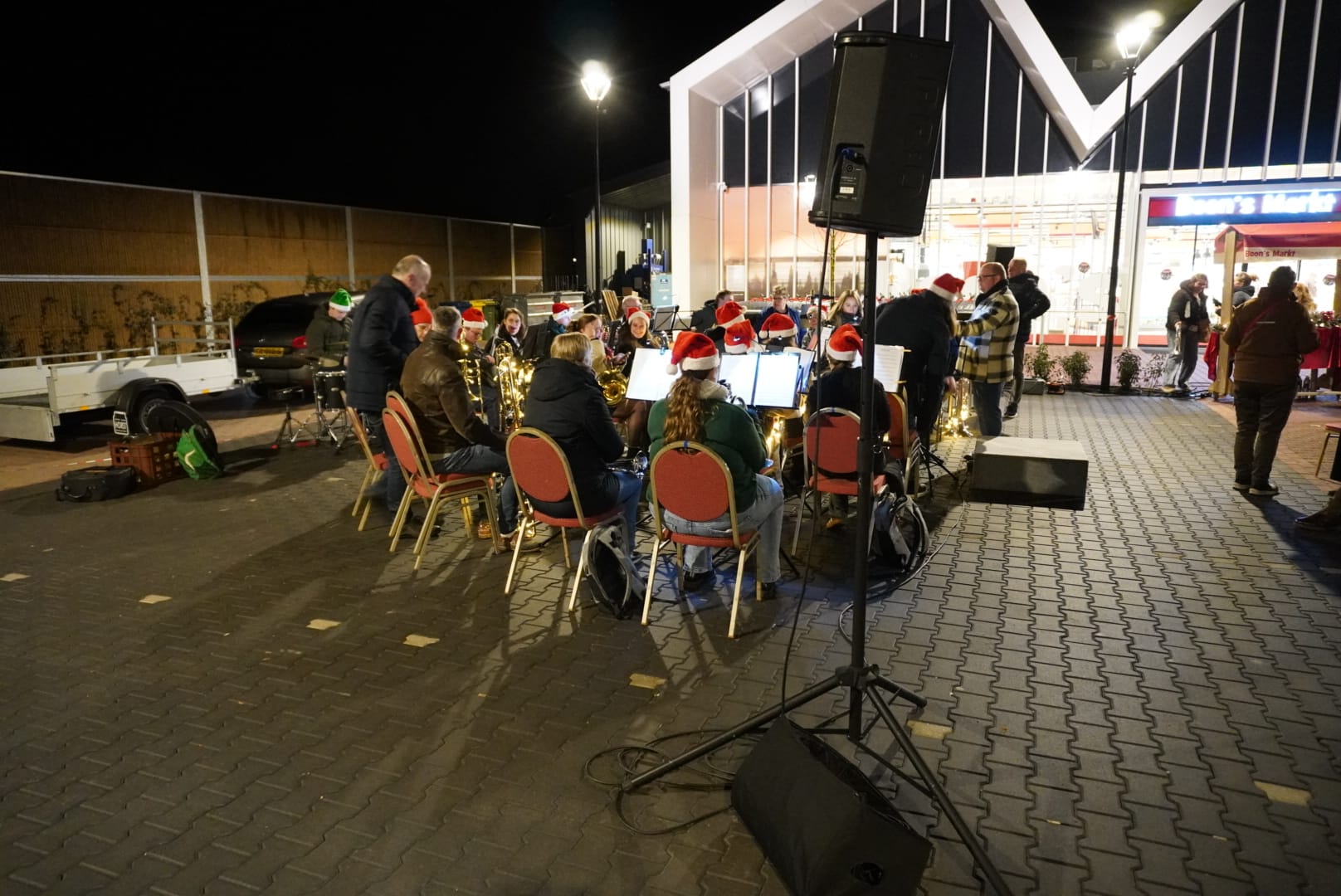 UDDEL – Vrijdagavond 19 december presenteerde Muziekvereniging Juliana Uddel een prachtig Kerstconcert op de parkeerplaats van Boon’s Markt.