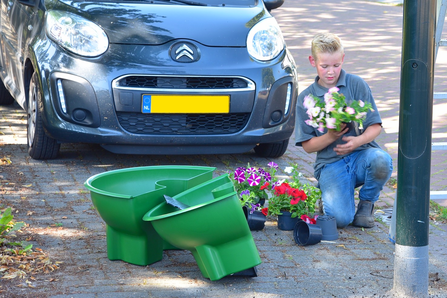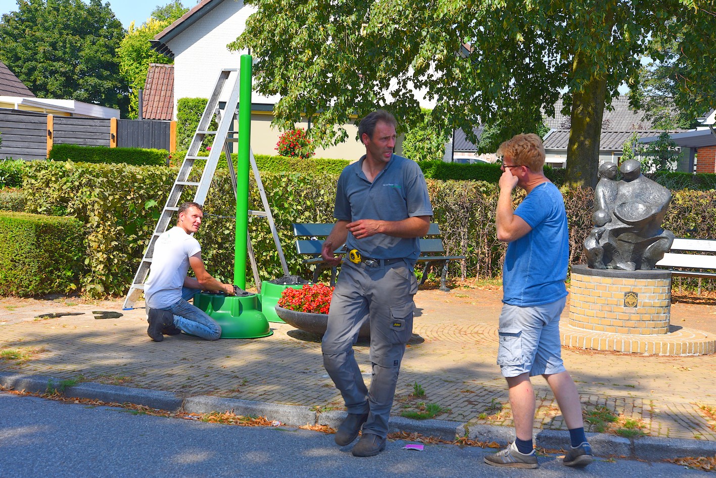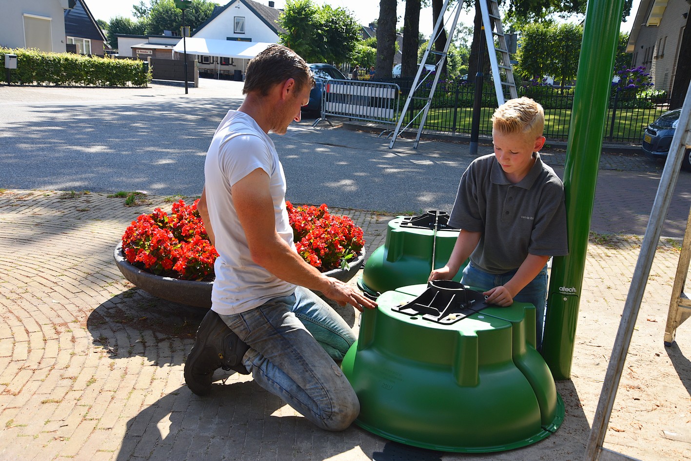 UDDEL – Zoals enige weken terug al geschreven, bij de plaatsing van de eerste bloemenschalen, heeft Uddels Belang met gemeente Apeldoorn een project Kleur in de Dorpen. Als vervolg hierop zijn deze week een vijftal zuilen geplaatst met bloemenschalen eraan.
