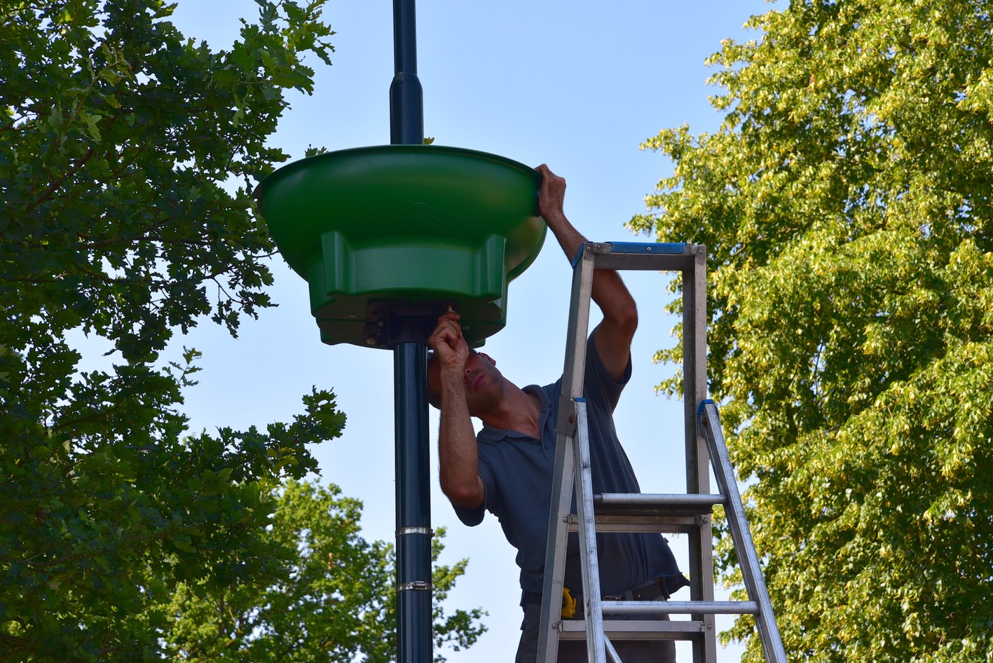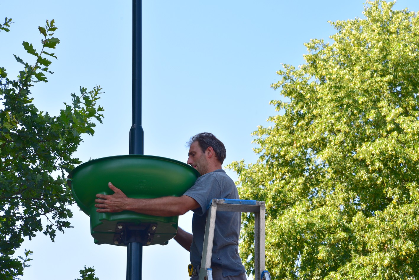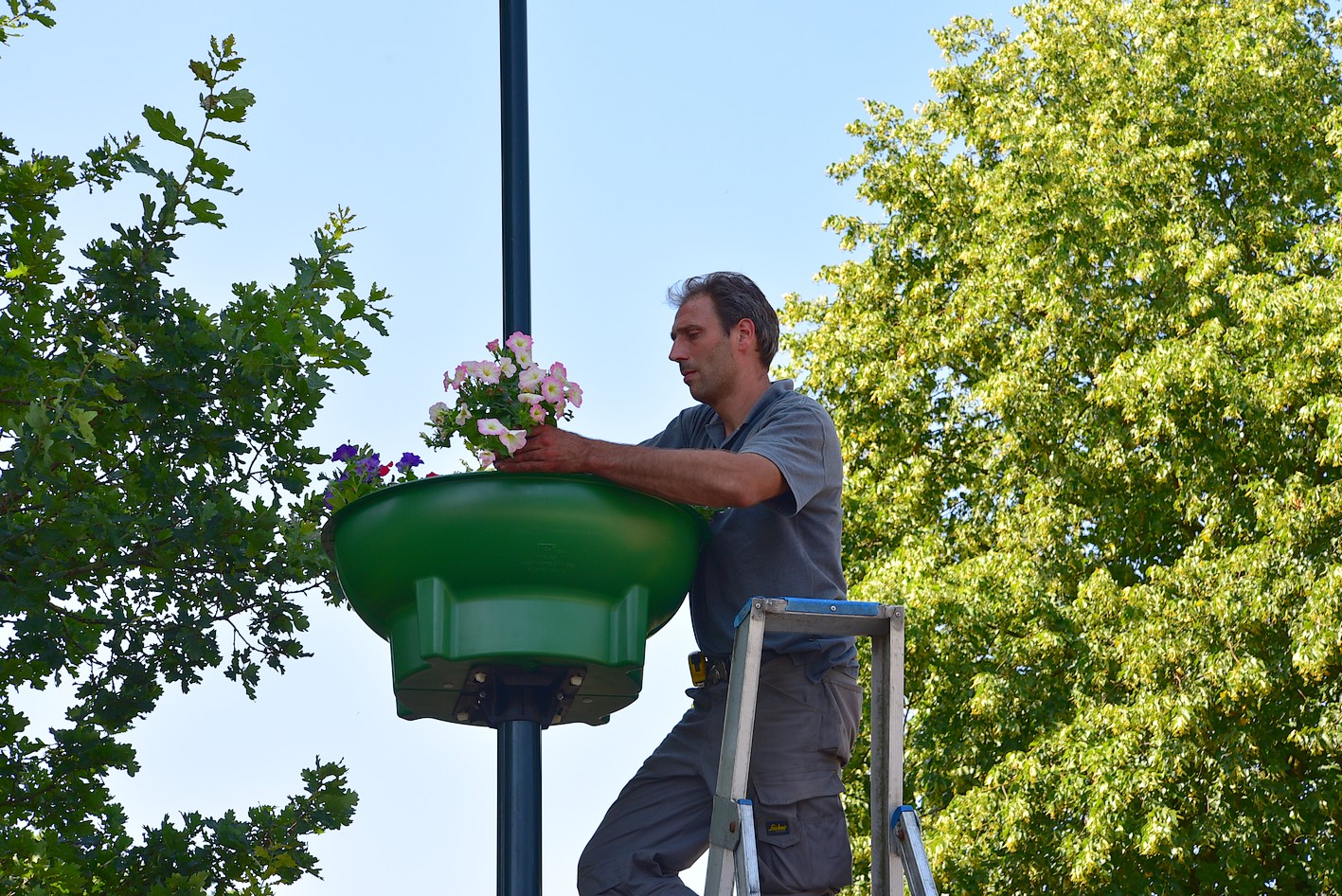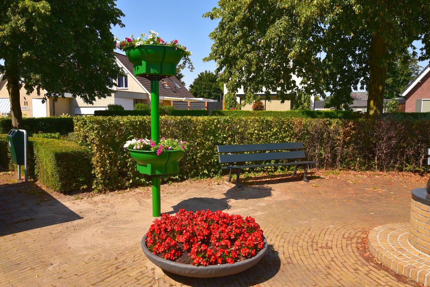 Ook zijn in een aantal lantaarnpalen bloemenschalen opgehangen. Langs de Harderwijkerweg, Van Waalswijkweg en Aardhuisweg gaat het om een dubbele schaal. Langs de Elspeterweg en Garderenseweg zijn het halve schalen. Op last van de provincie mogen hier geen schalen aan de zijde van de weg hangen vanwege mogelijk gevaar voor met name vrachtverkeer.