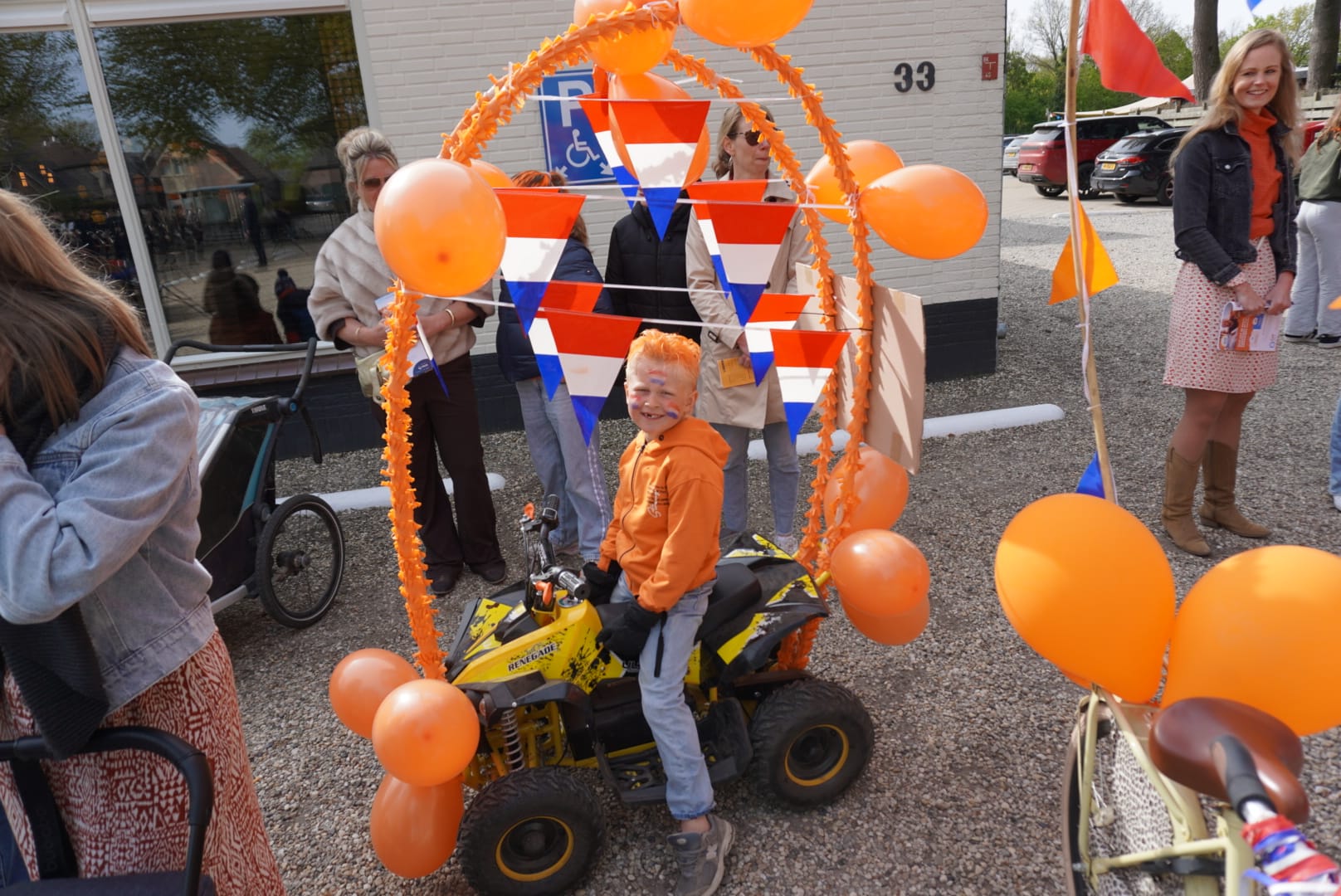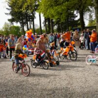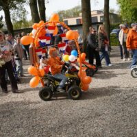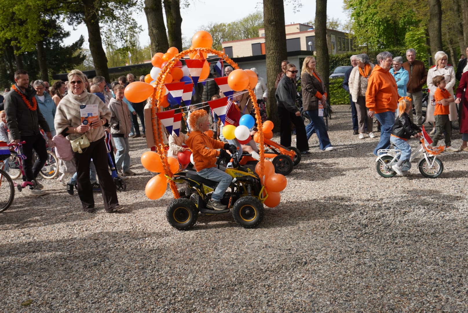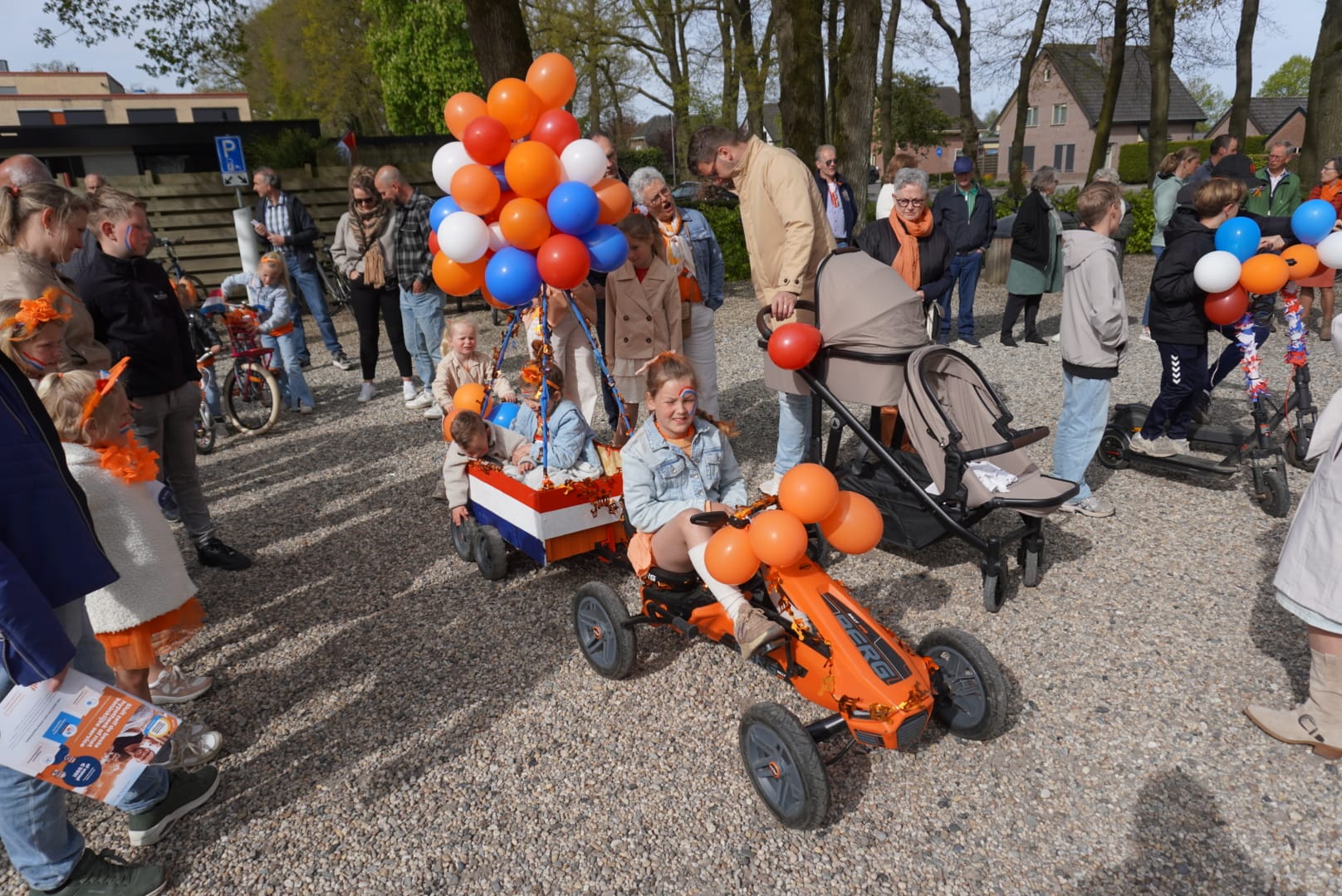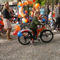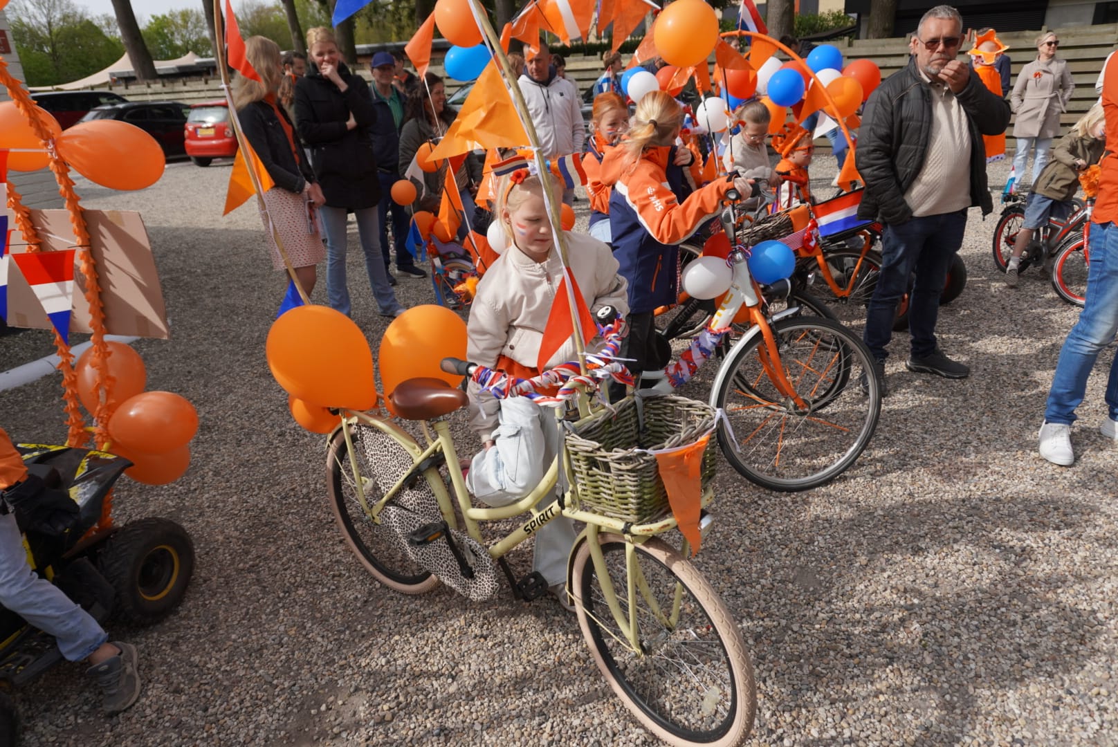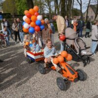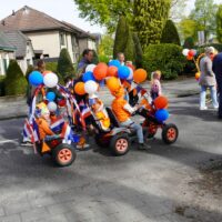 Na de aubade was er de optocht door het dorp met versierde fietsen en skelters voor en door de kinderen, ook onder de vrolijke klanken van Juliana uit Uddel met de gloednieuwe uniformen.