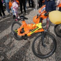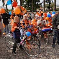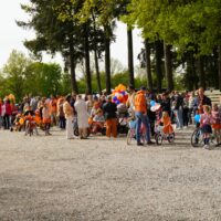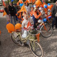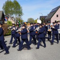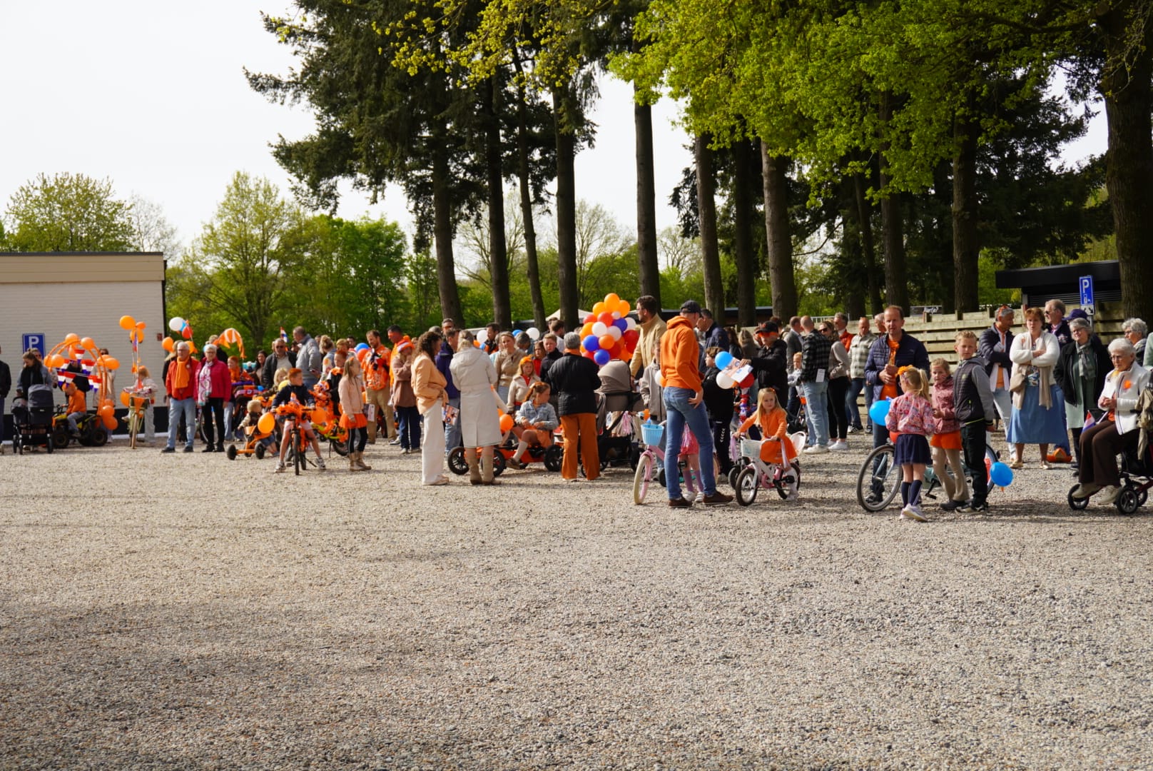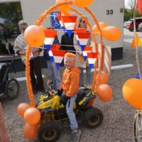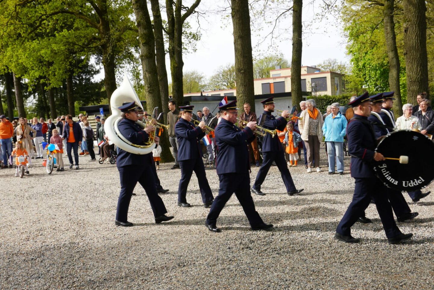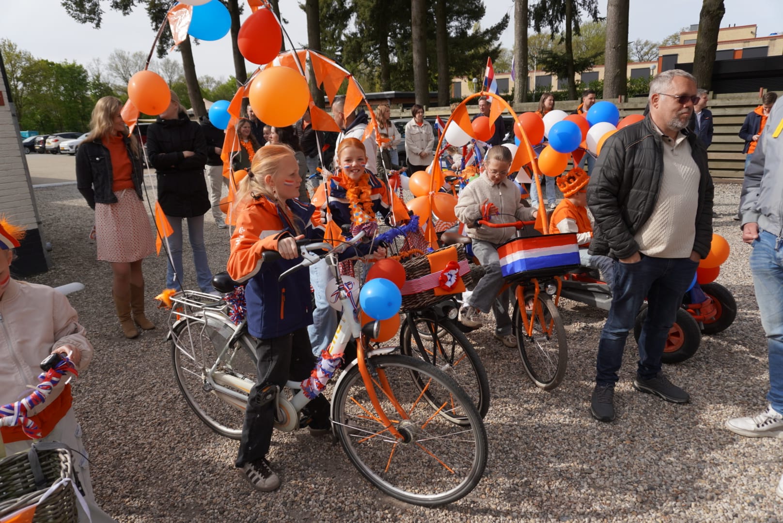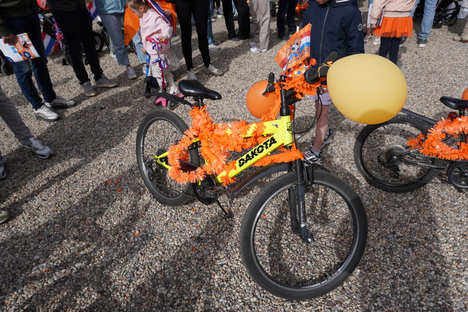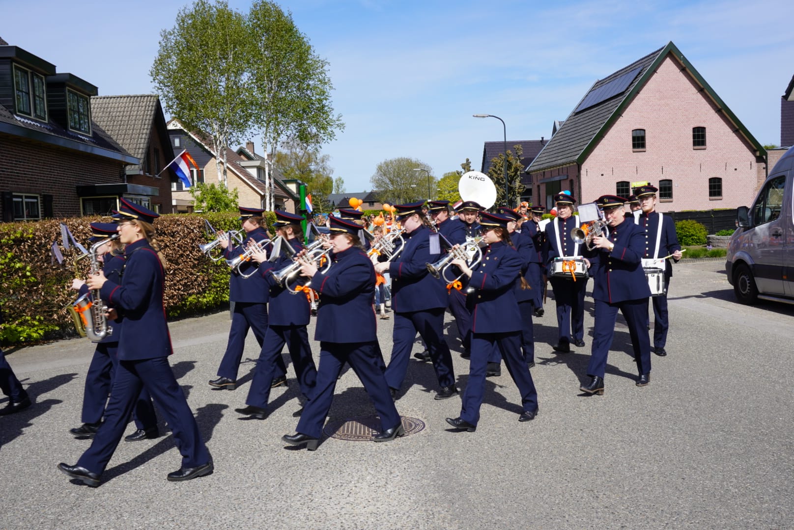 Na de aubade was er de optocht door het dorp met versierde fietsen en skelters voor en door de kinderen, ook onder de vrolijke klanken van Juliana uit Uddel met de gloednieuwe uniformen.