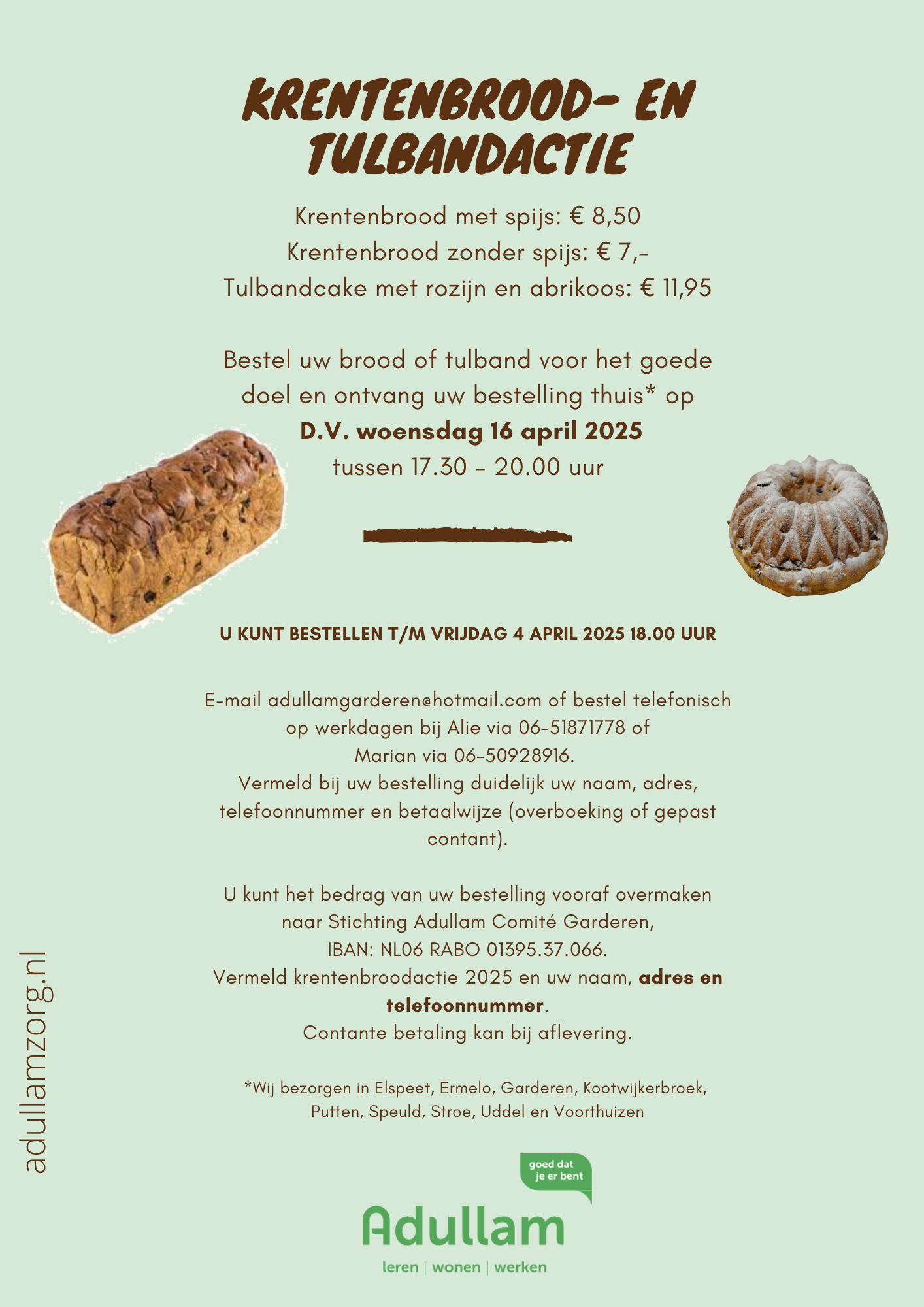 UDDEL – Het Comité Adullam Garderen-Uddel heeft weer een krentenbrood- en tulband actie.