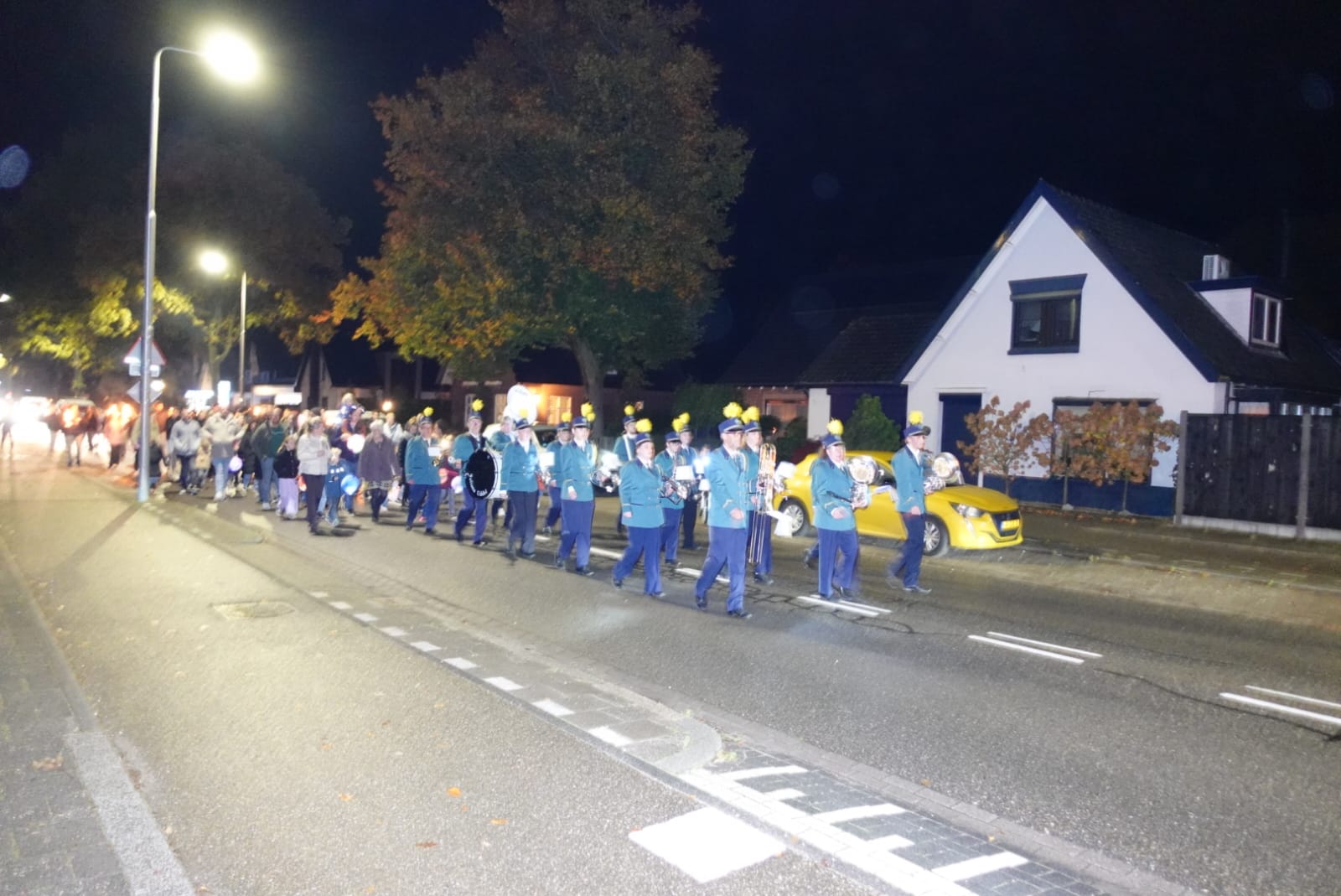 Om 19.30 uur ging de optocht van start onder begeleiding van vrolijke klanken van Muziekvereniging Juliana uit Uddel.