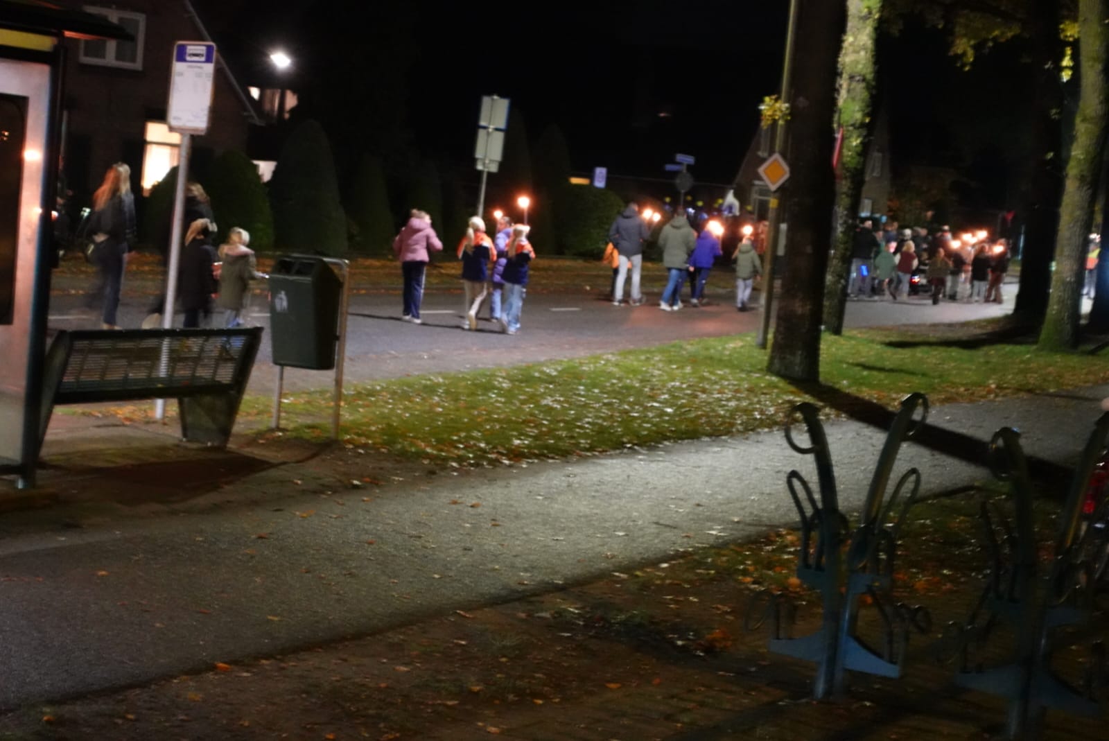 Veel kinderen hadden voor deze optocht lampionnen en fakkels gekocht in Dorpshuis Het Blanke Schot om me te lopen met deze mooi verlichte optocht door de straten van Uddel.