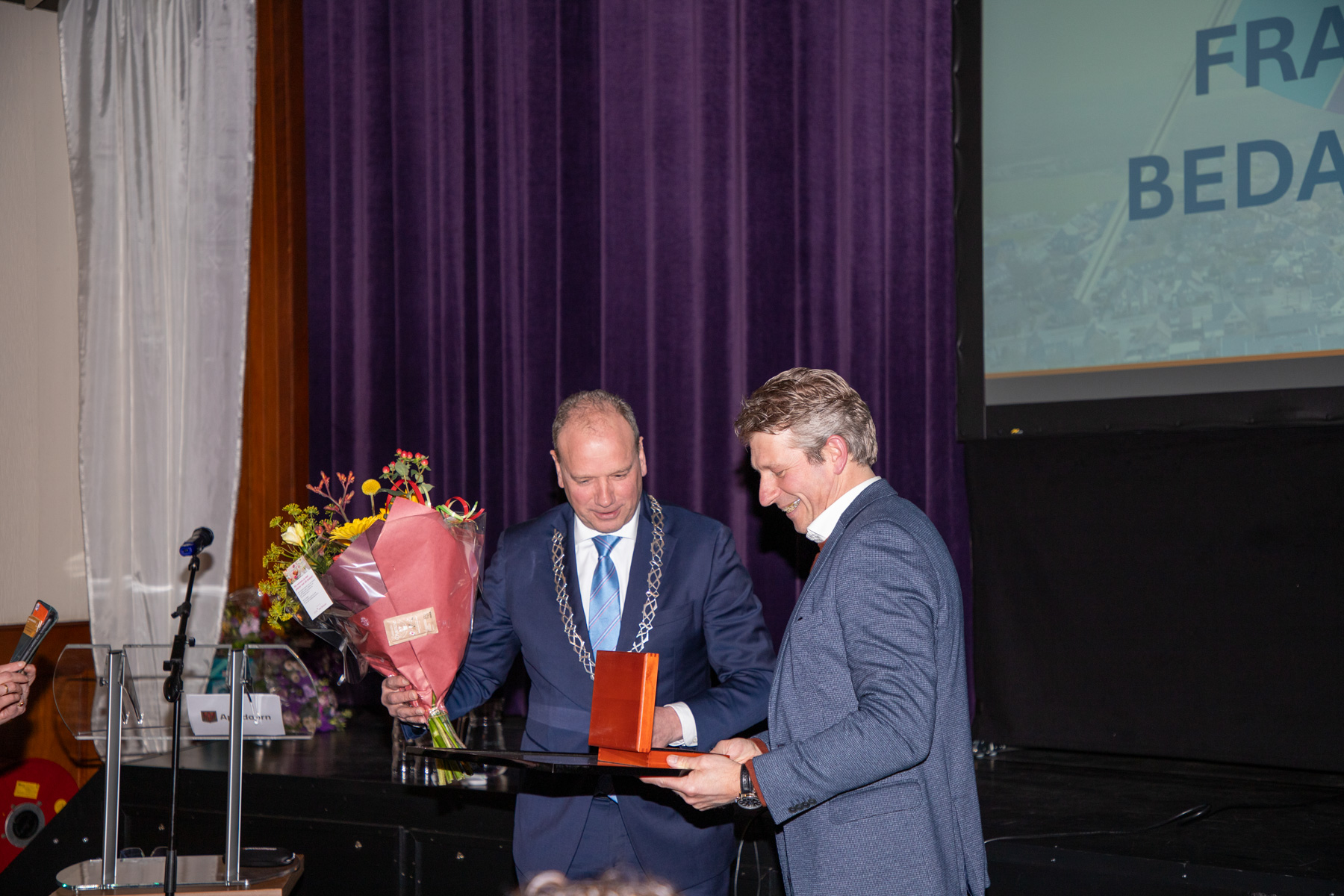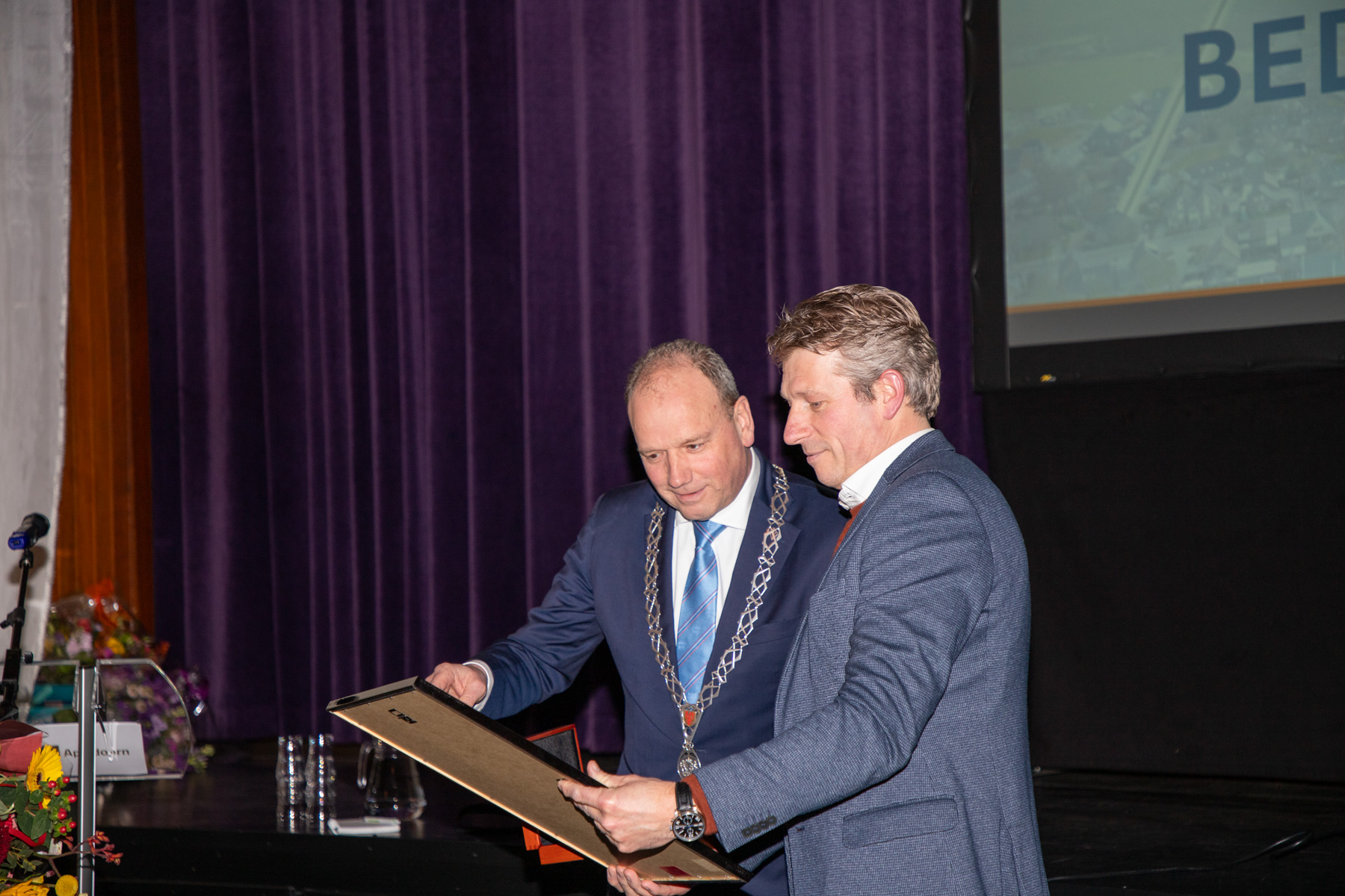 Zoals gezegd heeft Frank van de Kolk afscheid genomen als voorzitter van Uddels Belang. 23 jaar lang heeft hij zich in mogen zetten voor ons dorp op allerlei manieren en daar staat een prachtige onderscheiding tegenover. Burgemeester Ton Heerts heeft hem daarom tijdens de afscheidsreceptie de Zilveren Erepenning van de gemeente Apeldoorn uitgereikt. Velen spraken hem toe om hem te bedanken voor alles wat hij heeft gedaan, een prachtige afsluiting van een lange en waardevolle periode.