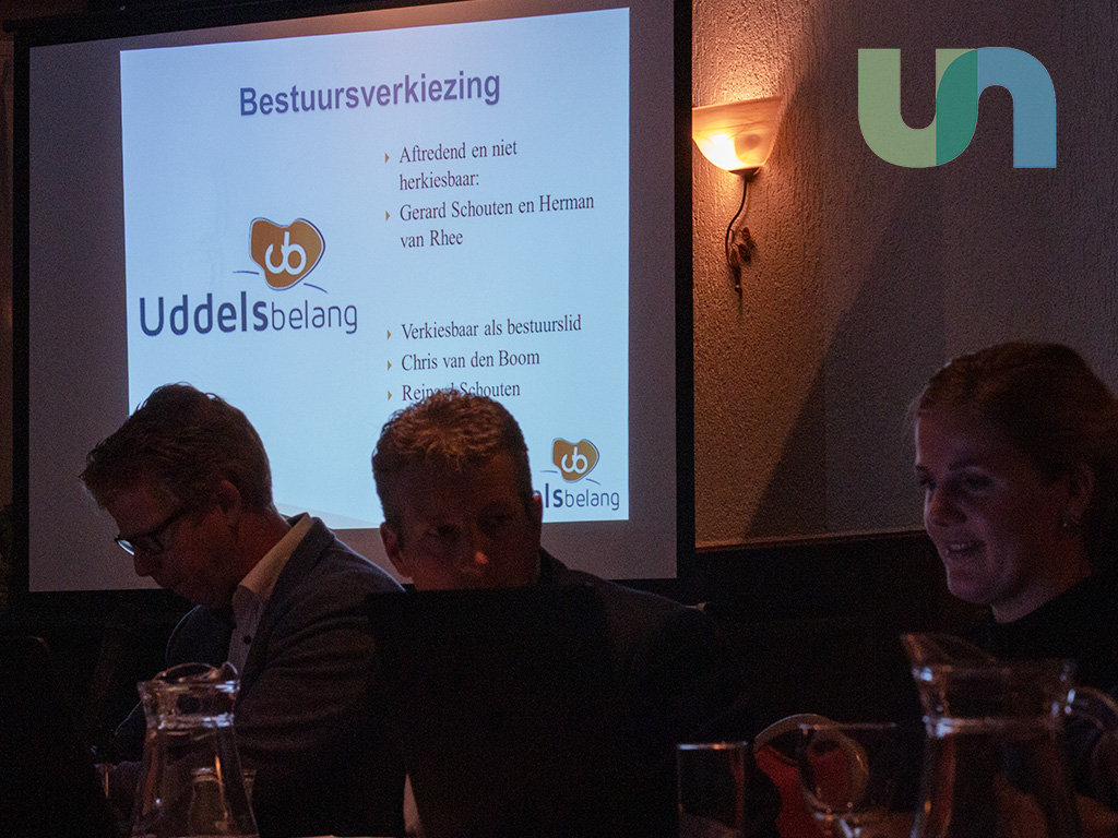 Na de opening door de voorzitter, Evert-Jan van Egteren, werden de cijfers van het afgelopen jaar getoond. Zowel Uddels Belang als de Ouderenwerkgroep staan er financieel gezien goed voor. Het afgelopen jaar is er door verschillende omstandigheden minder geld uitgegeven, waardoor er nu geld apart gezet kan worden voor het opknappen van het trapveldje nabij het Blanke Schot, de dorpsverfraaiing en voor speelvoorzieningen in het dorp.
