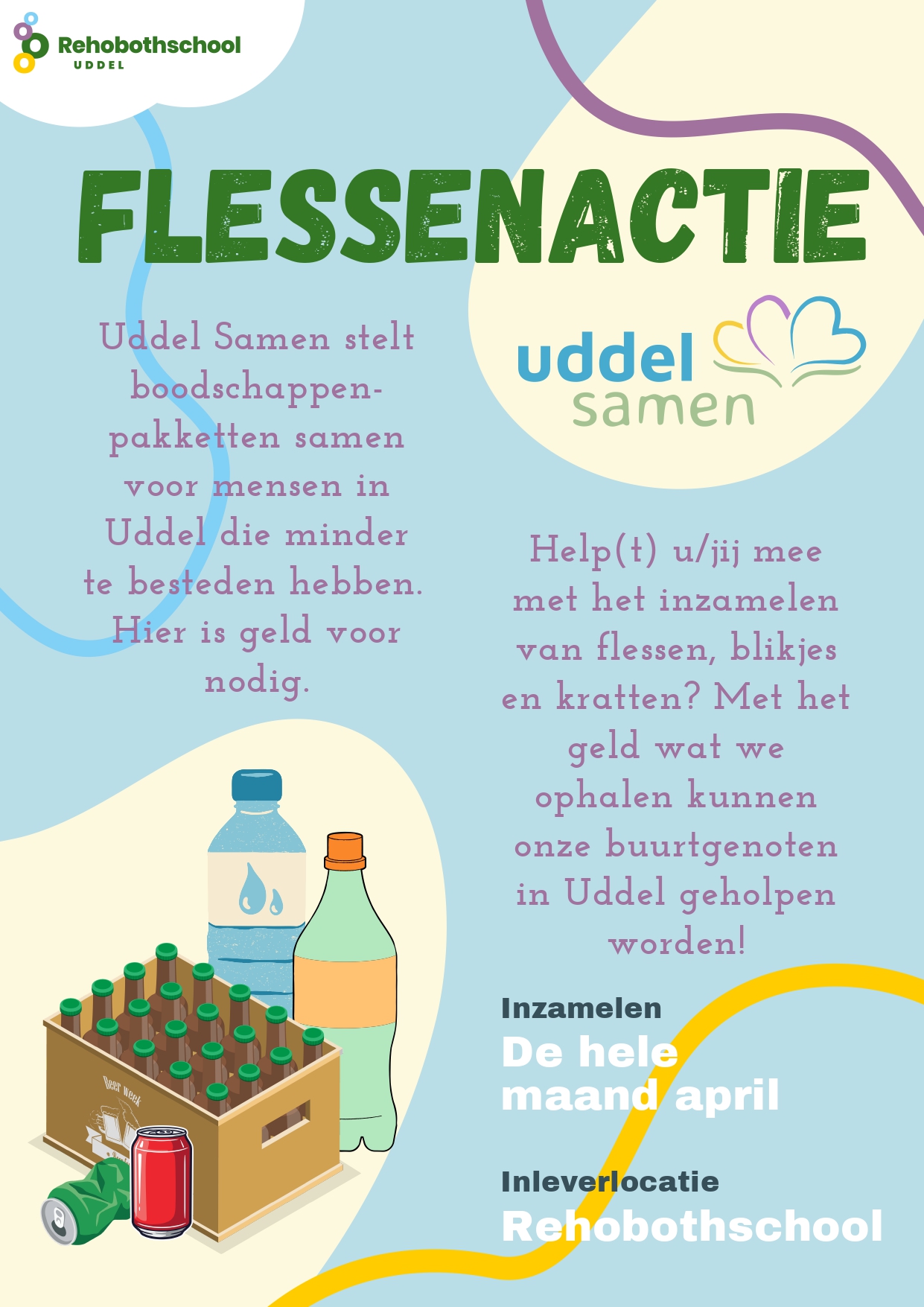 In de maand april kunnen de flessen/blikjes worden in geleverd bij de school. Help(t) u/jij mee met inzamelen?