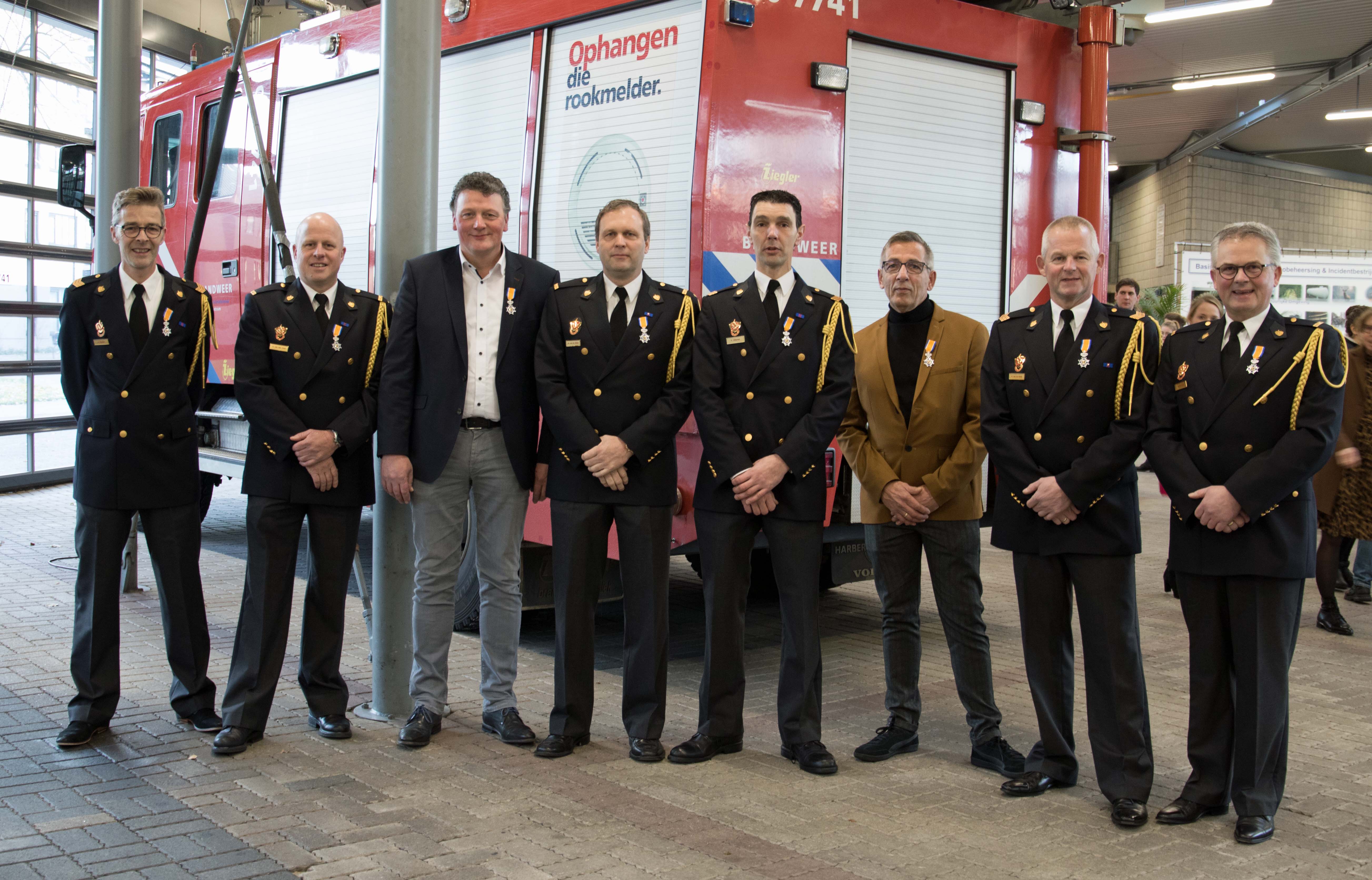 Apeldoorn – Zaterdag 30 november 2019 werden zes leden en twee oud-leden koninklijk onderscheiden. Deze brandweer mensen zijn of waren als vrijwilliger, 20 jaar of langer actief in dienst van Brandweer Uddel. De brandweer mensen werden bedankt voor hun jarenlange inzet op het gebied van hulpverlening, het blussen van branden en natuurbrand bestrijding. Voor al deze inzet behaagde het Zijne Majesteit den Koning deze heren te benoemen tot Lid in de Orde van Oranje-Nassau. De lintjes werden uitgereikt door de Jeroen Joon, loco burgemeester van gemeente Apeldoorn.
