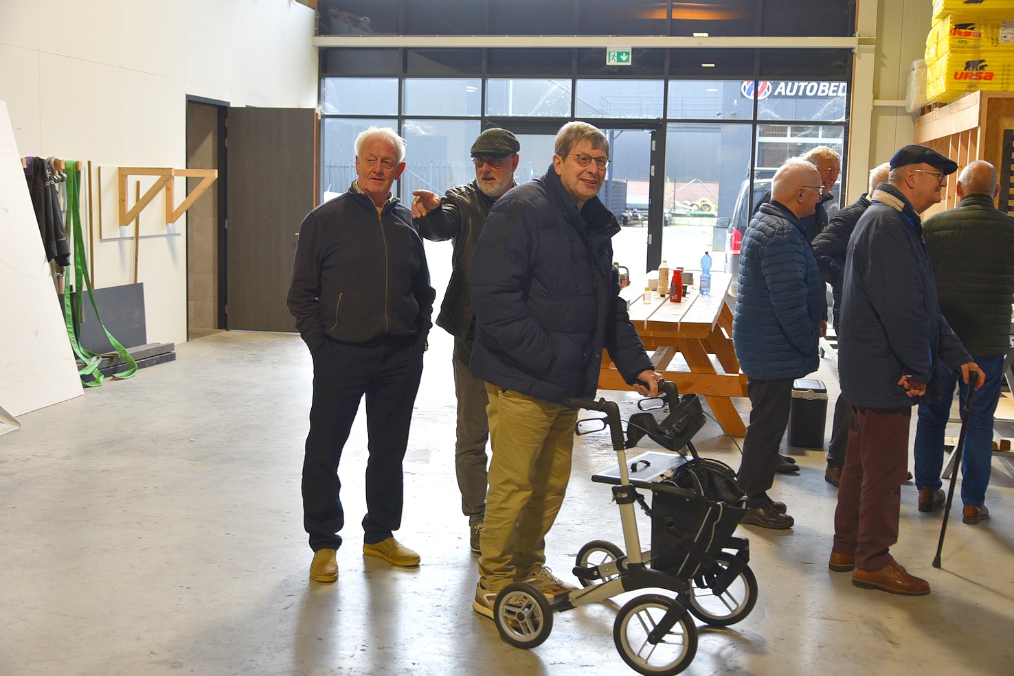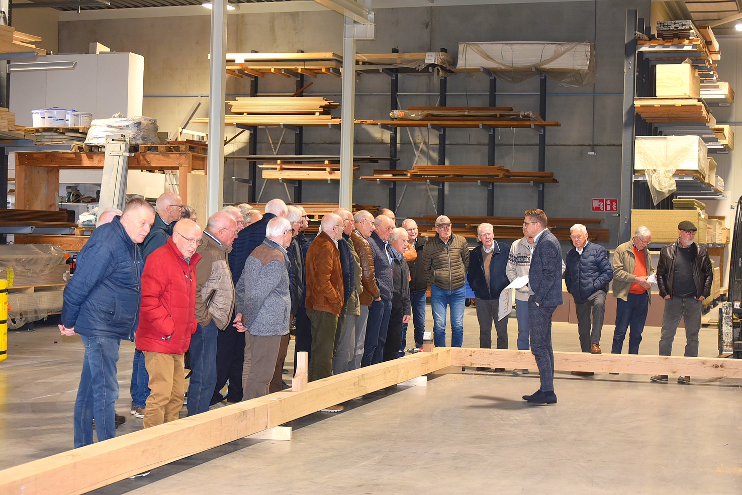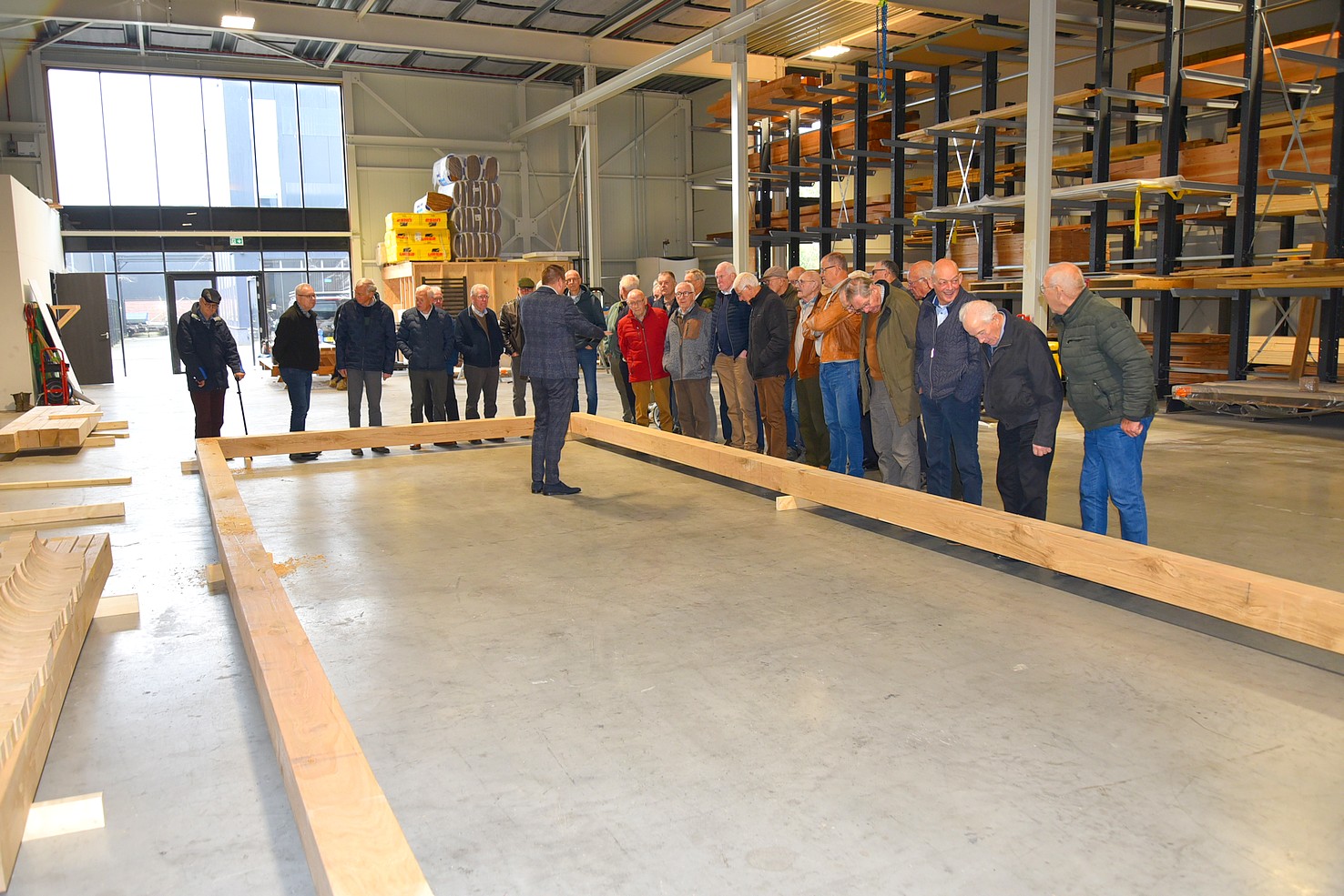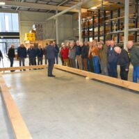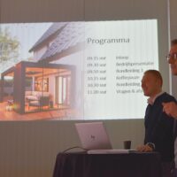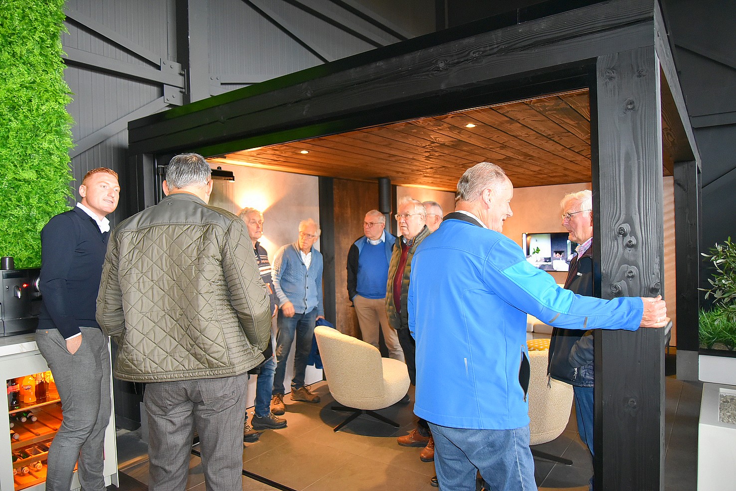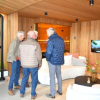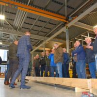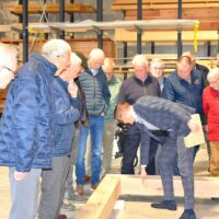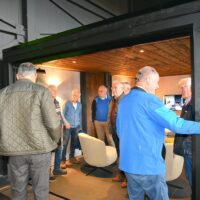 De andere groep ging met Hans mee en mocht een kijkje nemen in de showroom. Daar zagen we voorbeelden van tuinhuizen. Bewust is deze ruimte niet te groot, want men wil tijd nemen voor voorlichting. Belangrijker is om te zien hoe de constructie is, zodat de klant overtuigd wordt van een stukje gedegen vakwerk.