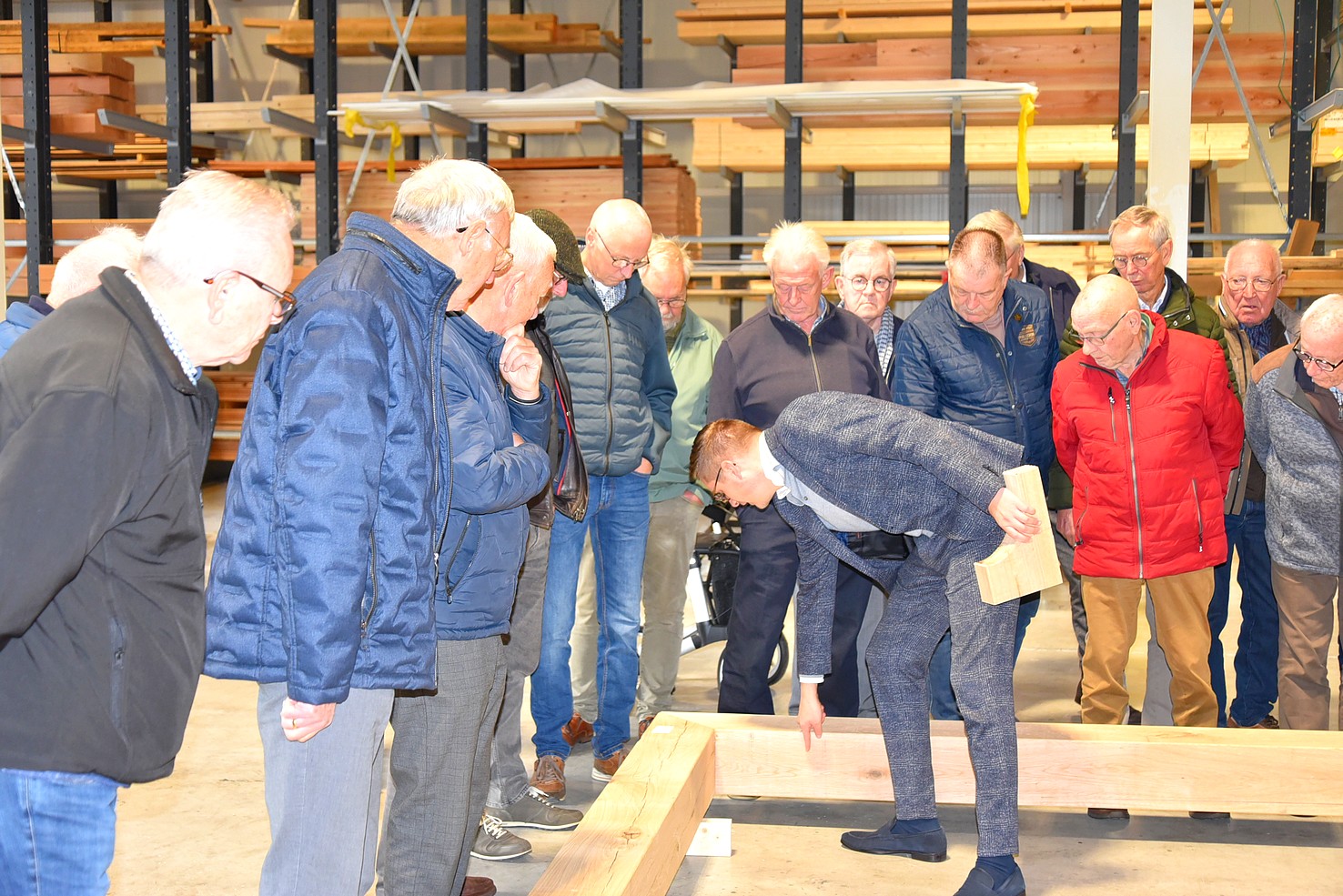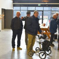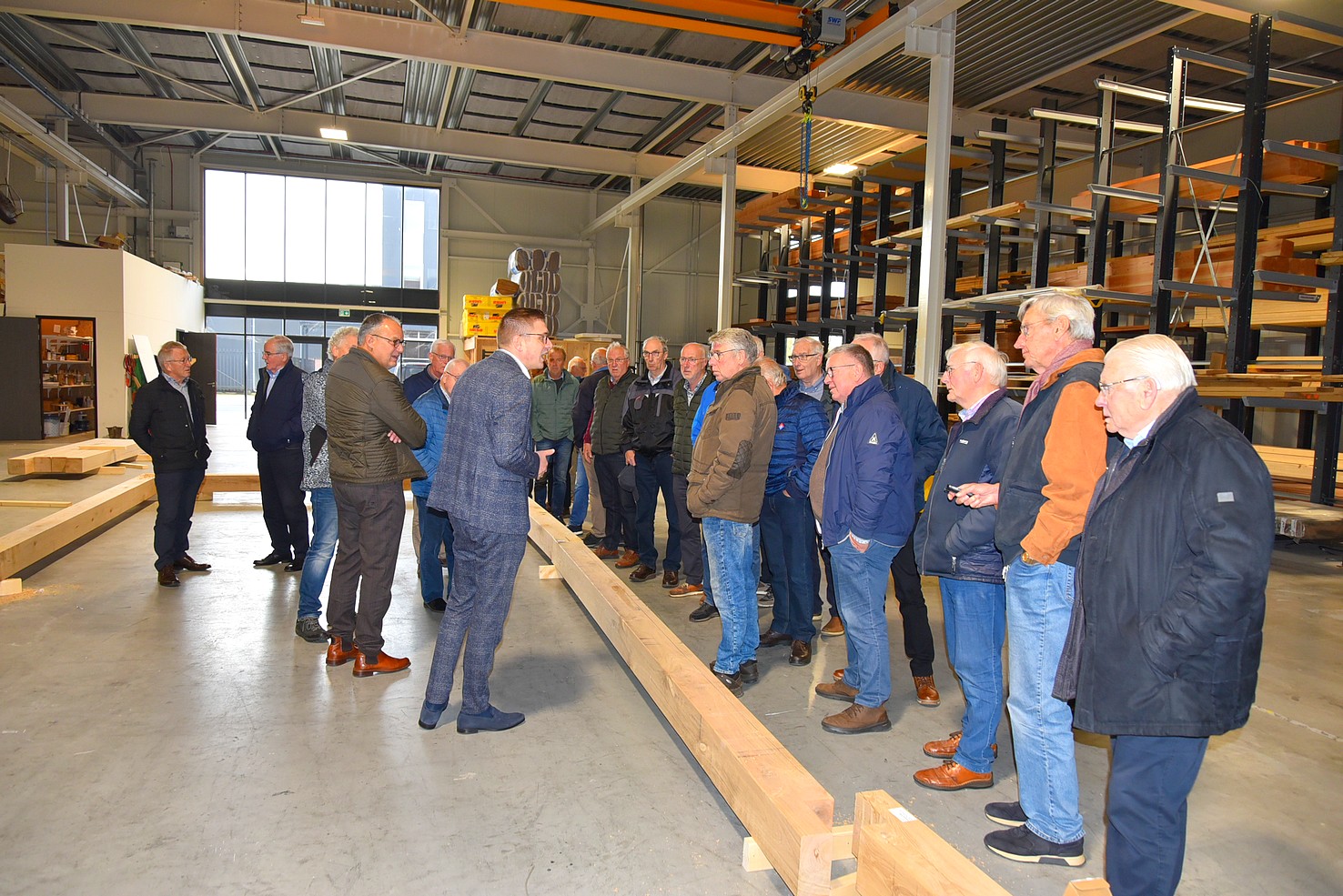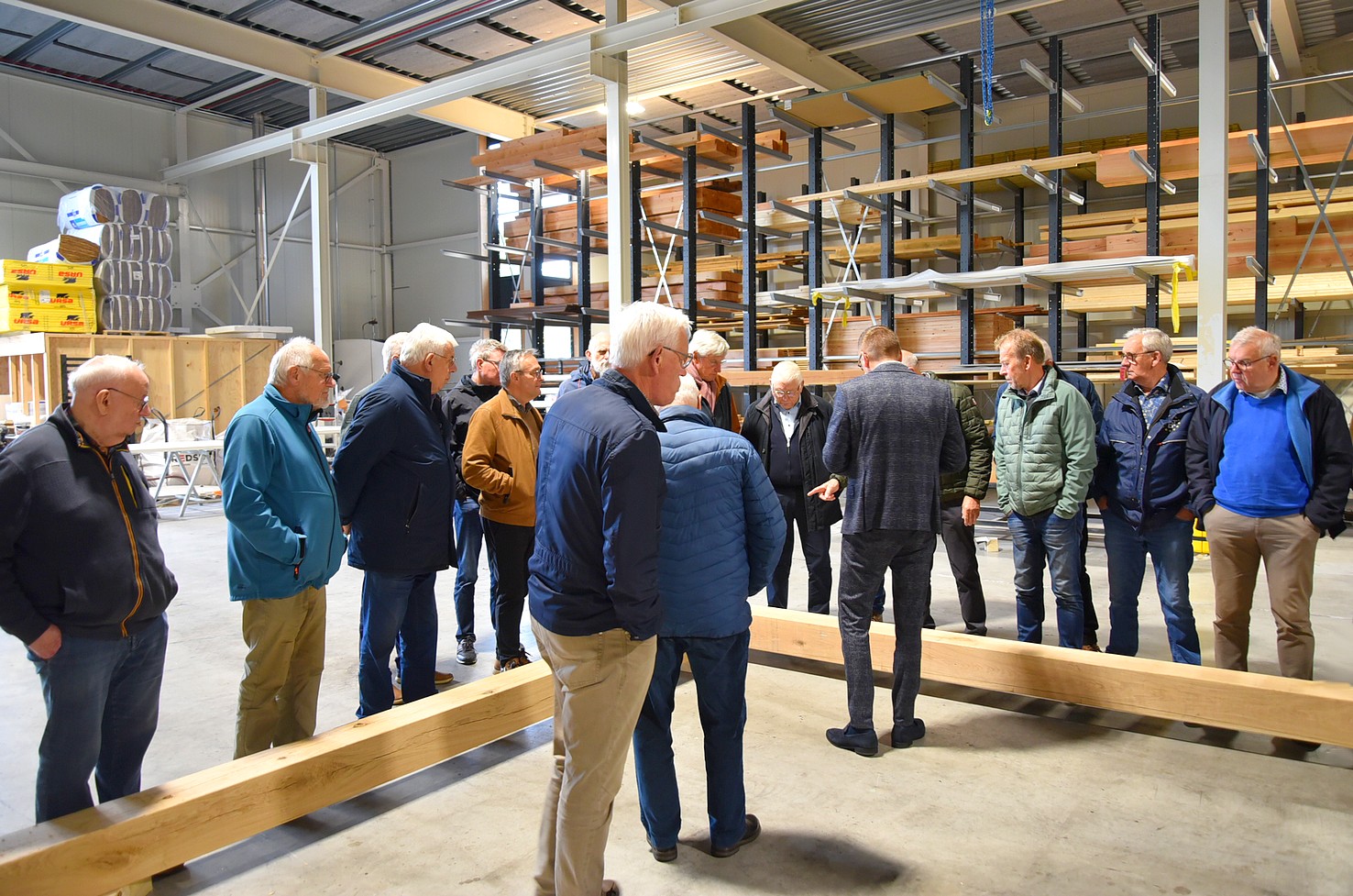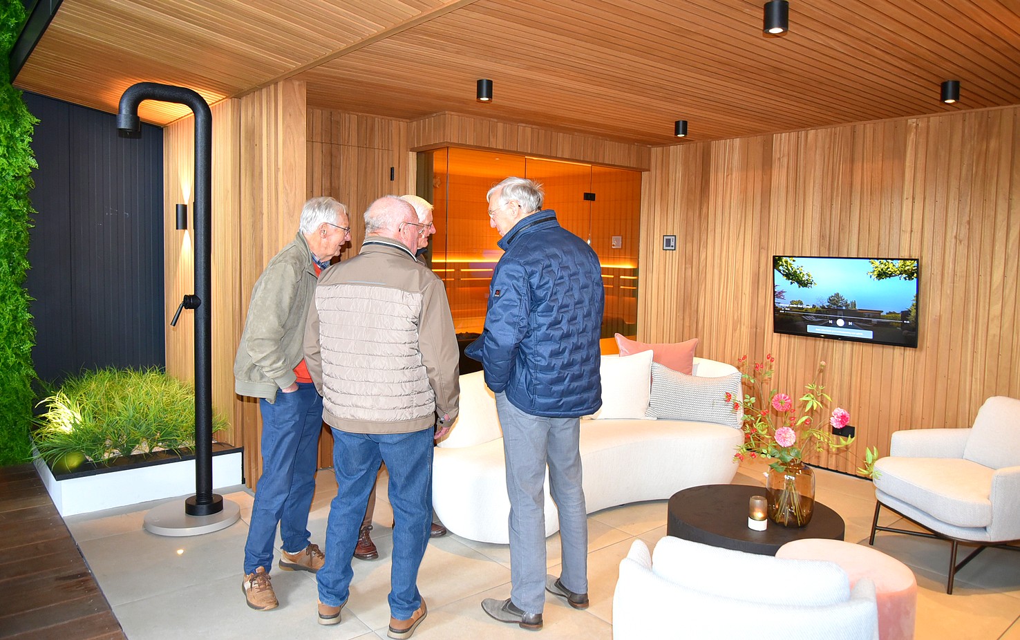 De andere groep ging met Hans mee en mocht een kijkje nemen in de showroom. Daar zagen we voorbeelden van tuinhuizen. Bewust is deze ruimte niet te groot, want men wil tijd nemen voor voorlichting. Belangrijker is om te zien hoe de constructie is, zodat de klant overtuigd wordt van een stukje gedegen vakwerk.