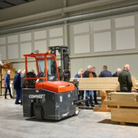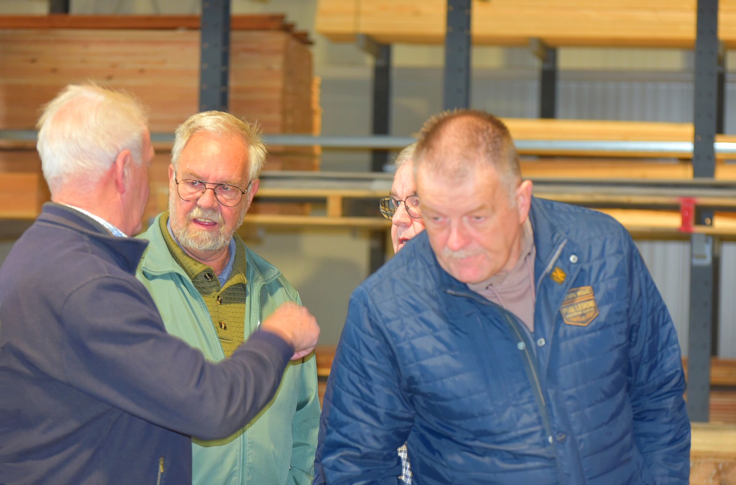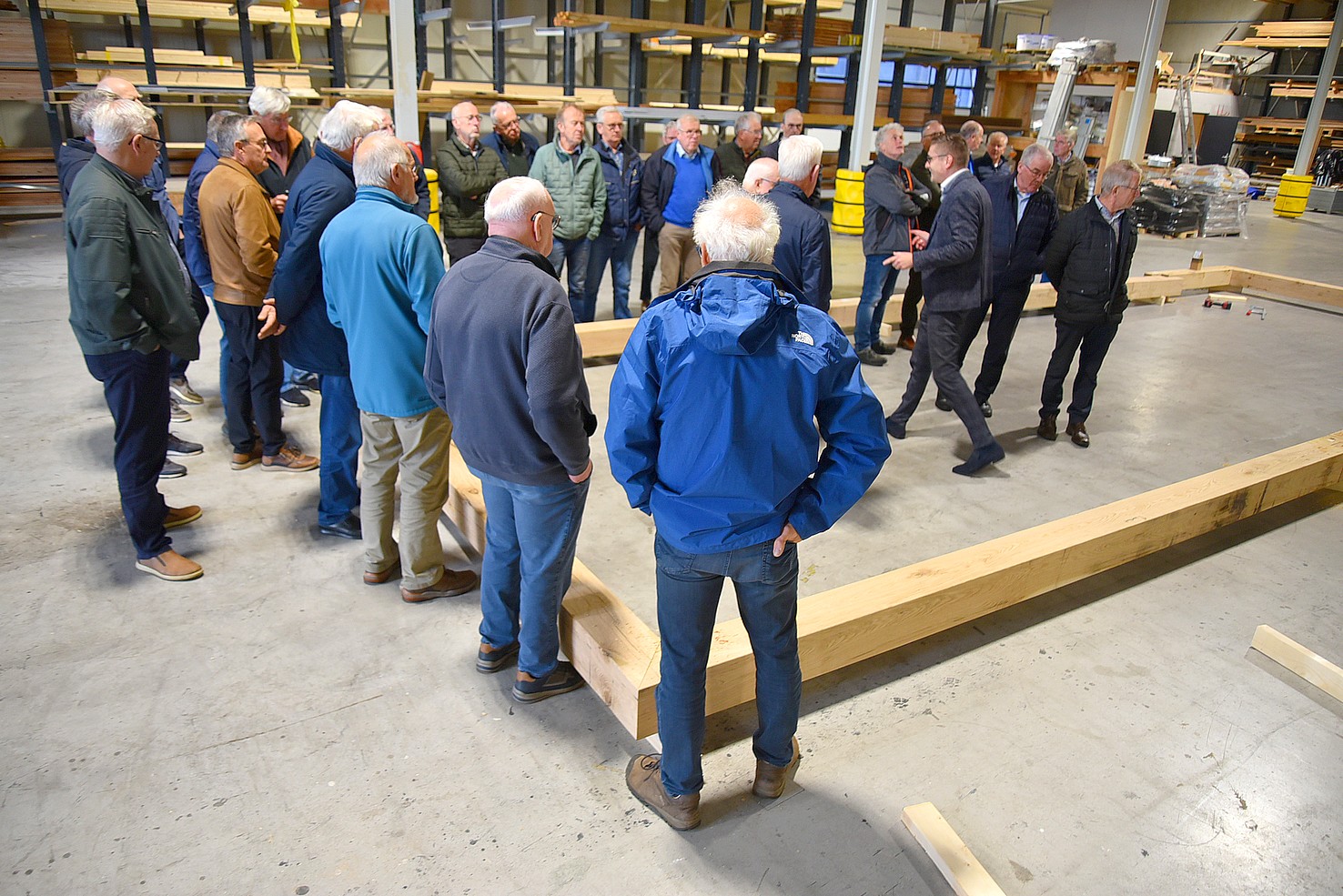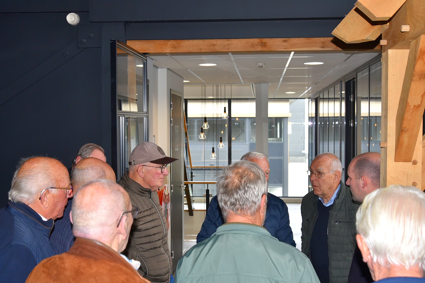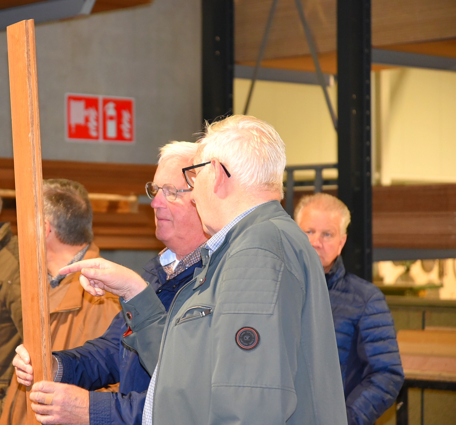 De andere groep ging met Hans mee en mocht een kijkje nemen in de showroom. Daar zagen we voorbeelden van tuinhuizen. Bewust is deze ruimte niet te groot, want men wil tijd nemen voor voorlichting. Belangrijker is om te zien hoe de constructie is, zodat de klant overtuigd wordt van een stukje gedegen vakwerk.