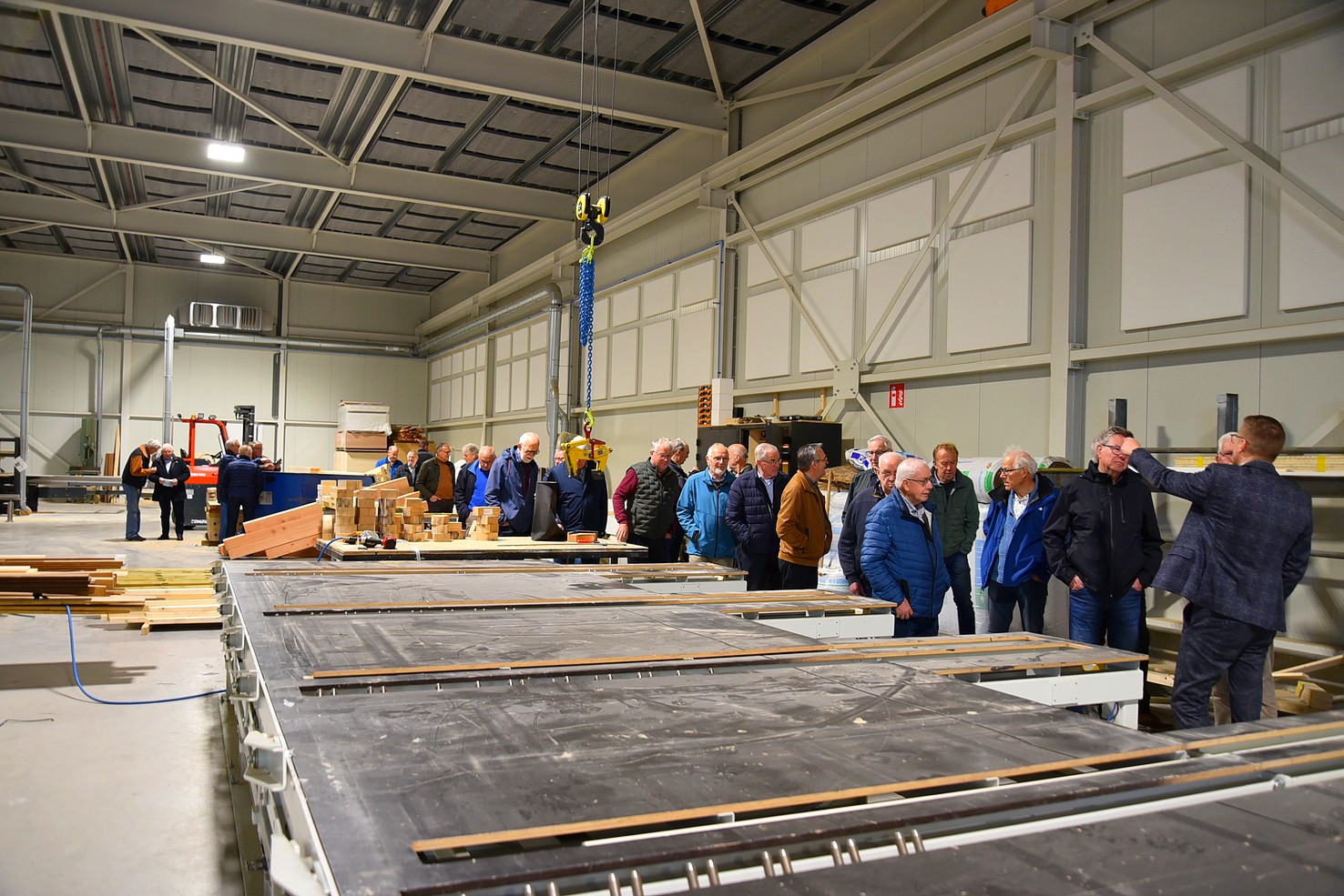 Na de presentatie van Gert gingen we in twee groepen uiteen. De ene groep ging naar de werkplaats waar we konden zien hoe een en ander werd gemaakt. Alles wordt hier pasklaar gemaakt, zodat men op locatie alleen maar hoeft te monteren en te installeren.