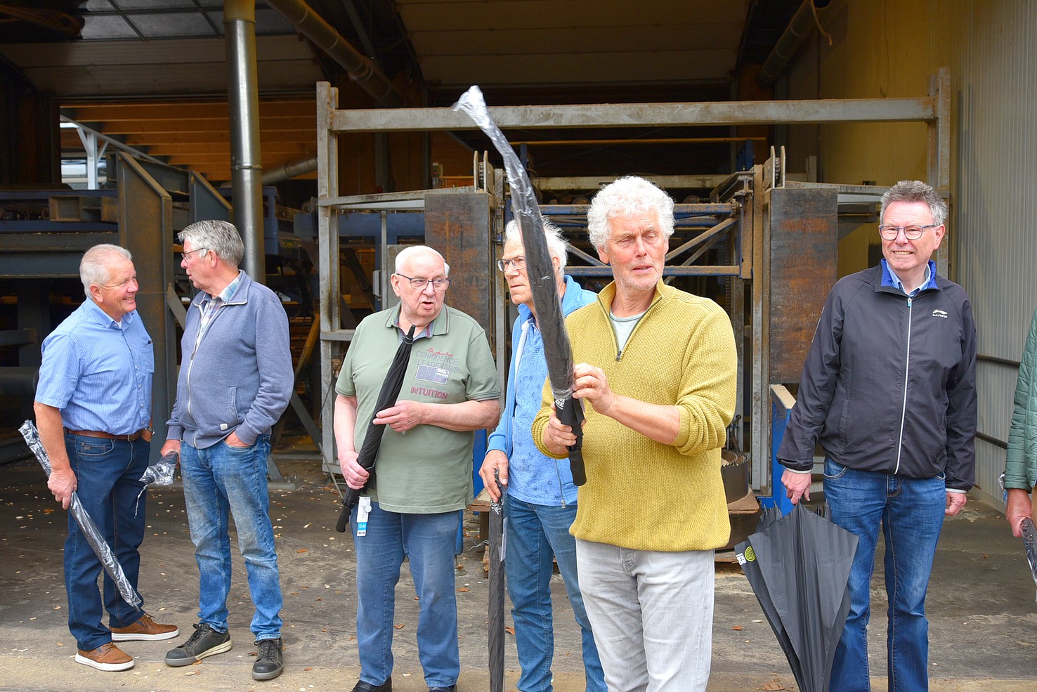 Tijdens de rondleiding begon het te regenen. Ook daar had Gert Boeve een oplossing voor. Iedere bezoeker werd voorzien van een paraplu, die we mochten houden als aandenken.