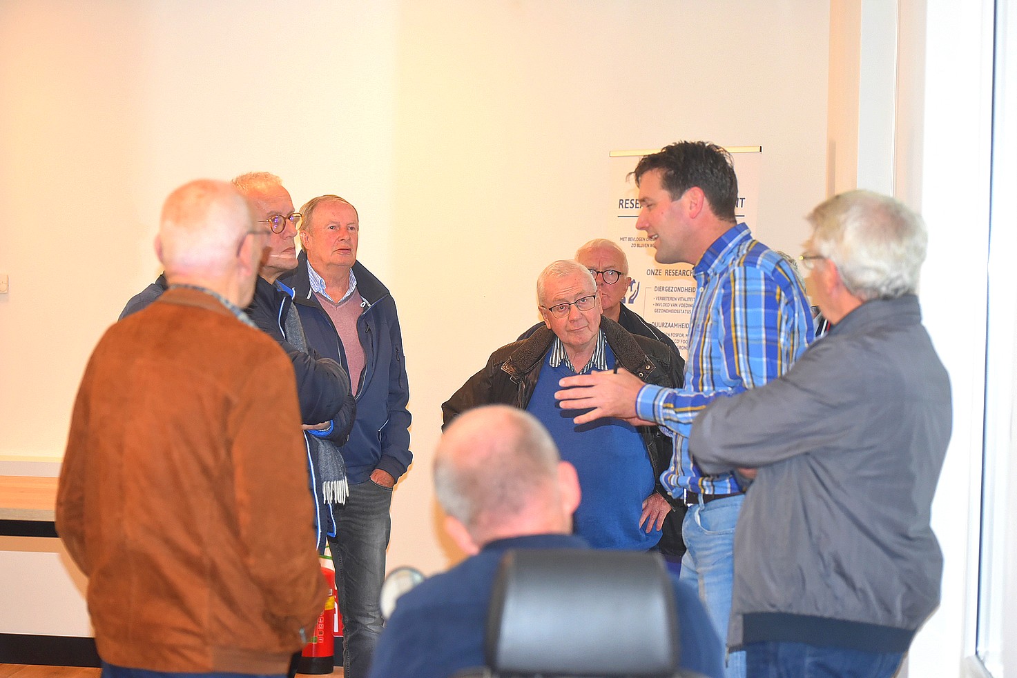 Na de lunch werden wij door Harmen Endendijk, hoofd R&D van Alpuro Breeding, bekendgemaakt met de activiteiten in, en de doelstellingen van, het dit jaar gerealiseerde Onderzoekscentrum Het DrieVeld. Daarna konden we in een drietal groepen het DrieVeld bezoeken en konden we de huisvesting van een 1000-tal opfok- en mestkalveren bewonderen.