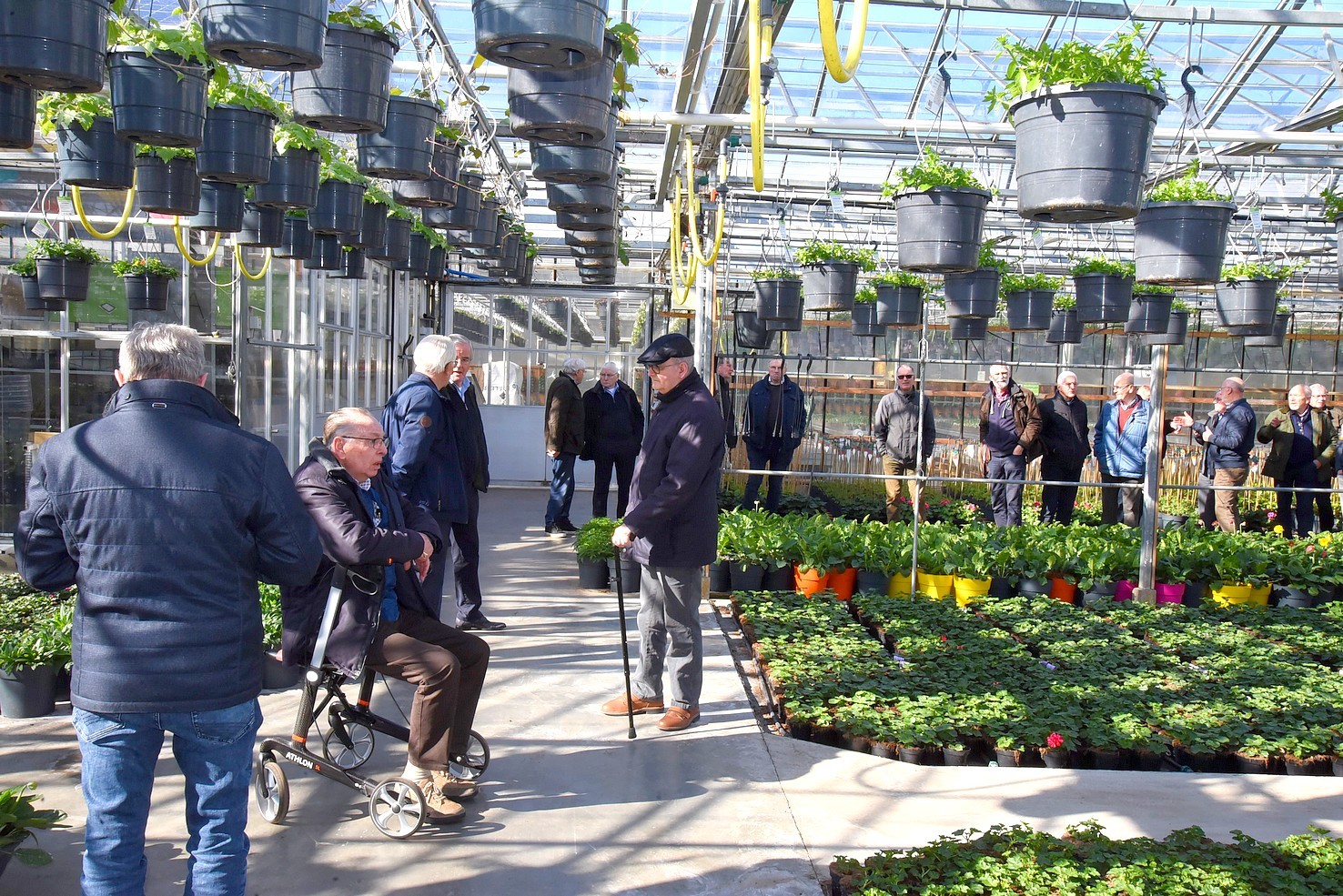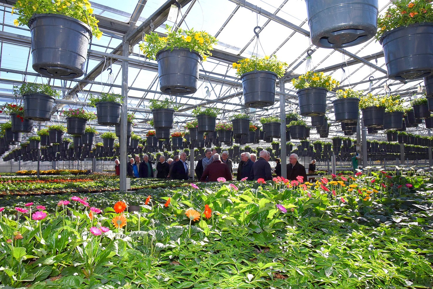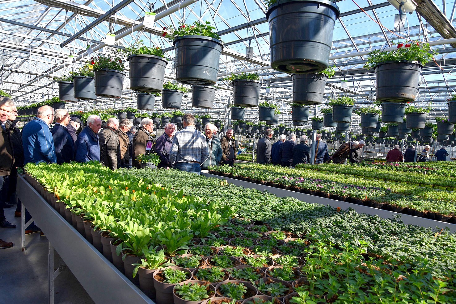 Na een uitgebreid praatje kregen we een rondleiding door de kassen. Een enorme diversiteit van zomerbloeiers, die ’s zomers dagelijks met vrachtwagens worden aangevuld.