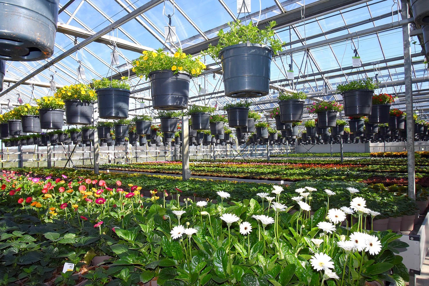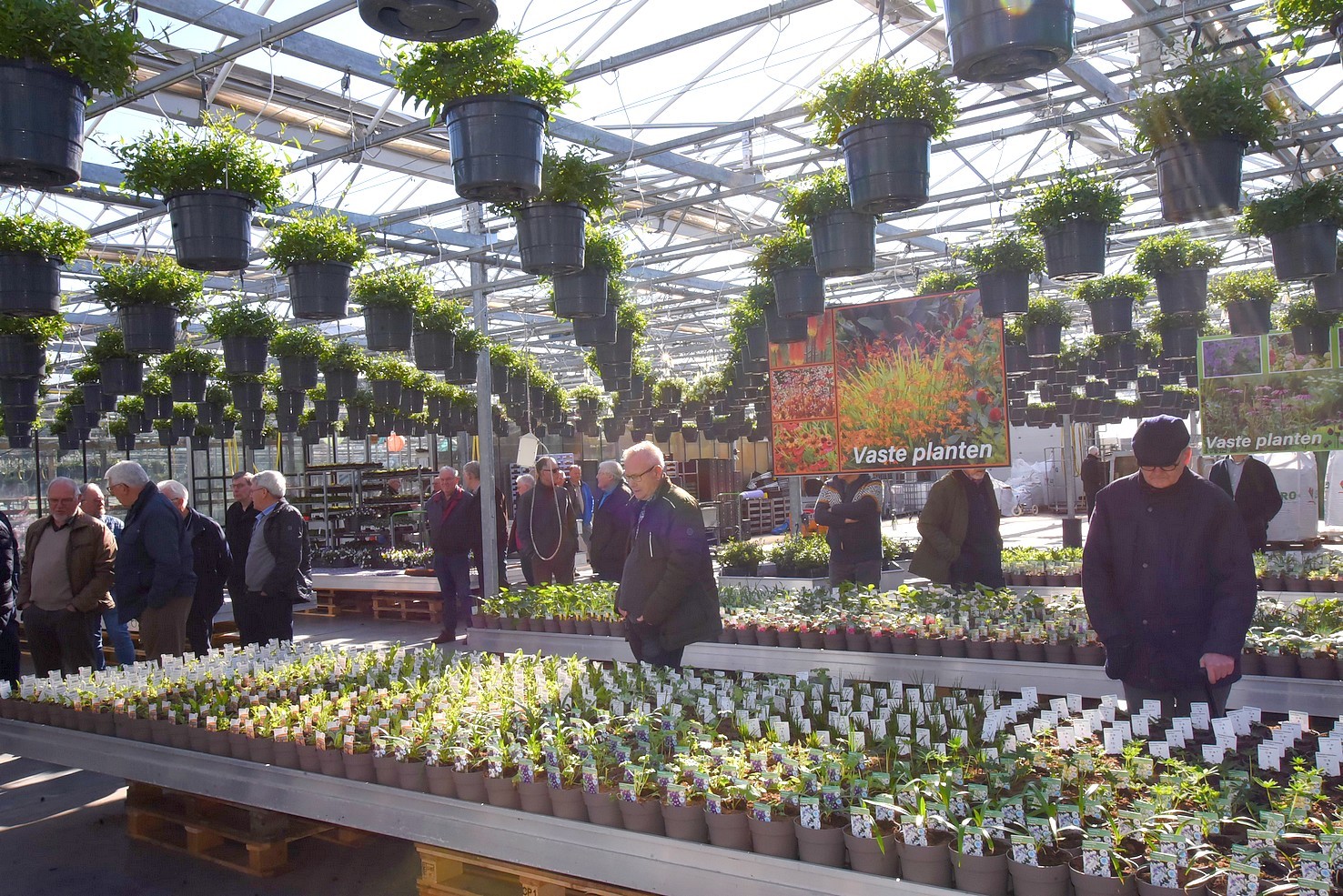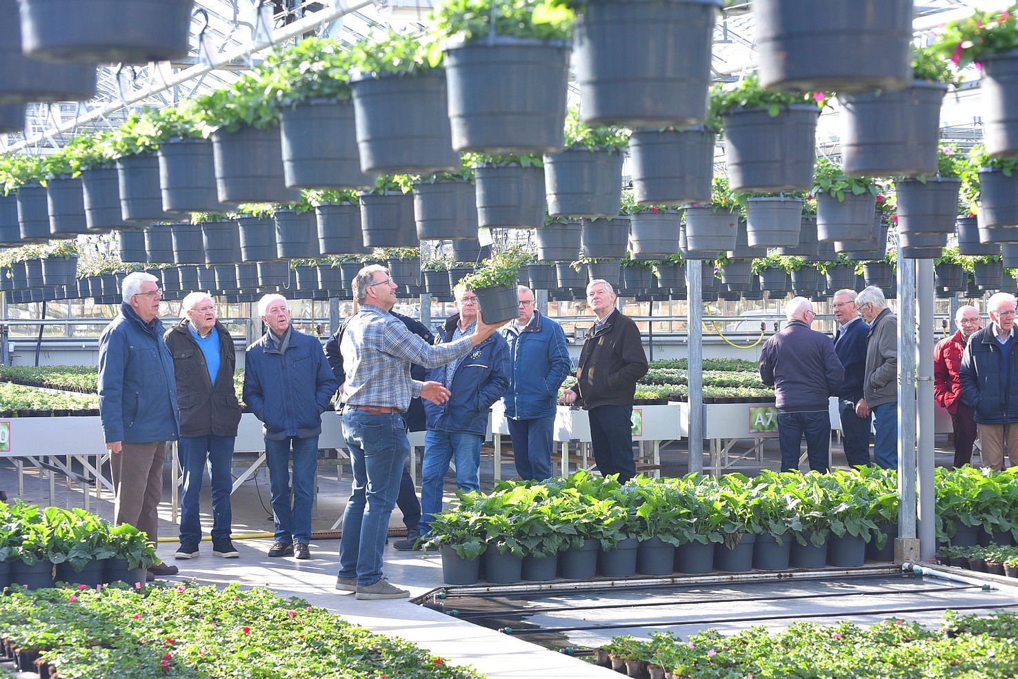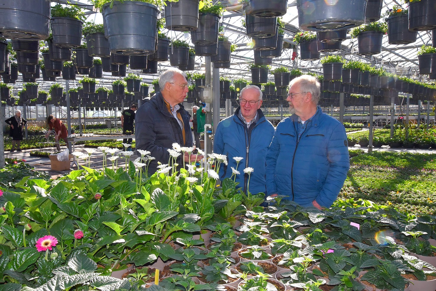 Na een uitgebreid praatje kregen we een rondleiding door de kassen. Een enorme diversiteit van zomerbloeiers, die ’s zomers dagelijks met vrachtwagens worden aangevuld.