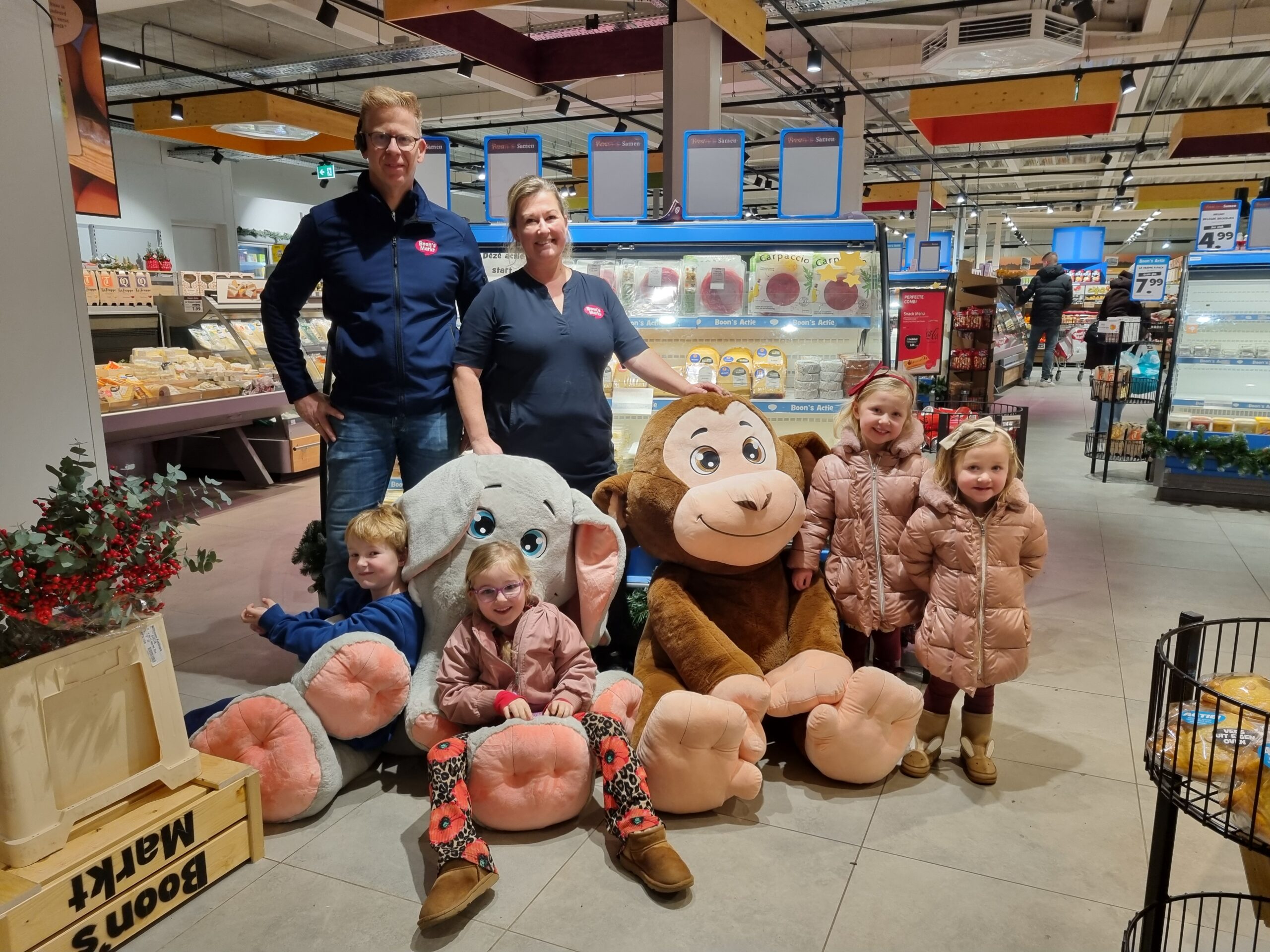 UDDEL – De afgelopen tijd kon er bij Boon’s Markt gespaard worden voor Jungleknuffels. De spaaractie is inmiddels afgelopen; tijd om de twee megaknuffels, die tijdens de spaaractie in de winkel stonden, te verloten. Vanmiddag werden de twee winnaars bekendgemaakt en zijn de knuffels overgedragen aan hun nieuwe eigenaren. Een heuse uitdaging om die flinke knuffels op de plek van bestemming te krijgen…