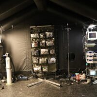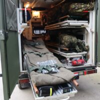 In deze loods werd een klein militair ziekenhuis neergezet waarin de eenheden slachtoffers door middel van snelle chirurgische ingrepen stabiliseren.