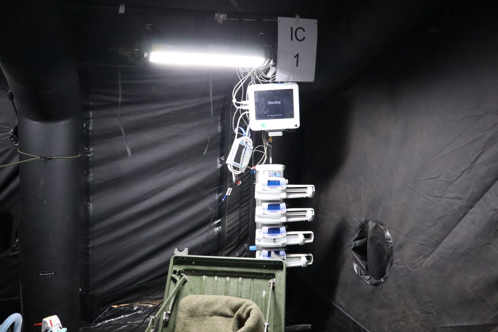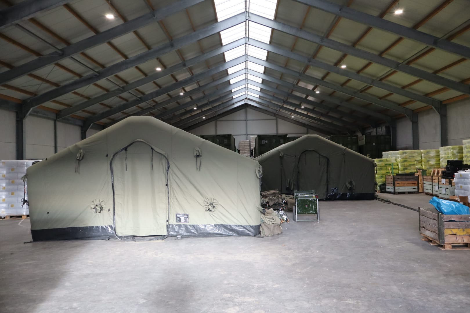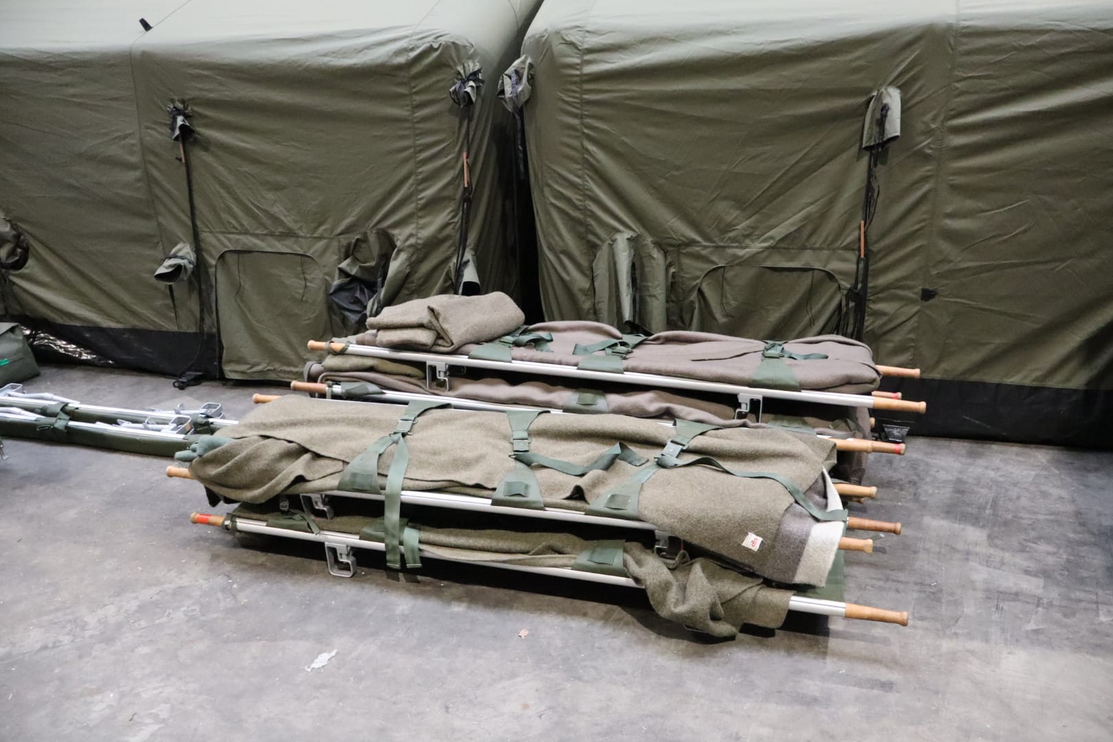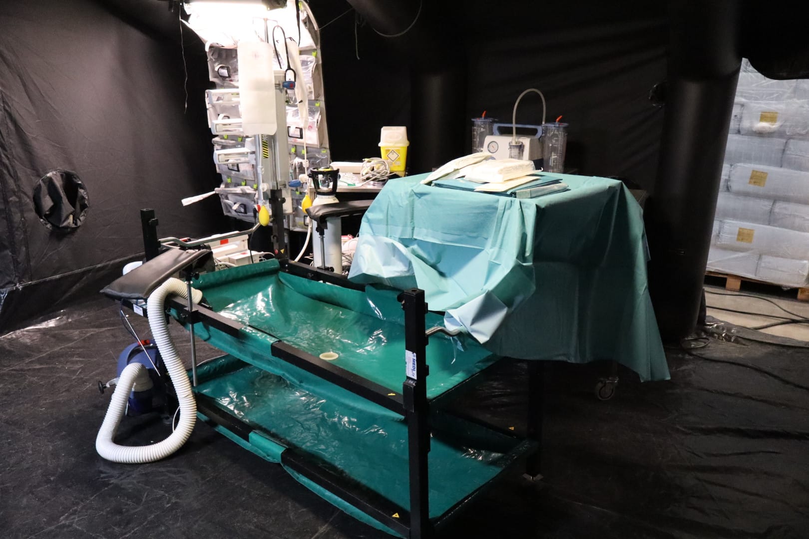 In deze loods werd een klein militair ziekenhuis neergezet waarin de eenheden slachtoffers door middel van snelle chirurgische ingrepen stabiliseren.