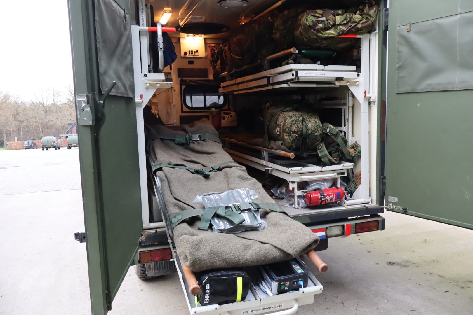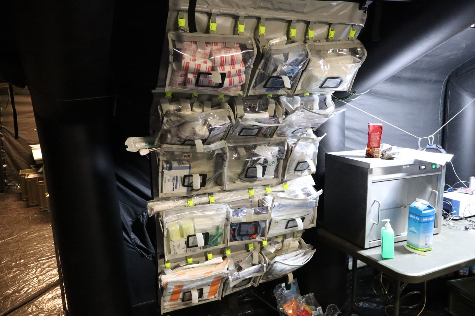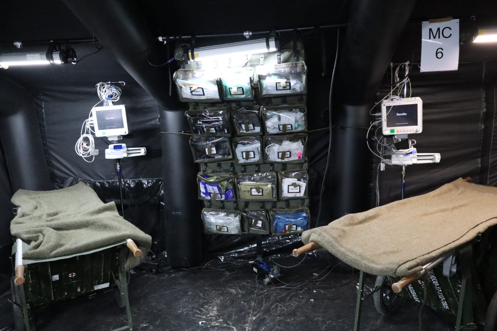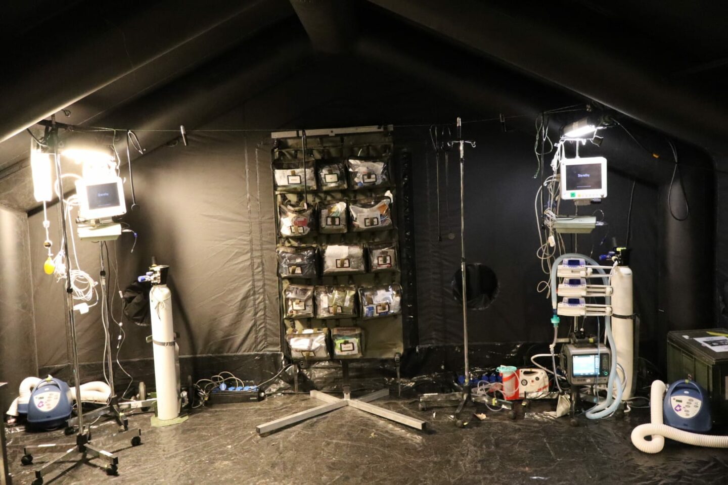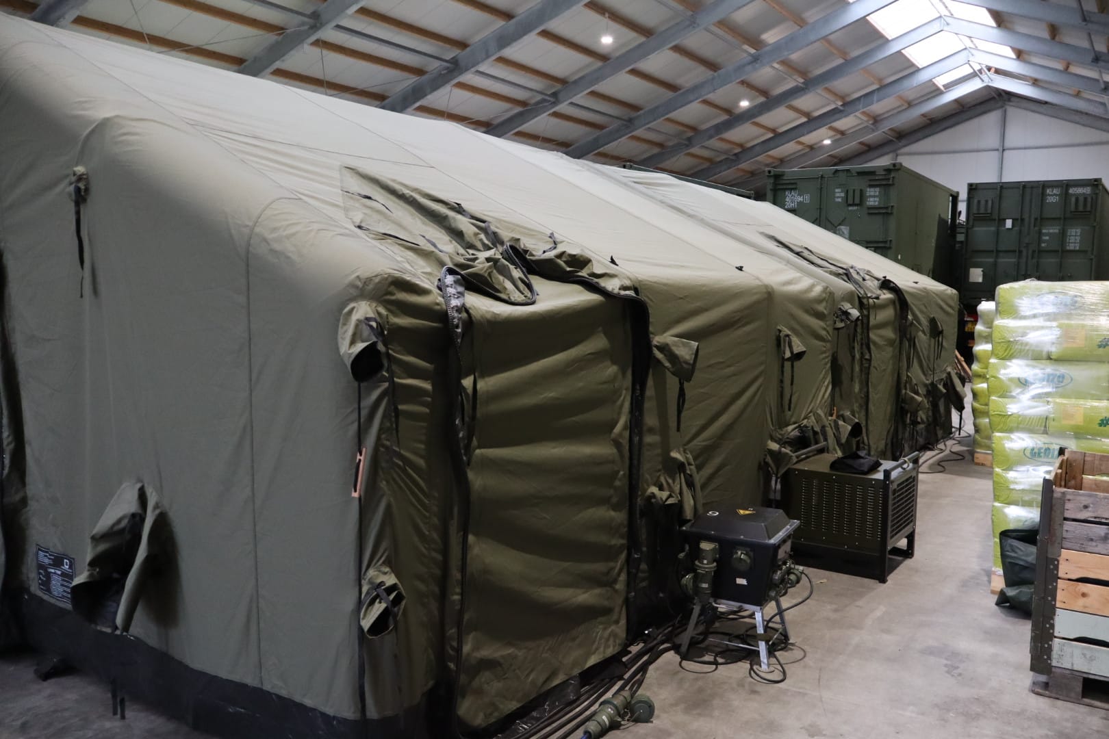 In deze loods werd een klein militair ziekenhuis neergezet waarin de eenheden slachtoffers door middel van snelle chirurgische ingrepen stabiliseren.