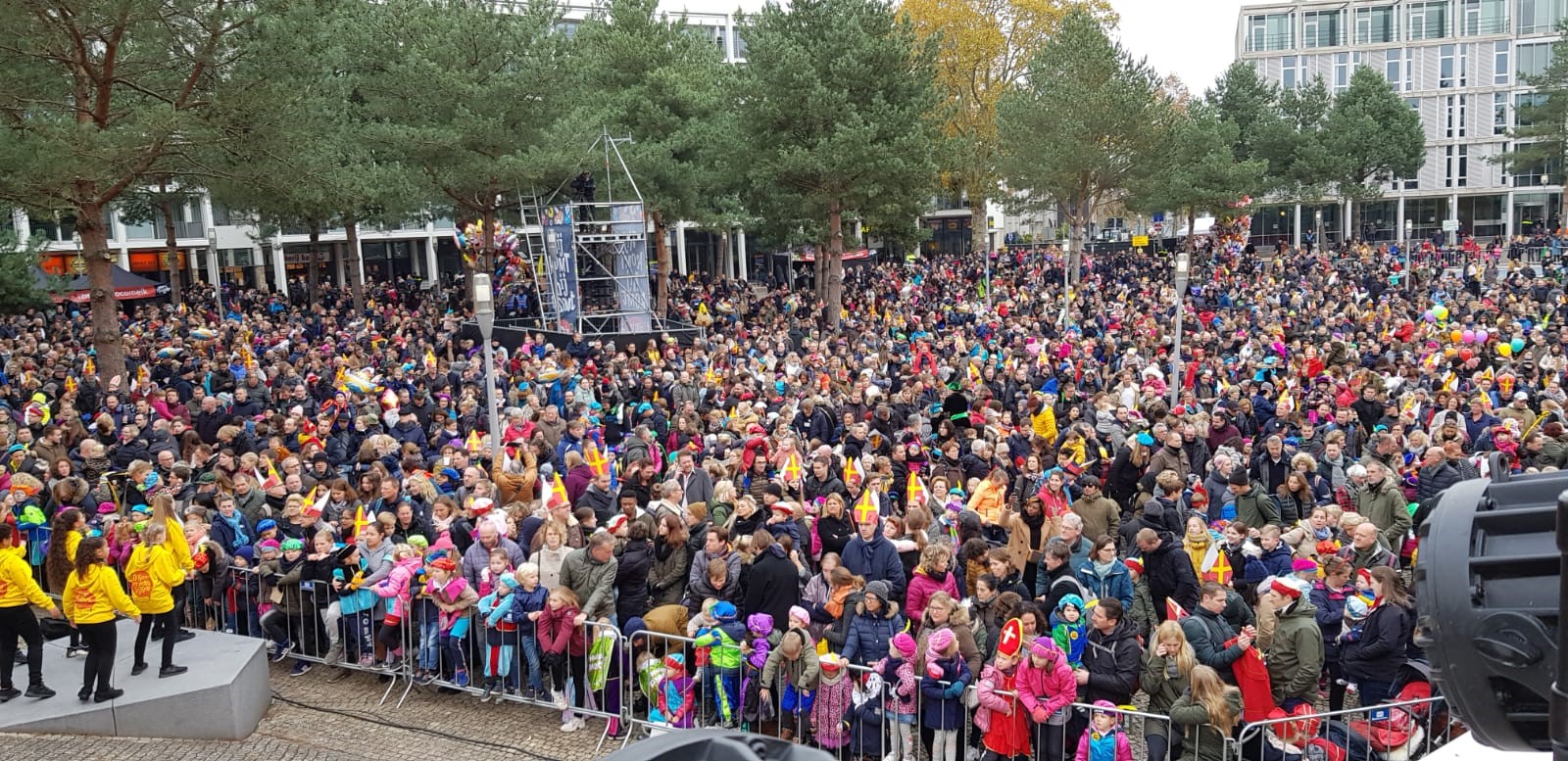 Ja en toen was het opeens afgelopen voor ons, Sinterklaas was aangekomen op het Raadhuisplein. Wij moesten verder lopen en terug naar het Stationsplein. Dat deden we samen met de andere groepen, maar dit keer met een paar gewone marsen. Even geen stoomboot en waaiende wind door de bomen.