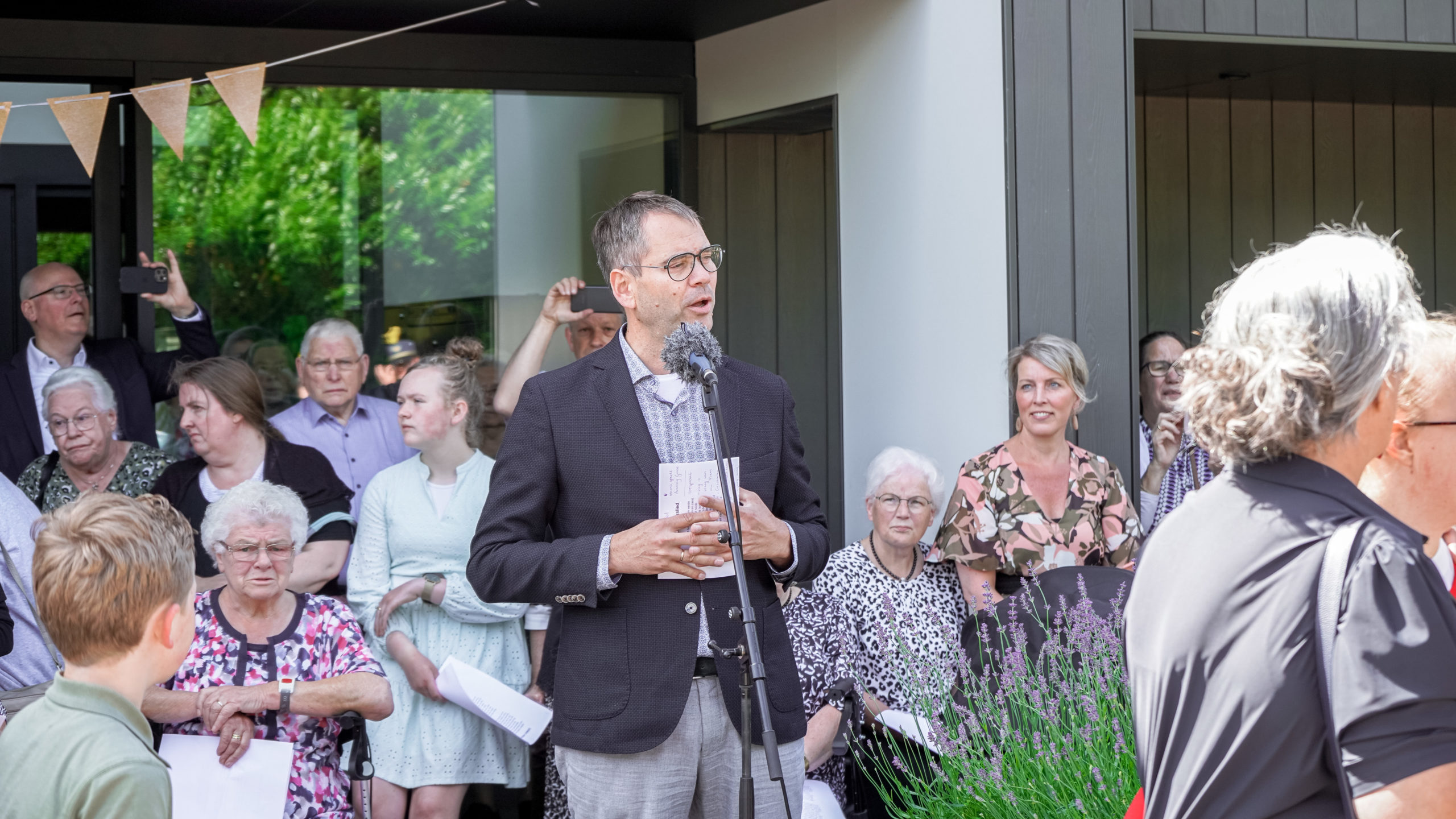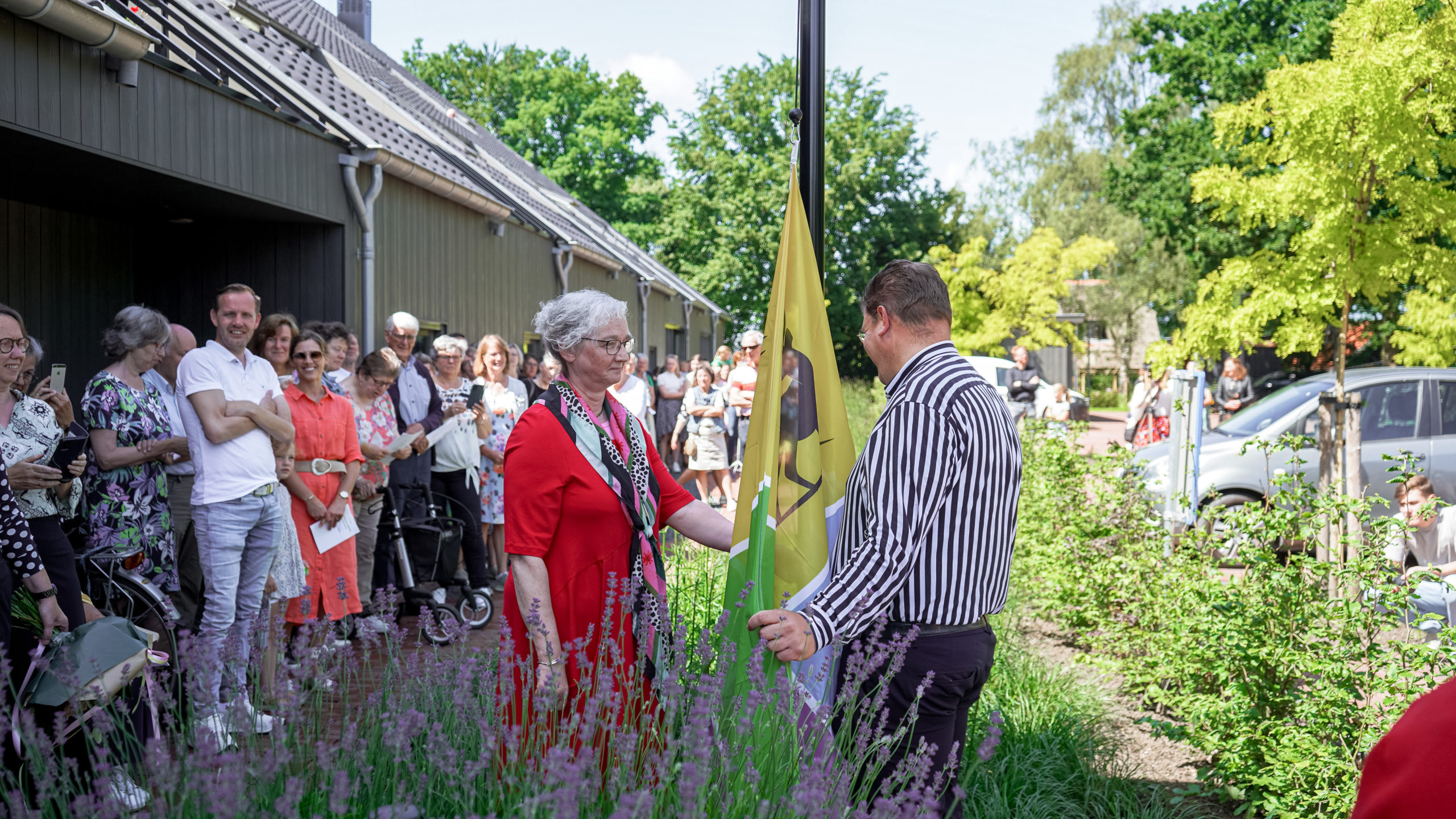 Cornelis Bosch heeft enkele woorden gesproken over het ontstaan van het pand. Daarna werd als verrassing een van de bewoners (Frieda Pronk) uitgenodigd om samen met Willem Kok namens Stichting Vrienden de vlag te hijsen. Dit was omdat ze vandaag jarig was. Waarna de muziekvereniging Juliana inzette met de muziek.