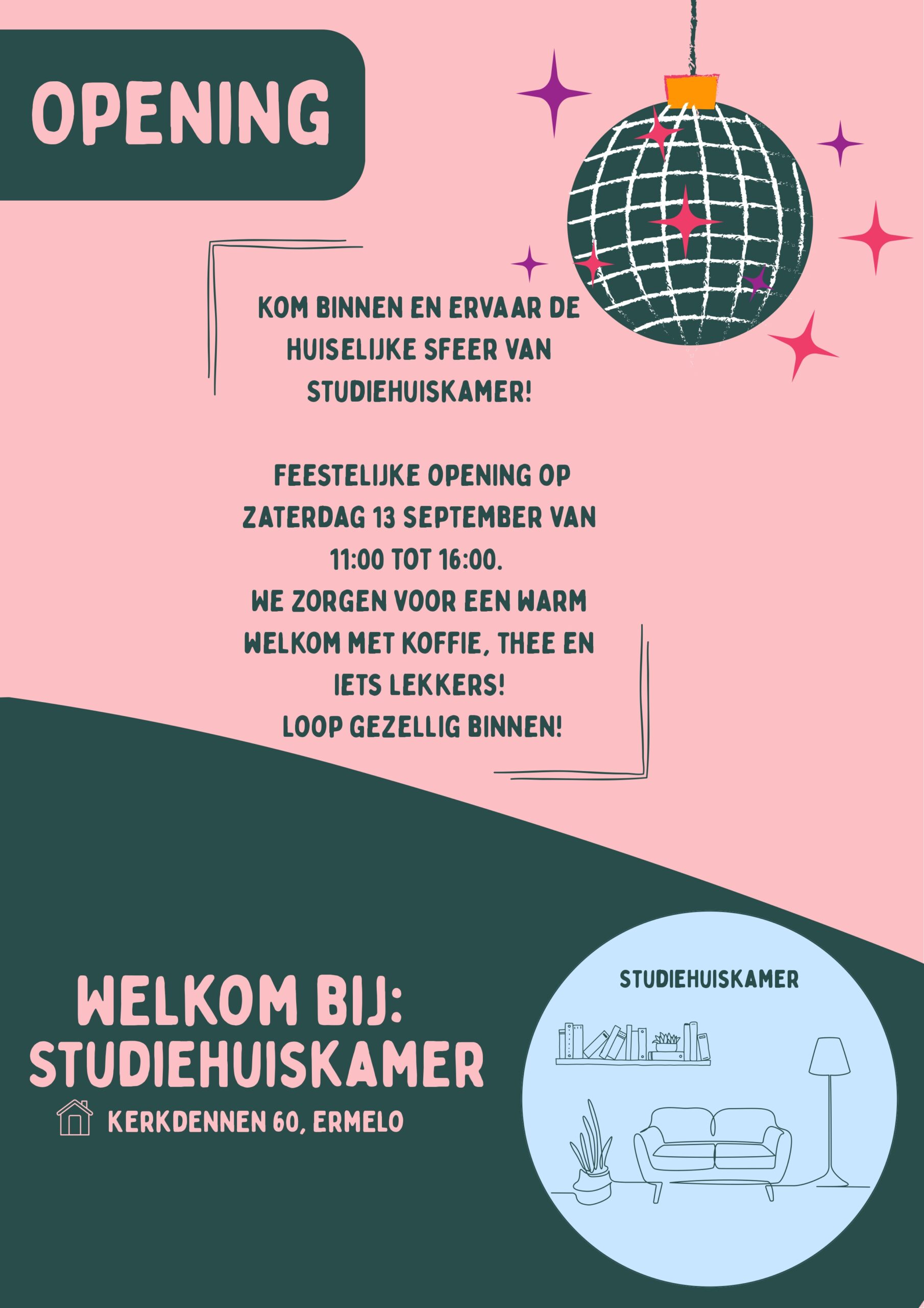 ERMELO – Op zaterdag 13 september opent de StudieHuiskamer officieel haar deuren aan de Kerkdennen 60 in Ermelo. De StudieHuiskamer biedt een huiselijke leeromgeving voor leerlingen vanaf groep 6 tot en met het voortgezet onderwijs. Jongeren krijgen er wekelijks begeleiding bij schoolwerk, plannen en motivatie, in een rustige en gestructureerde setting.