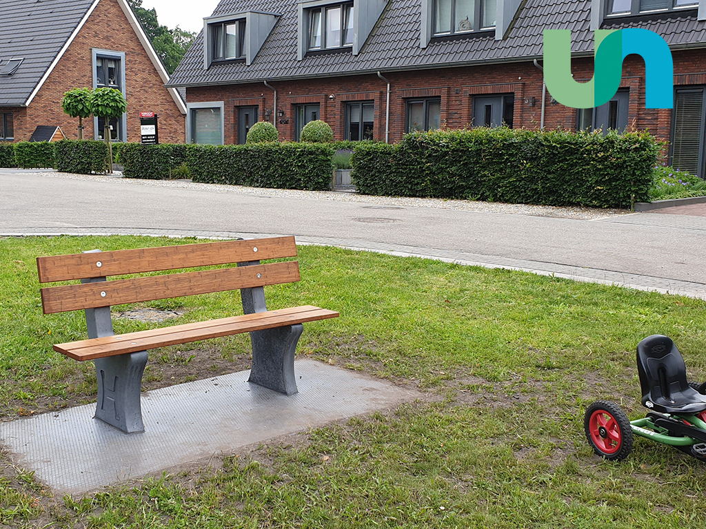 Er staan een mooi speelhuisje en een leuke glijbaan. Ook aan de ouders is gedacht: op verzoek is er een bankje geplaatst. Veel speelplezier kinderen (en ouders)!