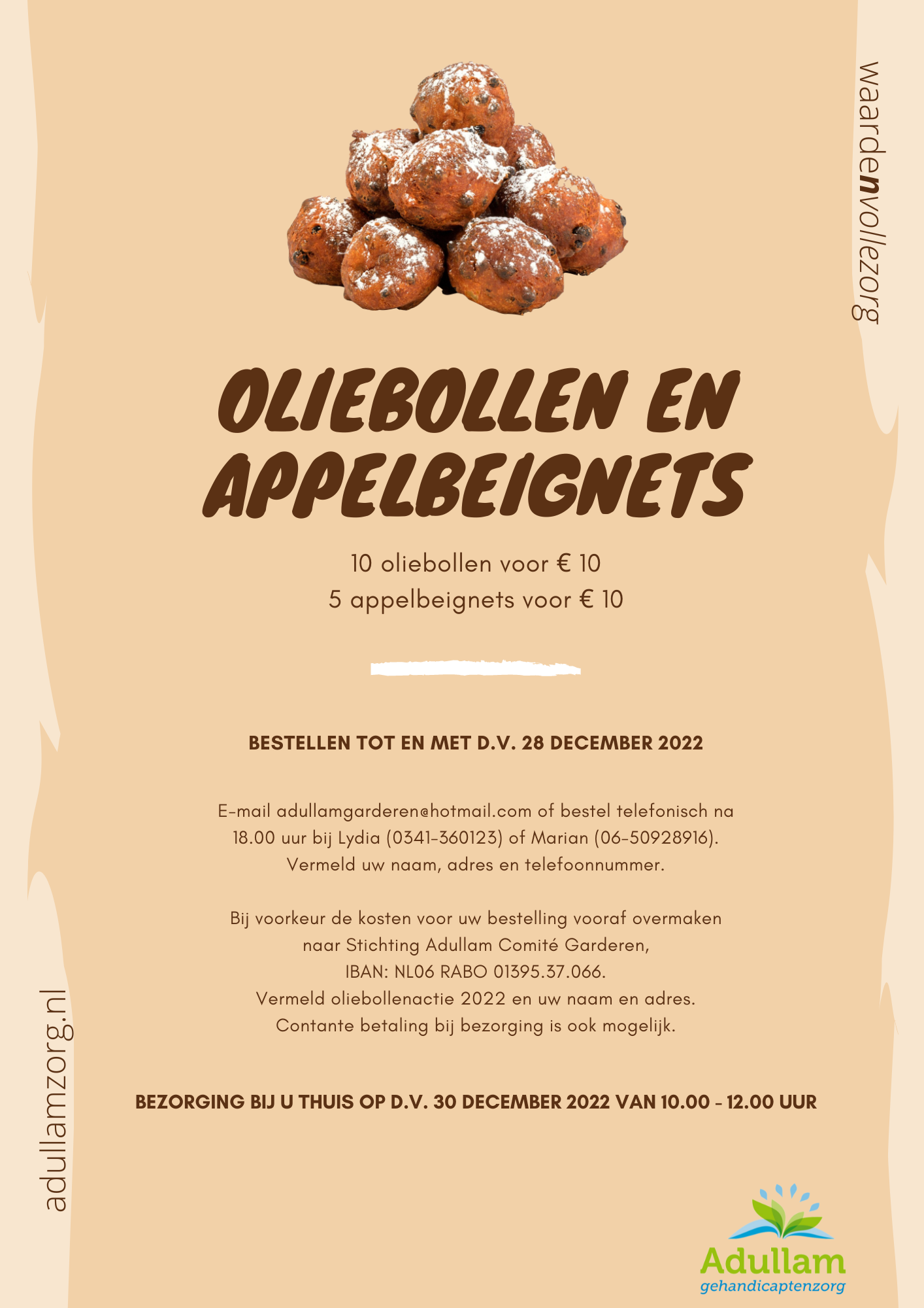 UDDEL – Er kunnen weer oliebollen en appelflappen besteld worden voor Adullam.