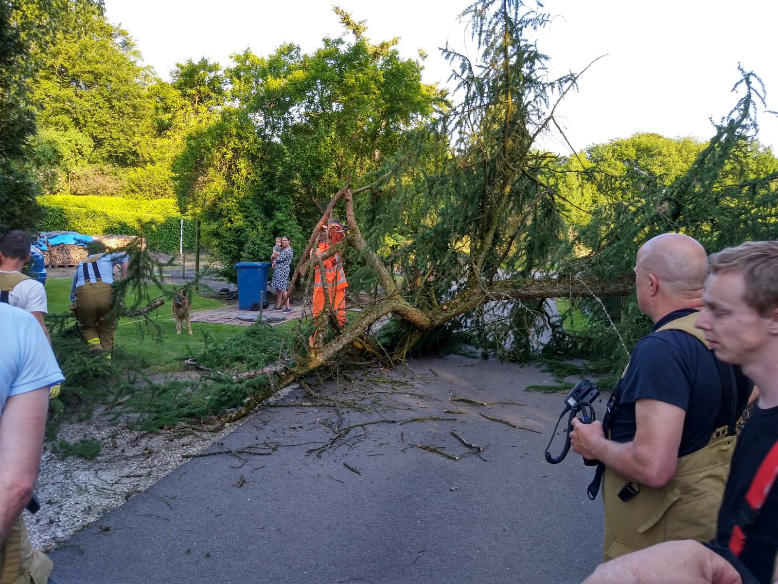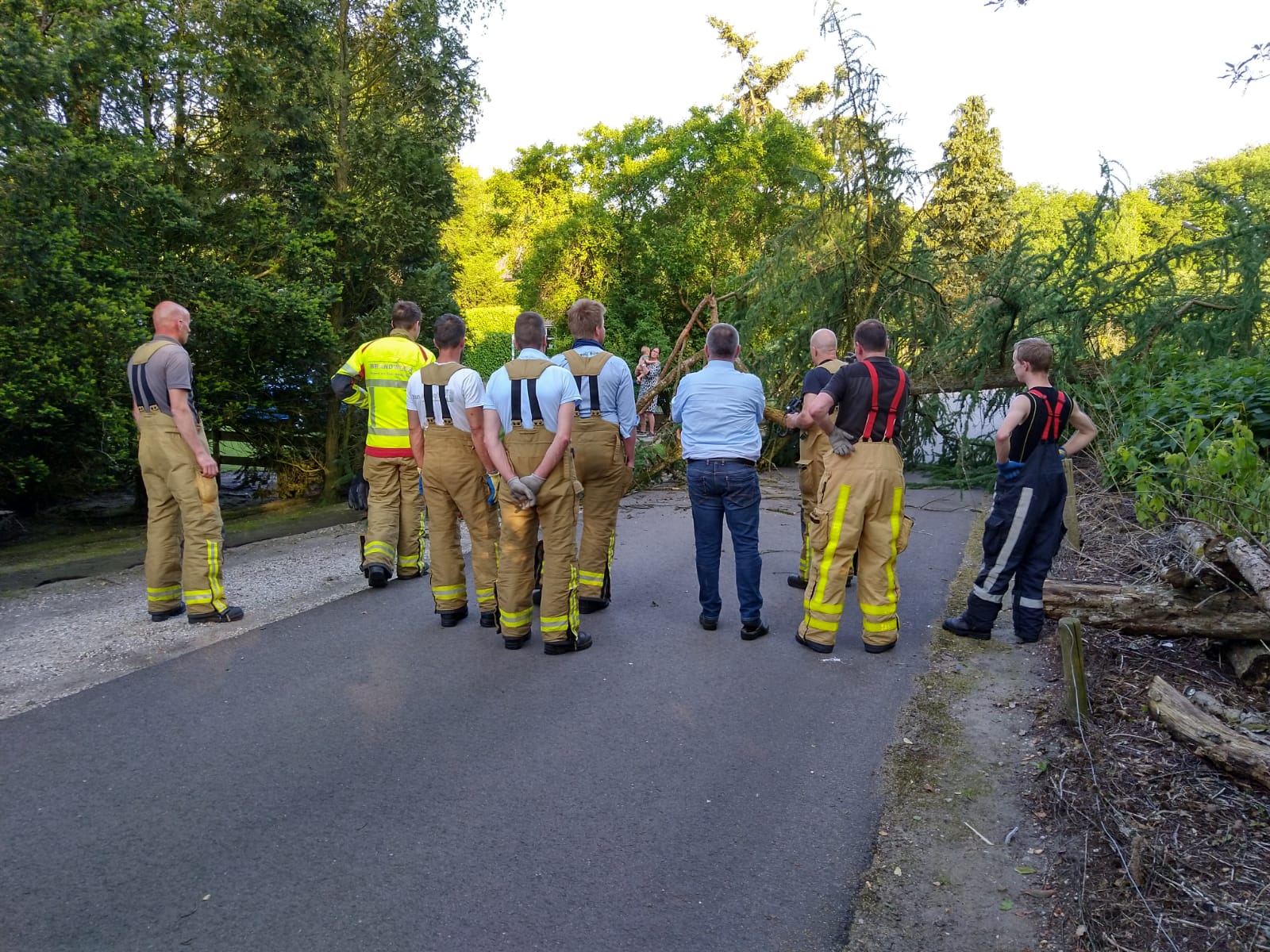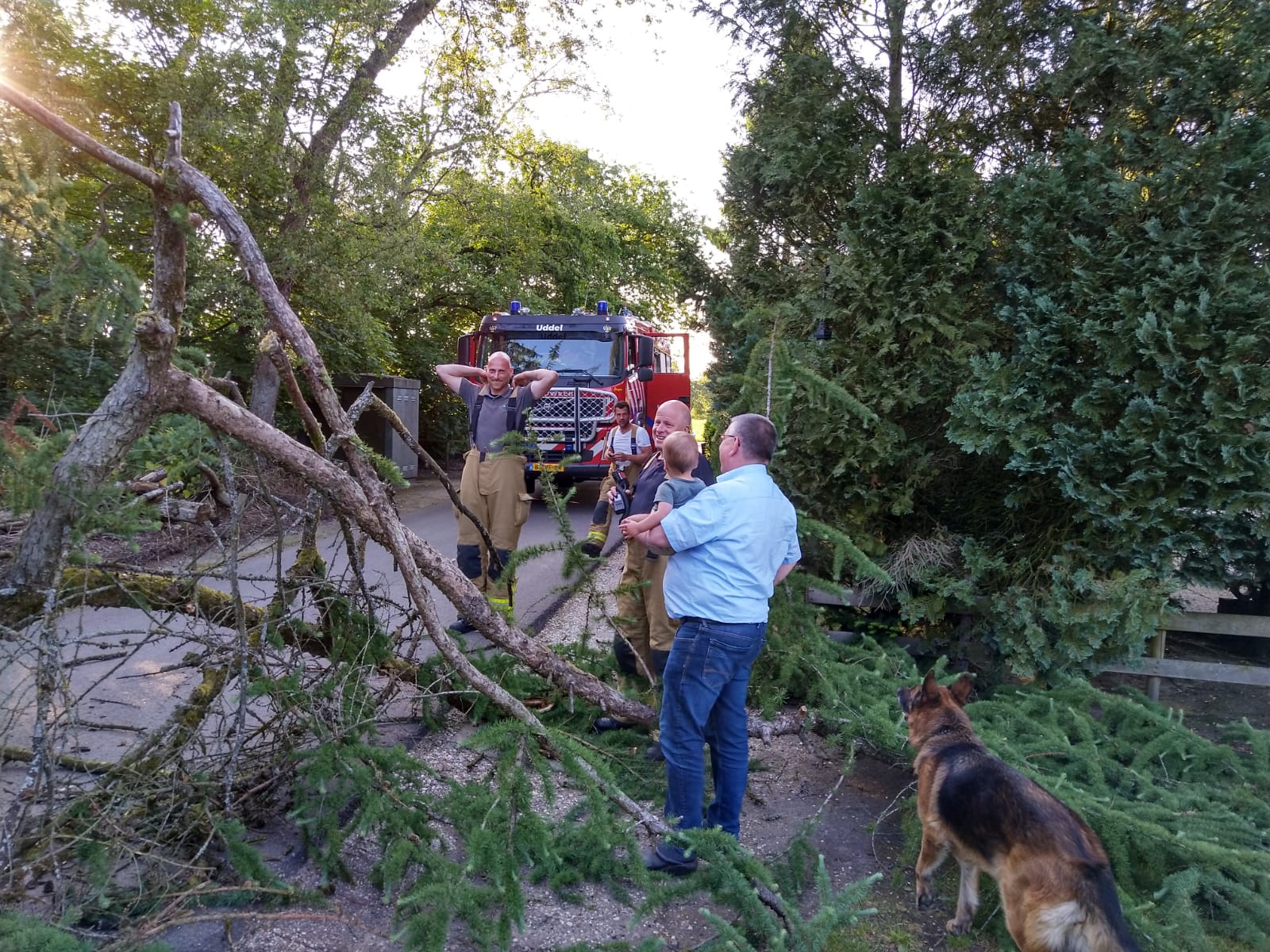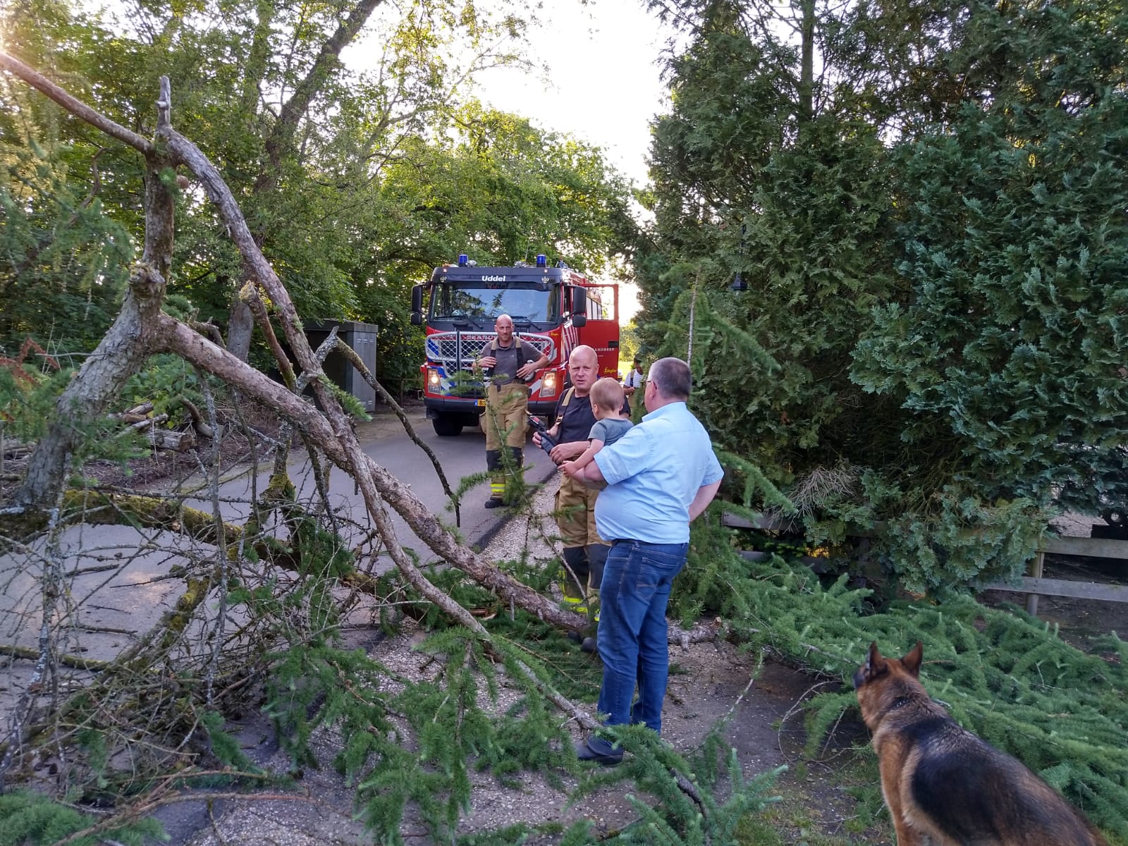 UDDEL – De brandweer is woensdagavond rond tien voor acht uitgerukt voor een omgevallen boom aan de Aardhuisweg. De boom blokkeerde de weg richting enkele huizen.