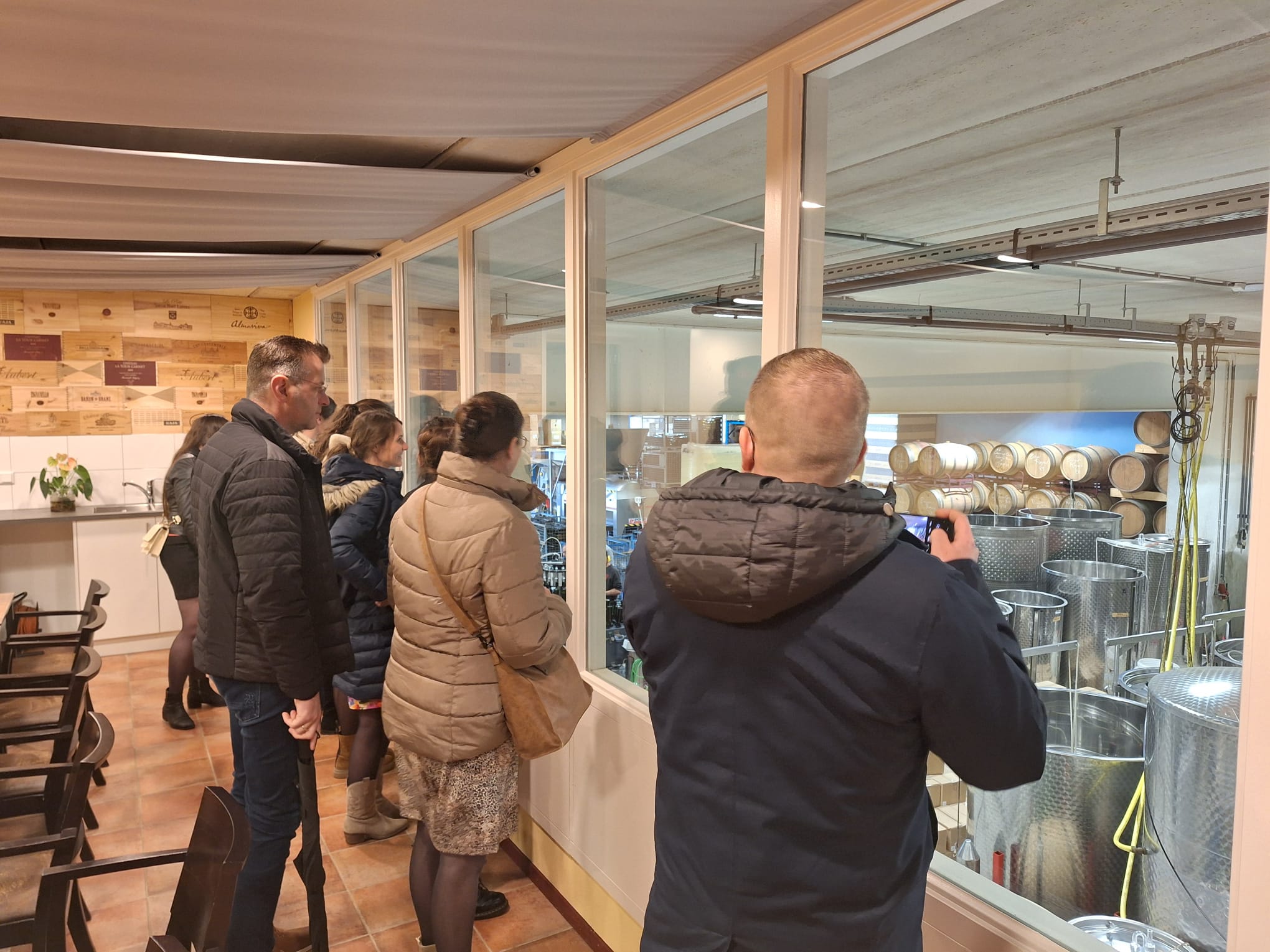 Dit jaar ging de reis naar Nederlands wijnbouwcentrum in het Gelderse Groesbeek. Na een hartelijk ontvangst met koffie en gebak werd de groep ondernemers opgesplitst in twee aparte groepen. Er werd een interessante en leerzame rondleiding gegeven, waarin het hoe en waarom van de Nederlandse wijnbouw goed aan bod kwam. Een van de redenen dat het gebied waarin Groesbeek ligt geschikt is voor wijnbouw is de Loss-grond en de hoogtevariatie in het landschap. Ook de wijnkelders werden bezocht waar net het bottelen van de wijn in volle gang was.