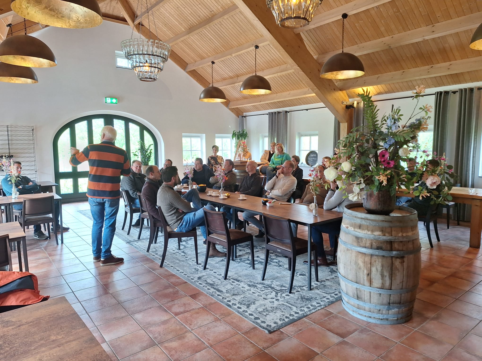 Na de rondleiding was het tijd voor een wijnproeverij en werden diverse Nederlandse wijnen geproefd (uiteraard in kleine slokjes). Aansluitend een heerlijke lunch.