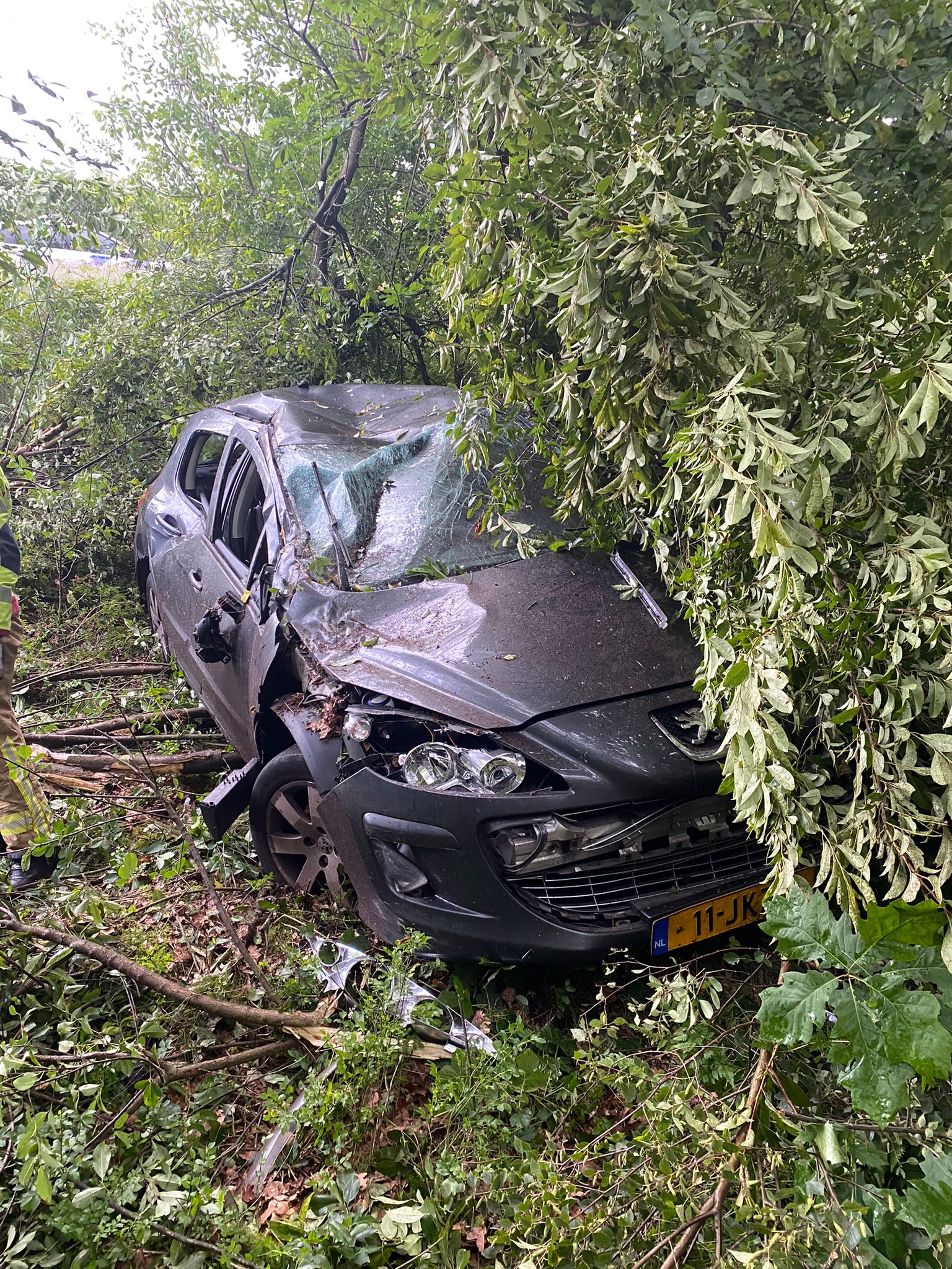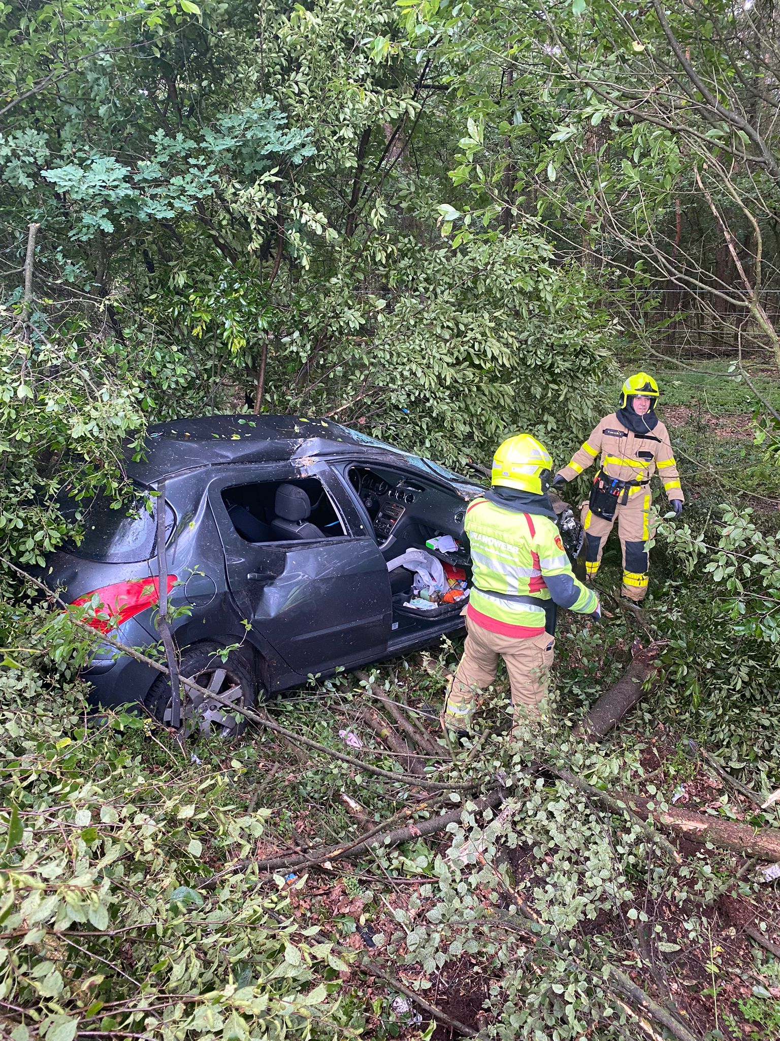 UDDEL- Zondagochtend rond 7 uur belandde een auto tegen de vangrail op de A1 en vervolgens in de bosjes. Brandweer Uddel werd hiervoor gealarmeerd. De auto raakte zwaar beschadigd bij het ongeval. De bestuurder is nagekeken door het ambulance personeel.