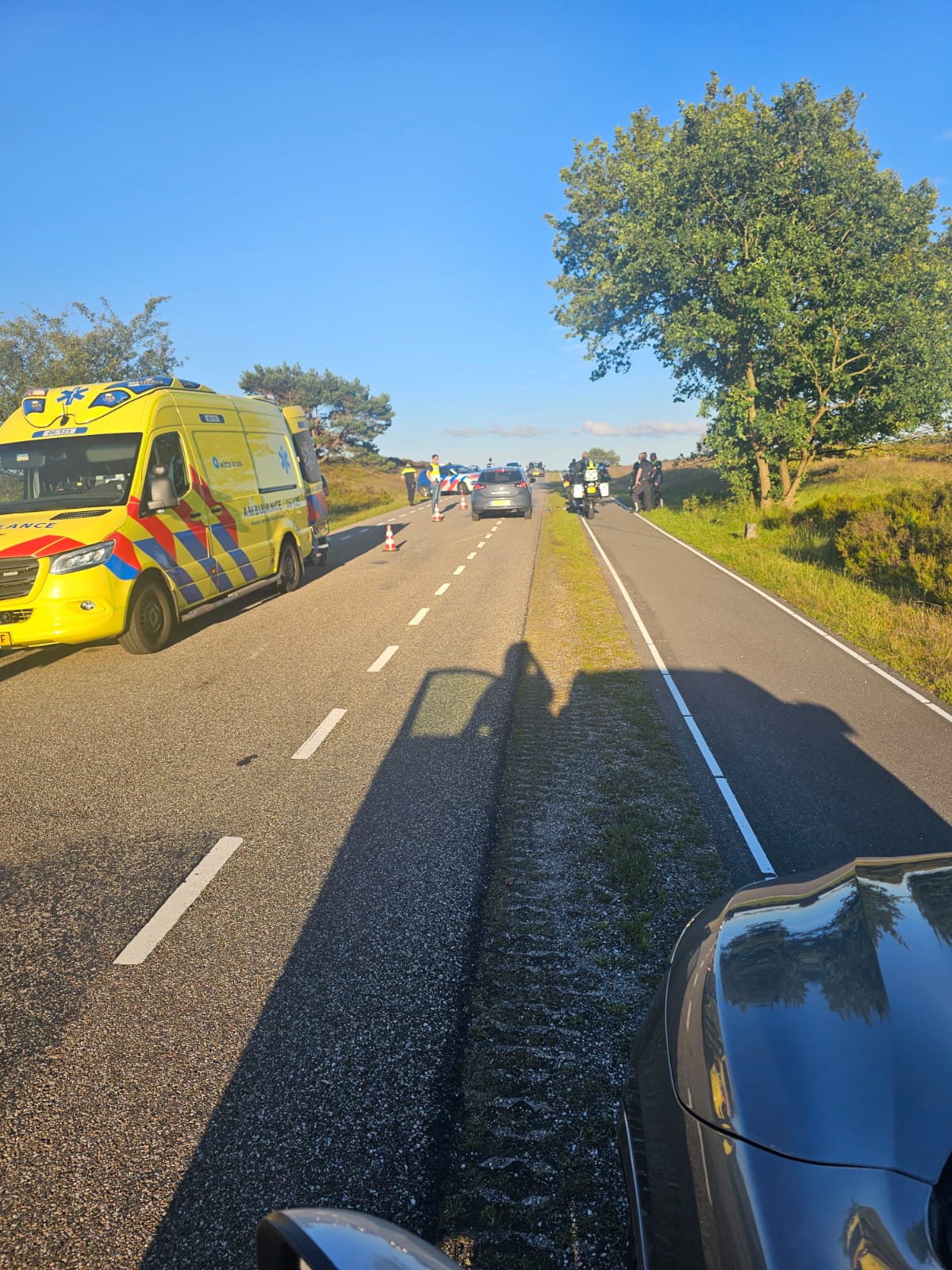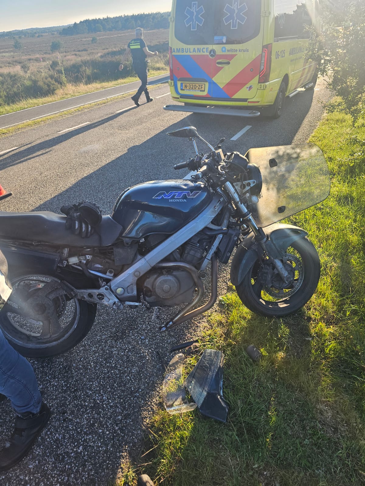 Omstanders konden Eerste Hulp verlenen. De ambulance heeft de motorrijder nagekeken en meegenomen naar het ziekenhuis.