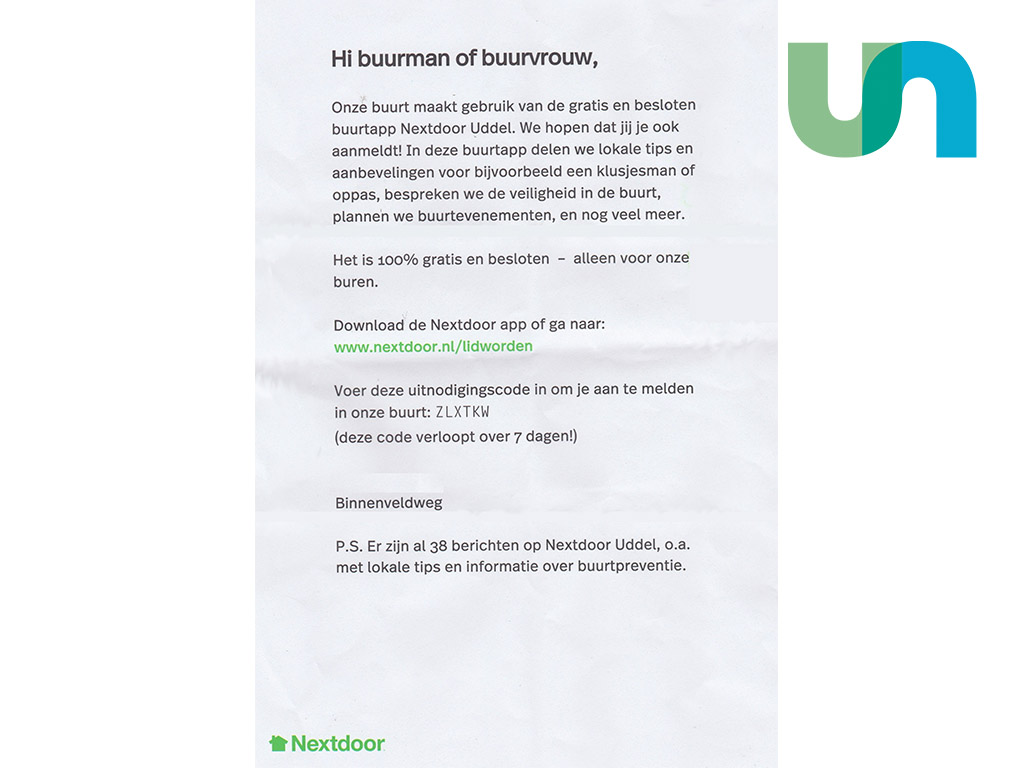 UDDEL – Op meerdere plaatsen in Nederland zijn de laatste dagen per post uitnodigingen verspreid van de buurtapp Nextdoor. Ook in Uddel hebben meerdere bewoners deze brief ontvangen.