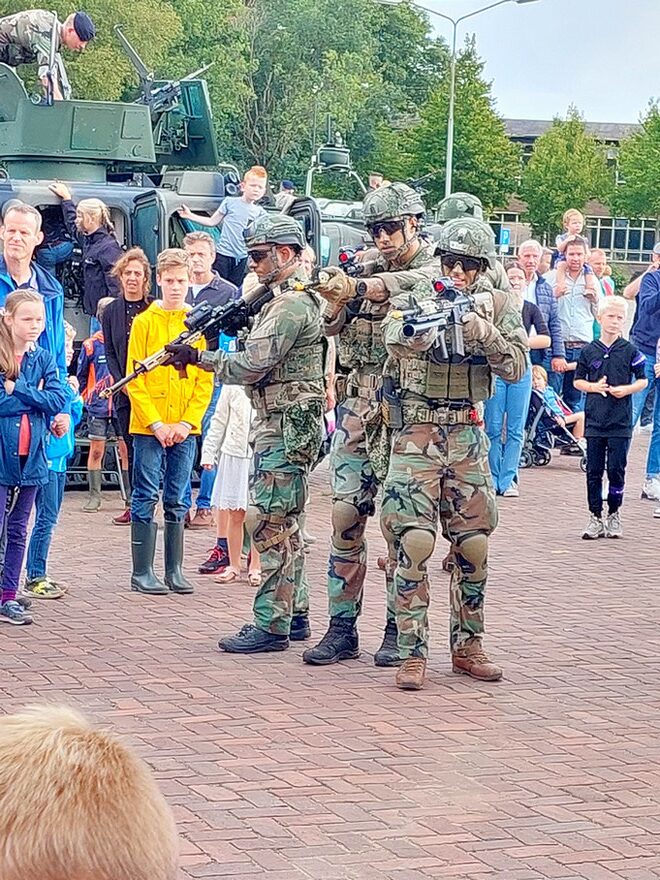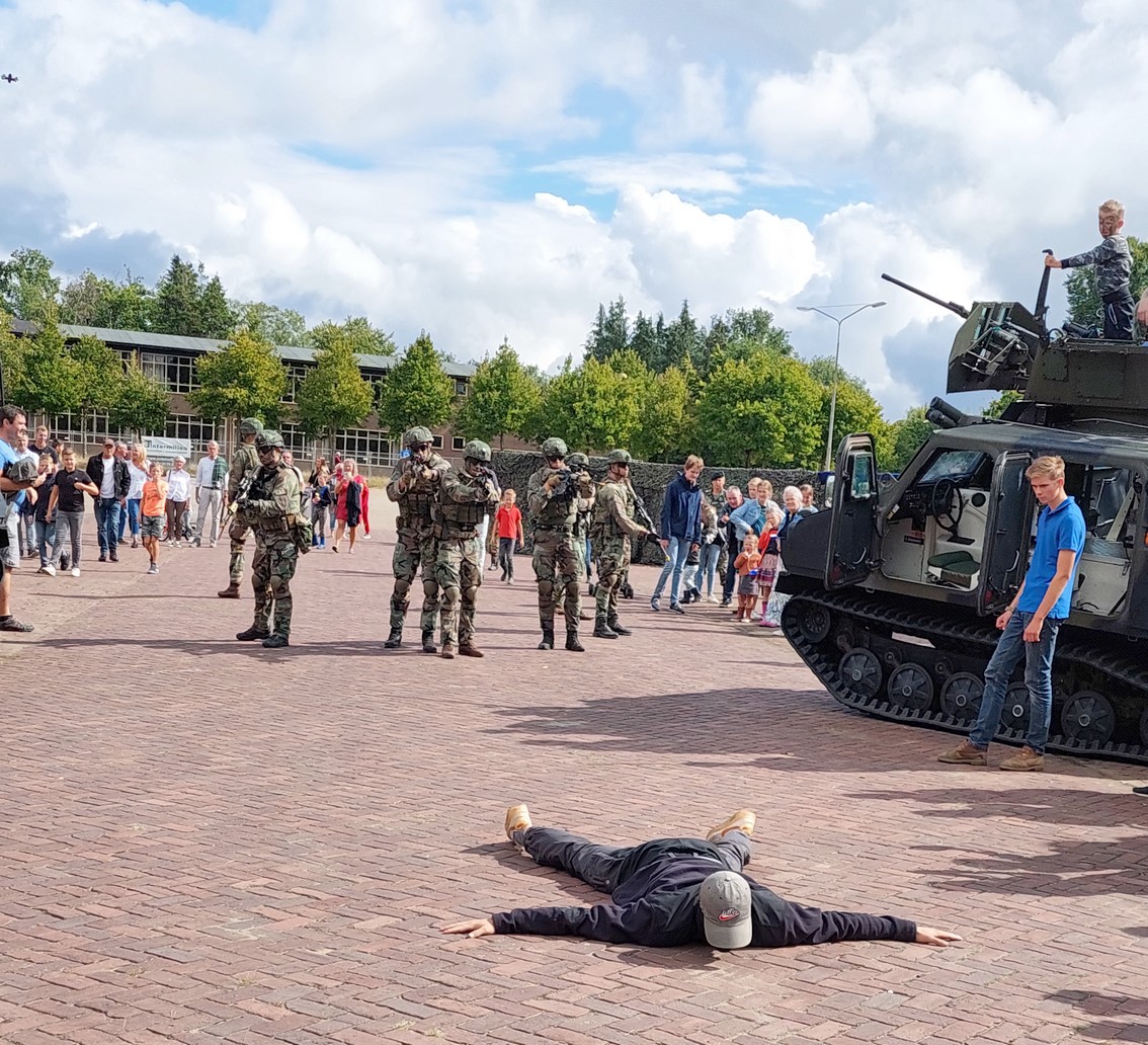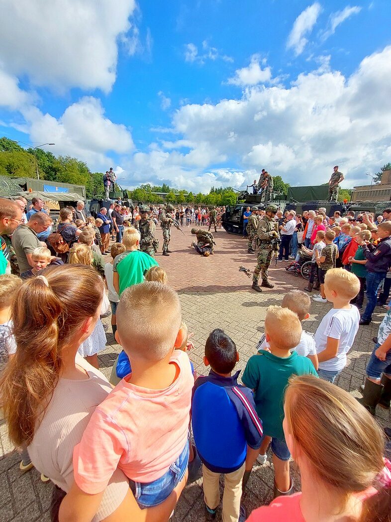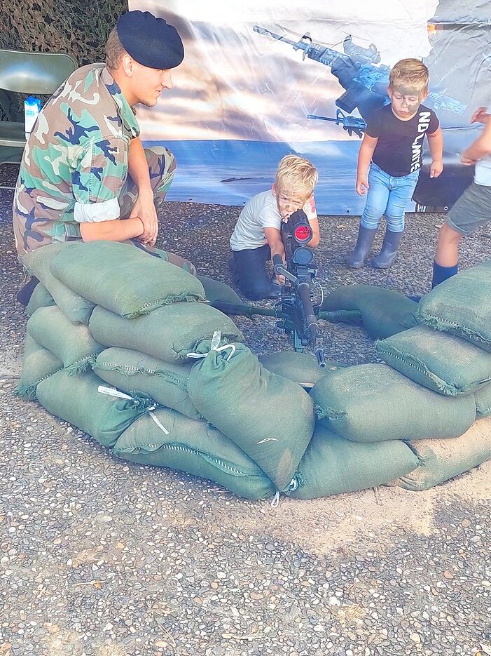 Het was een prachtige dag voor jong en oud en er waren volop activiteiten voor de jeugd en die vonden dat natuurlijk geweldig. Een rondje rijden in een rupsvoertuig, waar ook ouderen zich die kans niet lieten ontnemen. De klimwand, de hindernisbaan, achter geschut mogen plaatsnemen, in de rubberen boot zitten, het was allemaal even spannend.