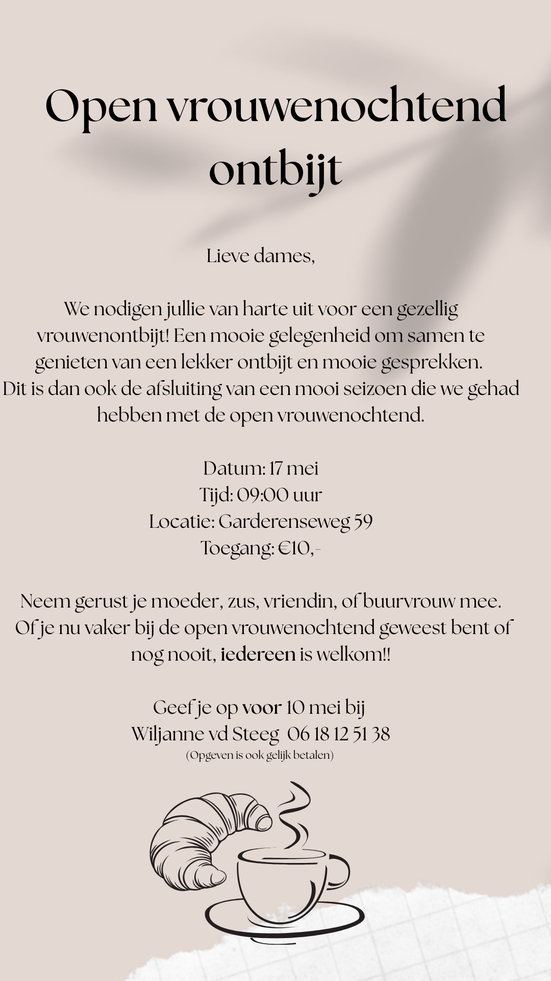 UDDEL – D.V. 17 mei is er weer een open vrouwenochtend. Alle informatie over deze ochtend kunt u vinden in bovenstaande flyer.