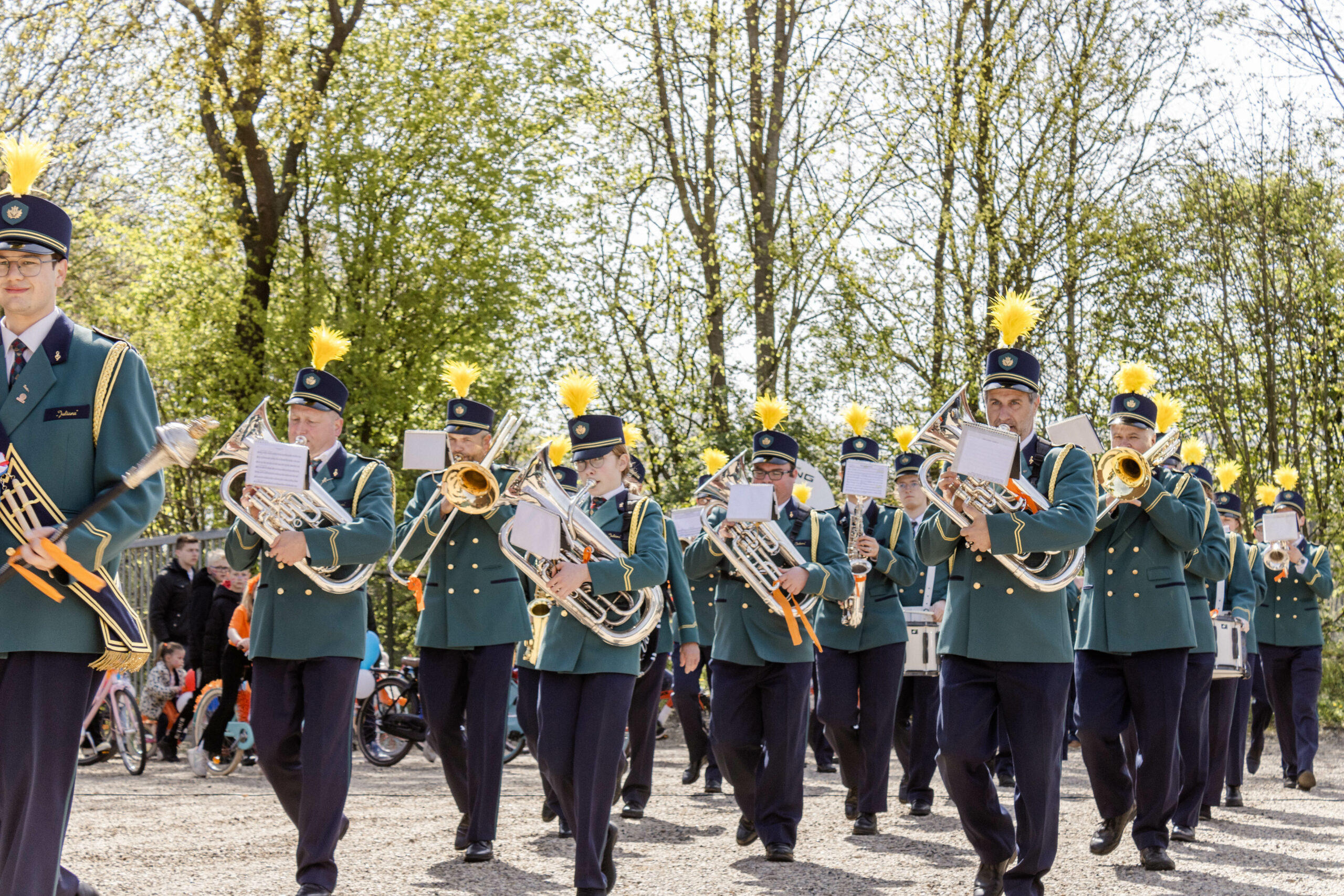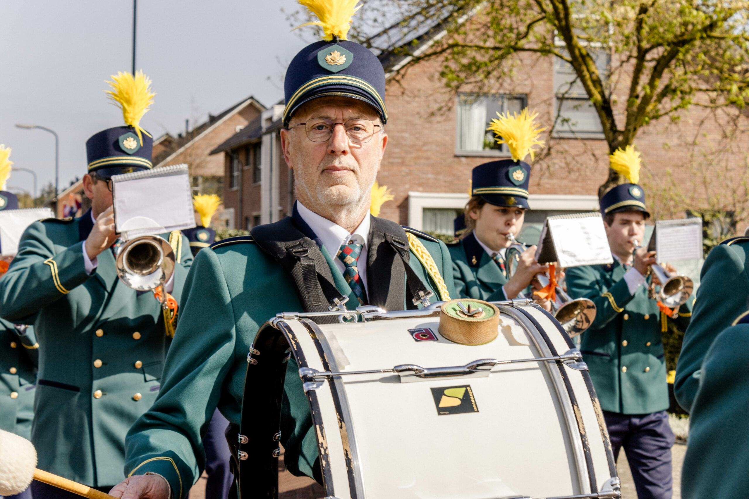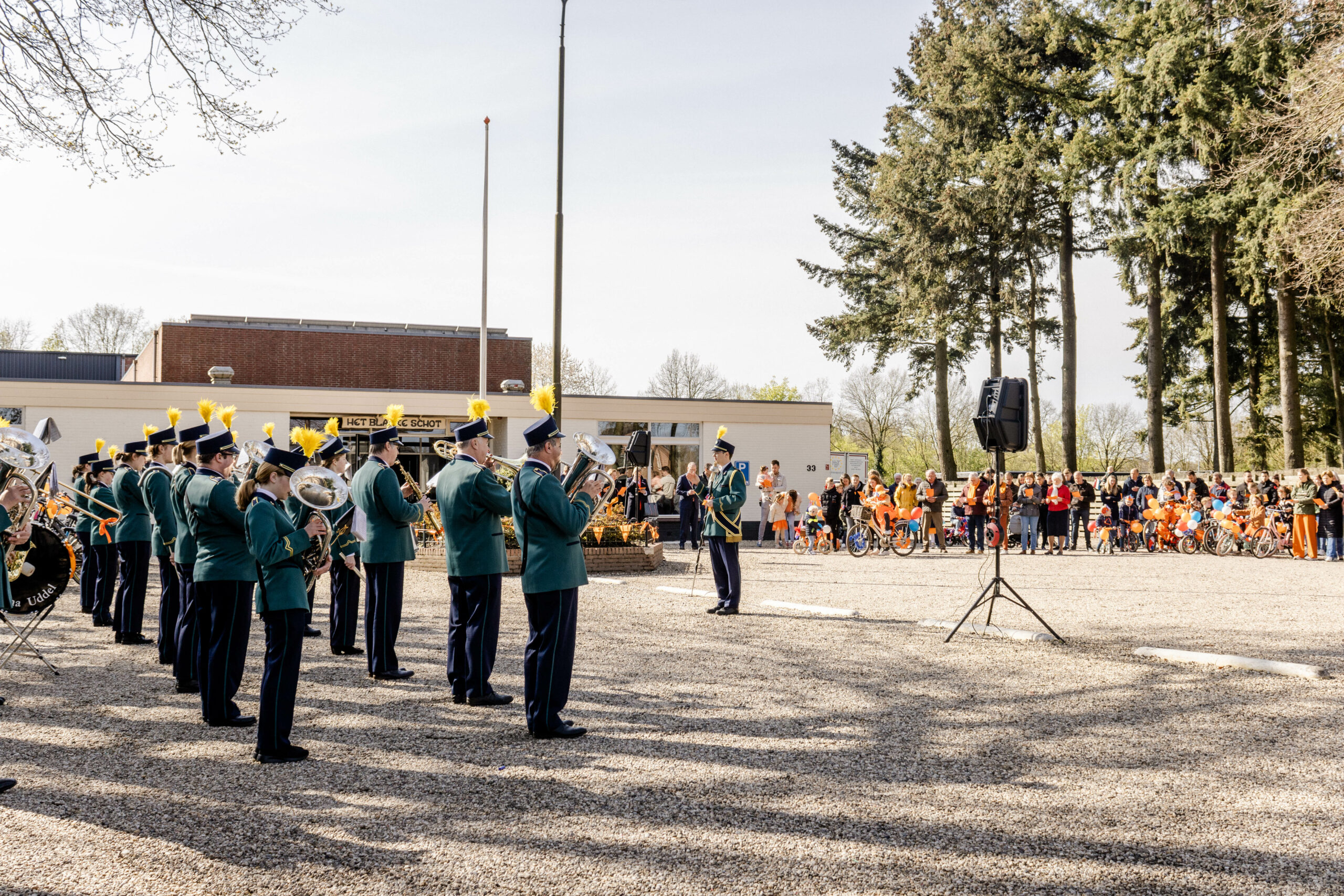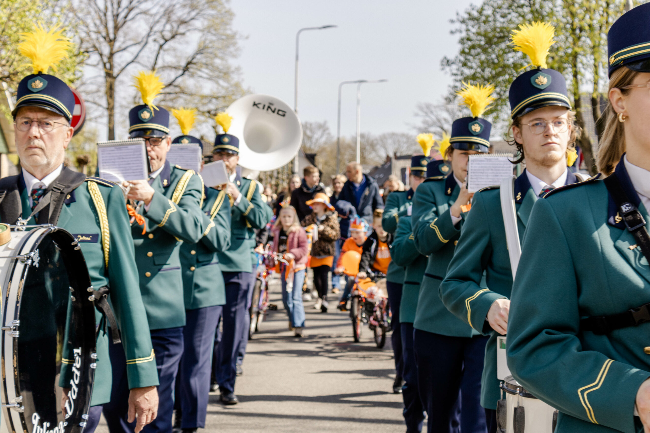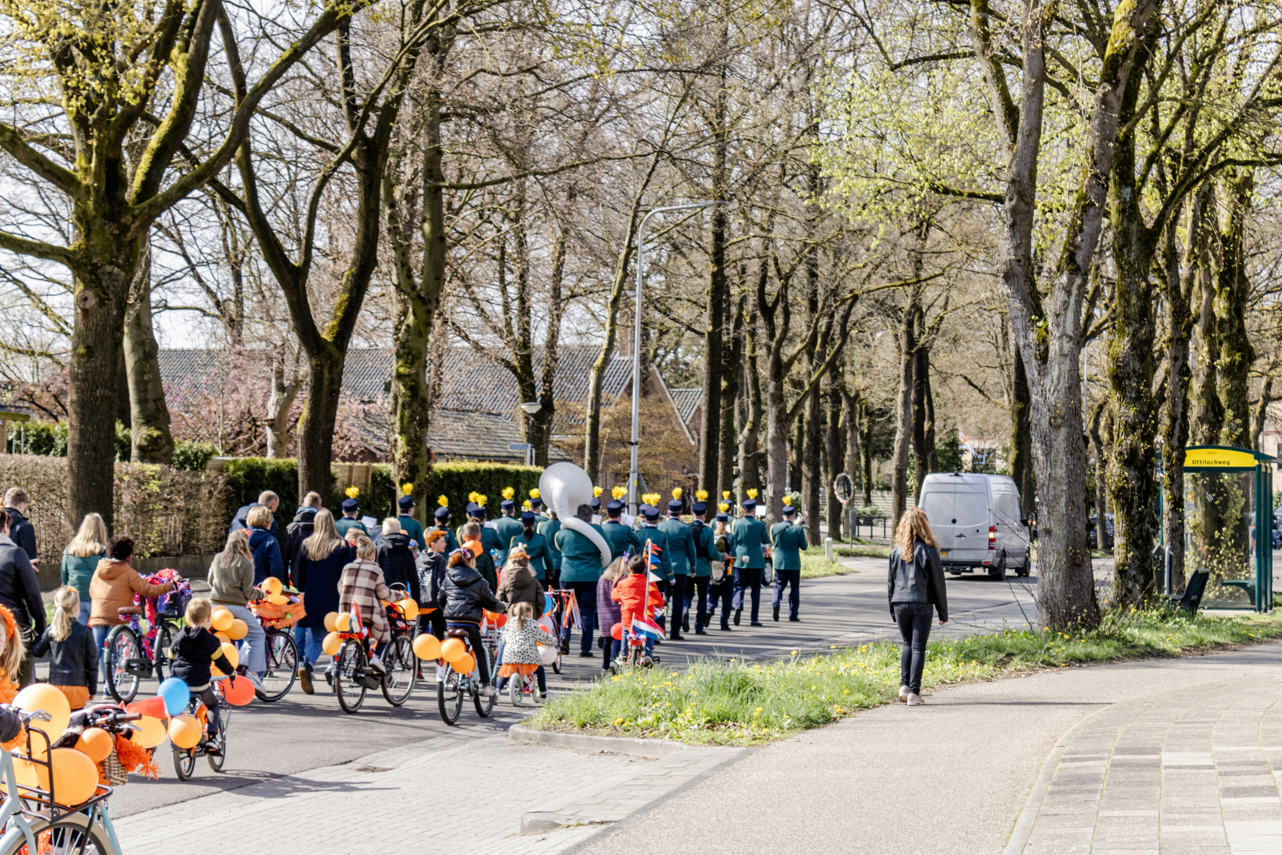 UDDEL – Koningsdag in Uddel is traditiegetrouw begonnen met de aubade. Daarnaast was er een rondgang door het dorp met muziekvereniging Juliana en daarachter grote stoet met kinderen met hun versierde fiets.
