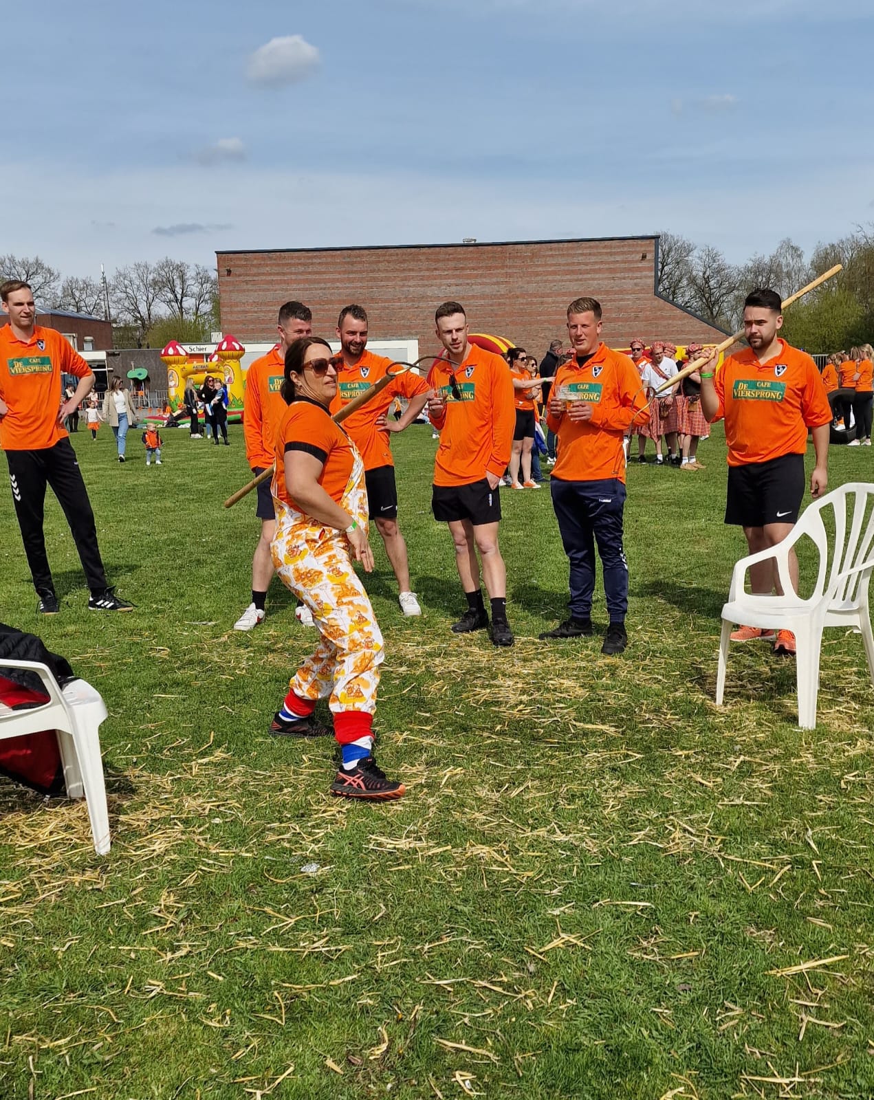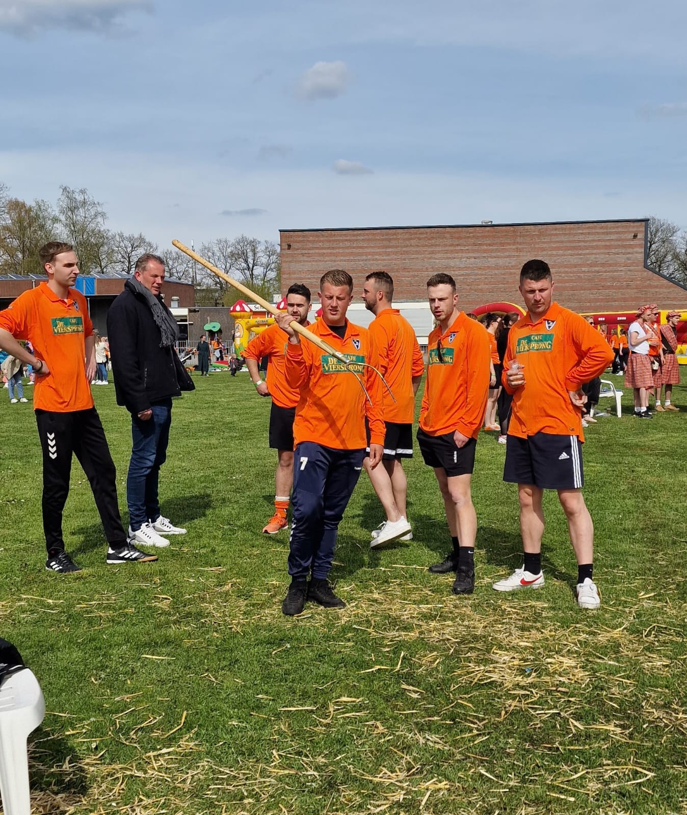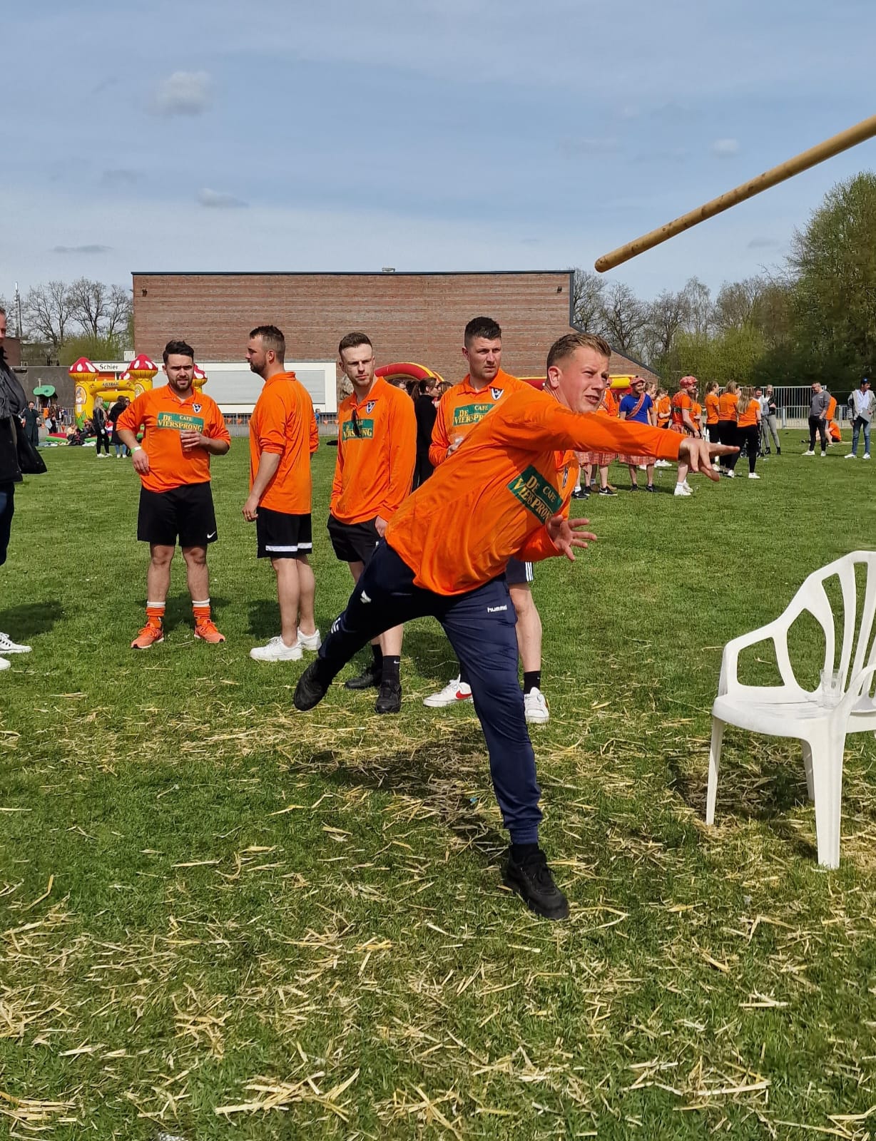 Om 14:00 uur werd er gestart met de spelen. Elk team streed fanatiek om de punten met onder andere de onderdelen ringsteken, boomstam werpen, gavel werpen en touw trekken. Bij het touw trekken werd er zo hard gestreden dat zelfs het touw het begaf.
