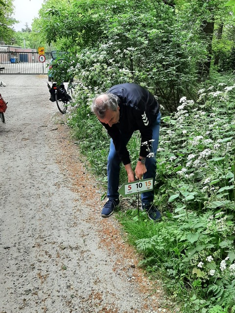We hebben dertien jaar prachtige houten pijlen met 5, 10, 15 km erop. Jullie zullen ze vast nog wel herinneren. Van al deze pijlen hebben we afscheid genomen, sommigen werden slecht en konden we niet meer goed gebruiken. Vandaar de prachtige nieuwe pijlen. Firma De Bruin Process Equipment en G2energie hebben ze voor ons gemaakt en gesponsord. Enorm bedankt, we zijn er heel erg blij mee.