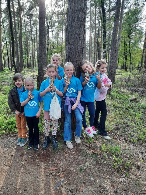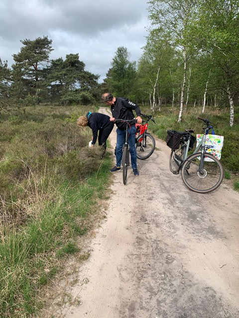 Met het ophalen van de pijlen nemen we ook het afval mee wat we onderweg tegenkomen. Complimenten voor jullie, want er lag bijna niets. Dank daarvoor. Dit is erg belangrijk want we moeten het Kroondomein te vriend houden om volgend jaar weer te kunnen en mogen wandelen.