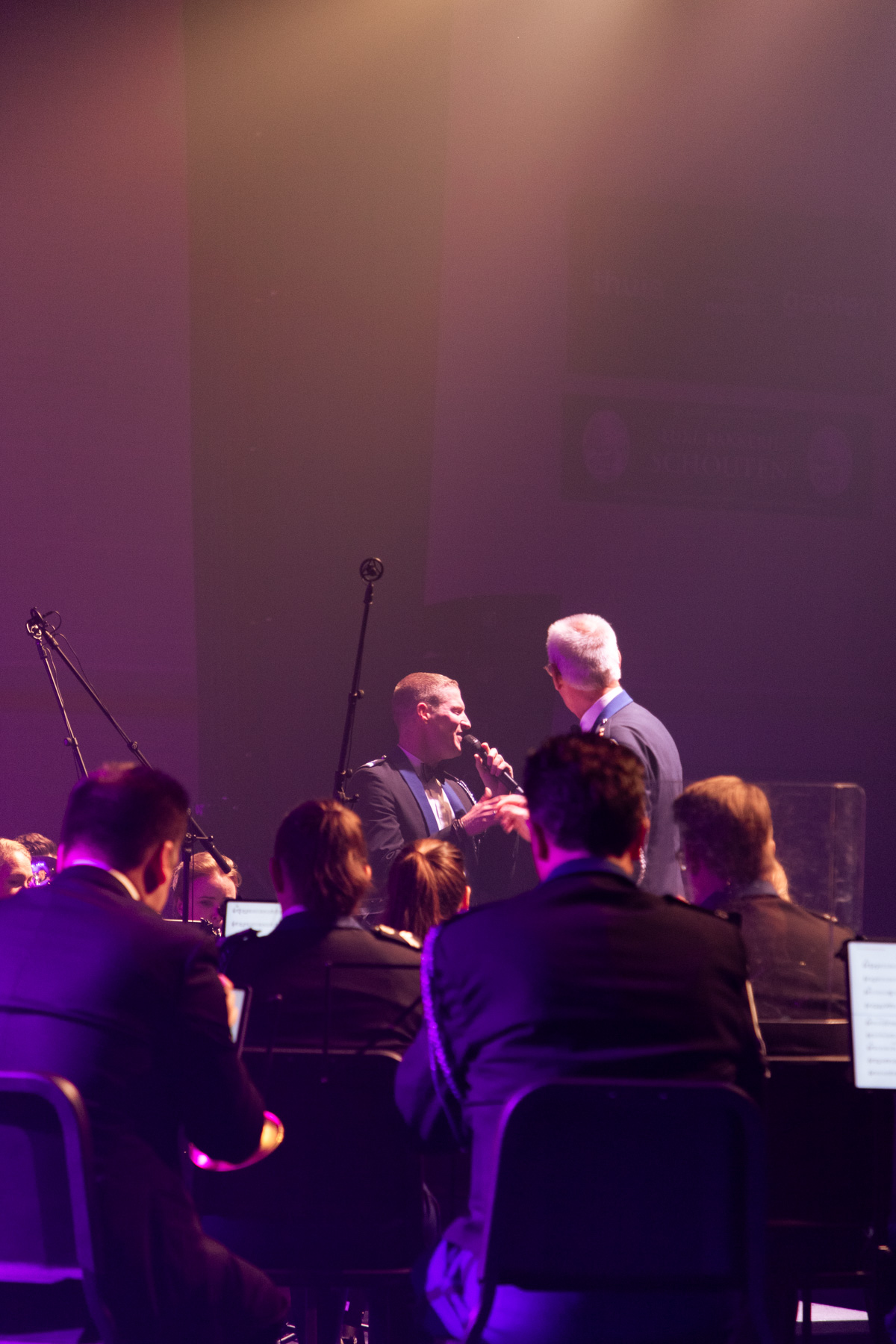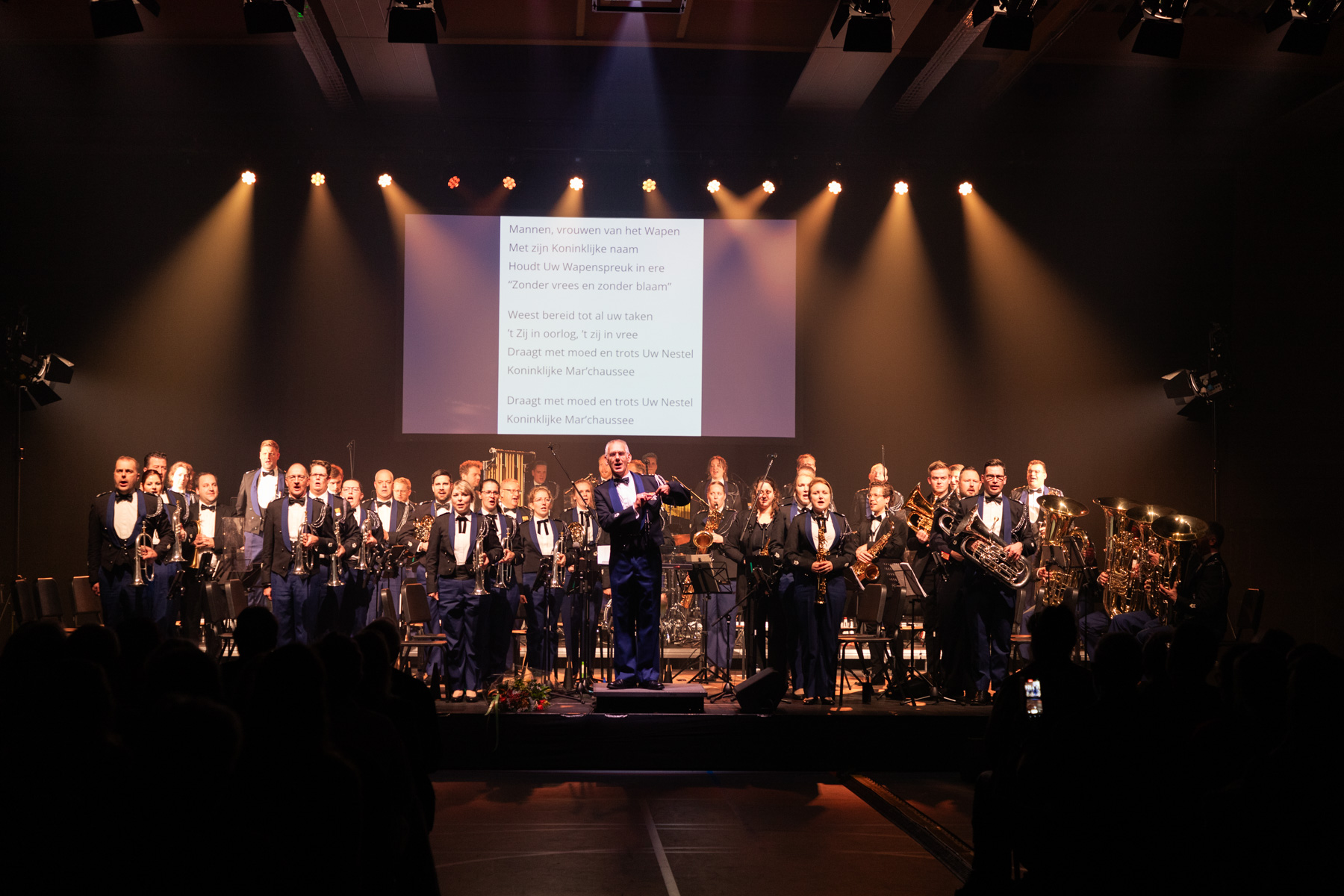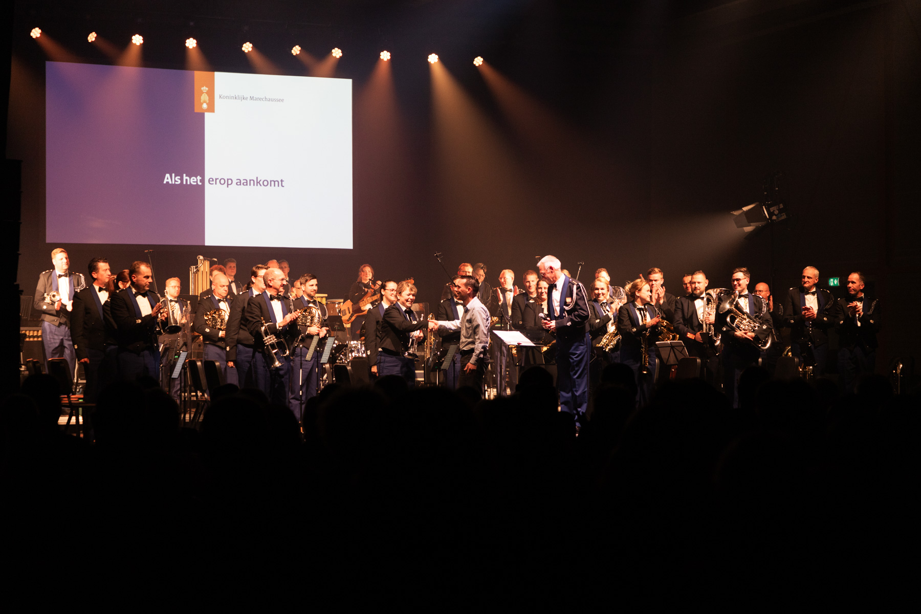Een bijzondere avond volgde. De gevulde zaal kon genieten van prachtige muziek. De avond opende met Festive Overture om Juliana te feliciteren met het jubileum. Er werd een waanzinnige solo gespeeld door Damyan Vermaas. Er waren een aantal muzikale premières zoals de uitvoering van The Ant Mill. Zanger Maik van de Groes zong, begeleid door Orkest Koninklijke Marechaussee, een aantal nummers. Het bijzondere stuk I’m no Prototype verraste onder anderen het publiek en Samba für Elise bracht iedereen in beweging. Het uiteenlopende programma heeft iedereen ongetwijfeld een onvergetelijke avond bezorgd.