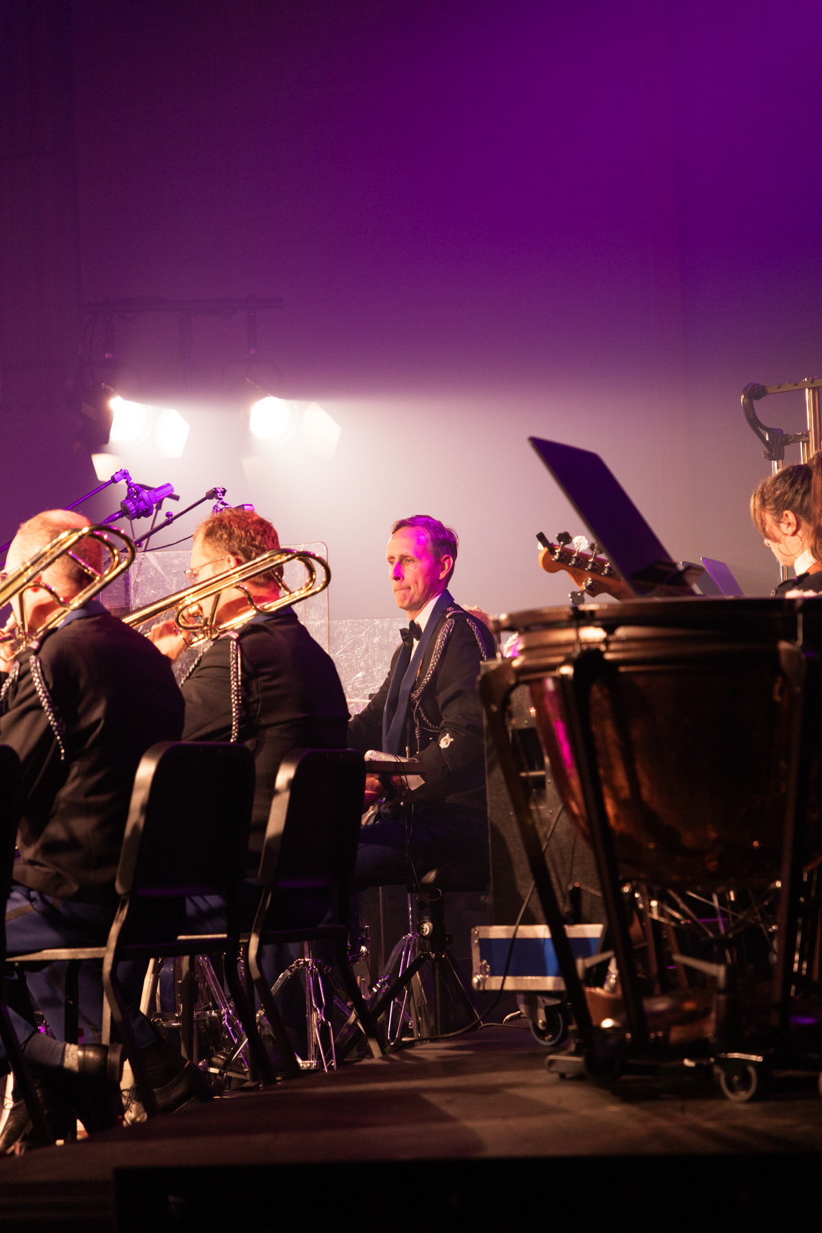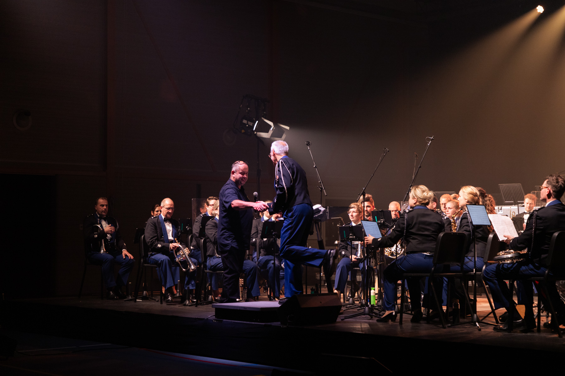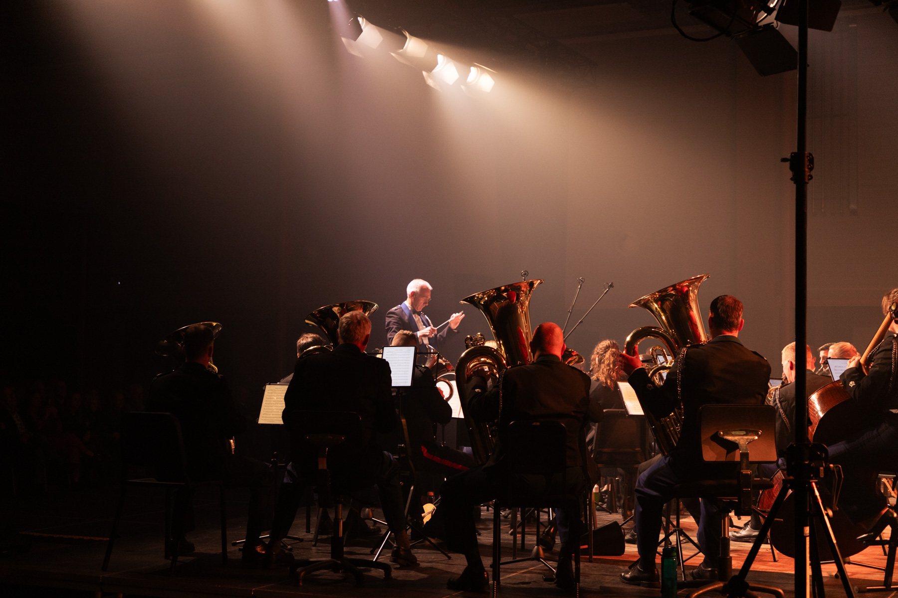 Een bijzondere avond volgde. De gevulde zaal kon genieten van prachtige muziek. De avond opende met Festive Overture om Juliana te feliciteren met het jubileum. Er werd een waanzinnige solo gespeeld door Damyan Vermaas. Er waren een aantal muzikale premières zoals de uitvoering van The Ant Mill. Zanger Maik van de Groes zong, begeleid door Orkest Koninklijke Marechaussee, een aantal nummers. Het bijzondere stuk I’m no Prototype verraste onder anderen het publiek en Samba für Elise bracht iedereen in beweging. Het uiteenlopende programma heeft iedereen ongetwijfeld een onvergetelijke avond bezorgd.
