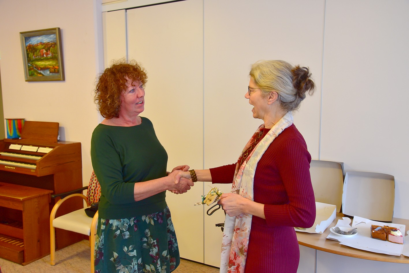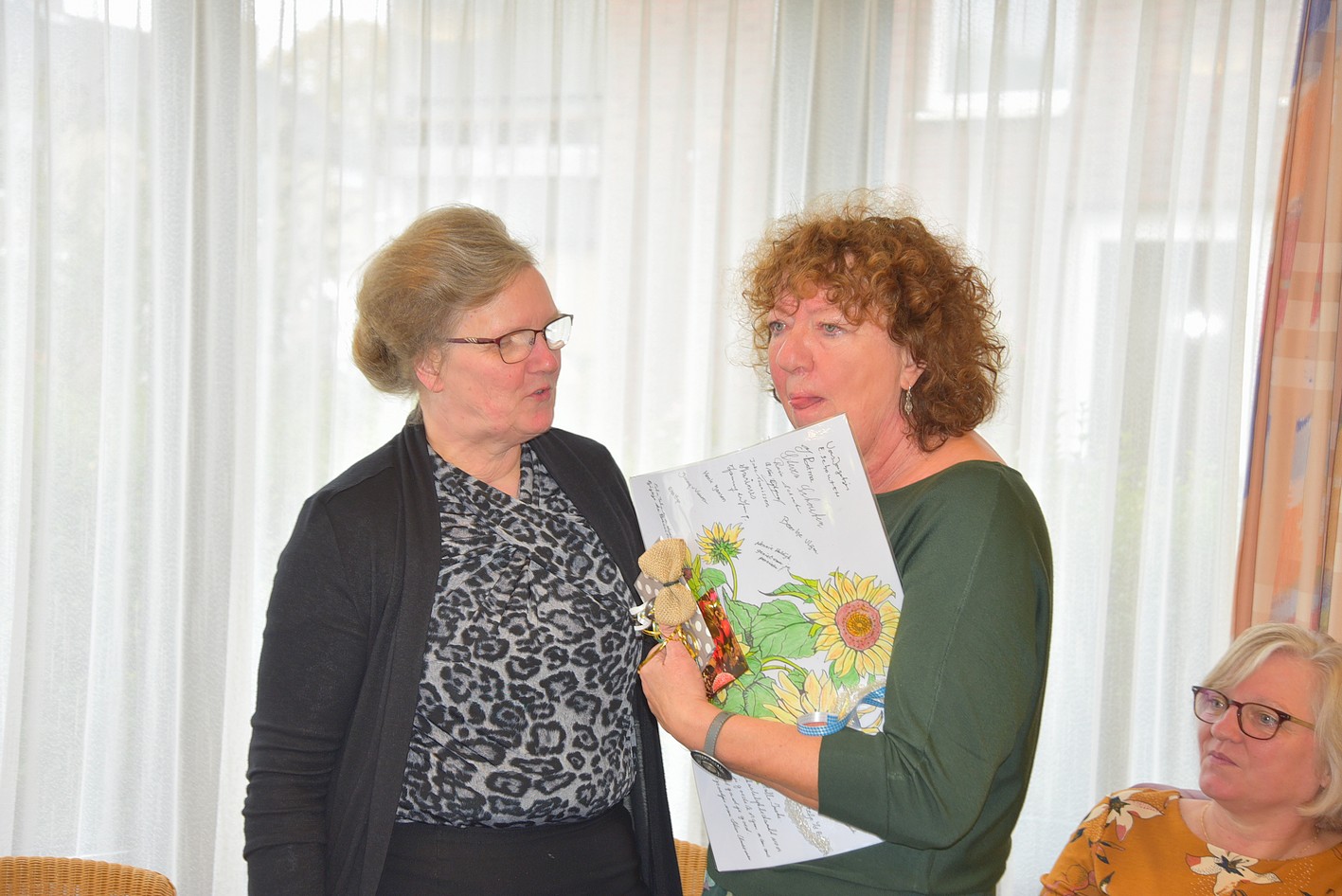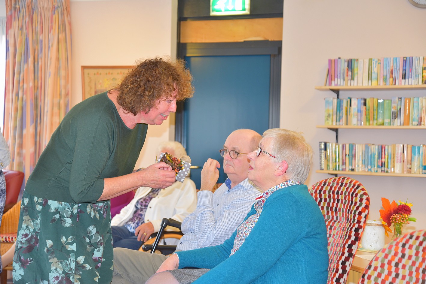 Ineke Bisschops wilde zelf het liefst niet al veel aandacht voor haar afscheid, maar daar ontkwam ze toch niet aan. Namens de Koningin Wilhelminahof en de Stichting Vrijwillige Hulpdienst Uddel werd zij door Gerrie Bronkhorst van de KWH toegesproken. Zij bedankte Ineke voor wat zij heeft mogen betekenen in Uddel voor diegenen die haar advies nodig hadden en de ondersteuning bij de vragen die er waren en zijn. Zij kreeg als blijk van waardering een cadeaubon overhandigd. Hierna ging Ineke Bisschops alle aanwezigen persoonlijk langs en had voor iedereen een hartelijk woord als afscheid. Namens Hart voor Ouderen overhandigde Petra Bleijenberg haar een prachtig boeket bloemen.